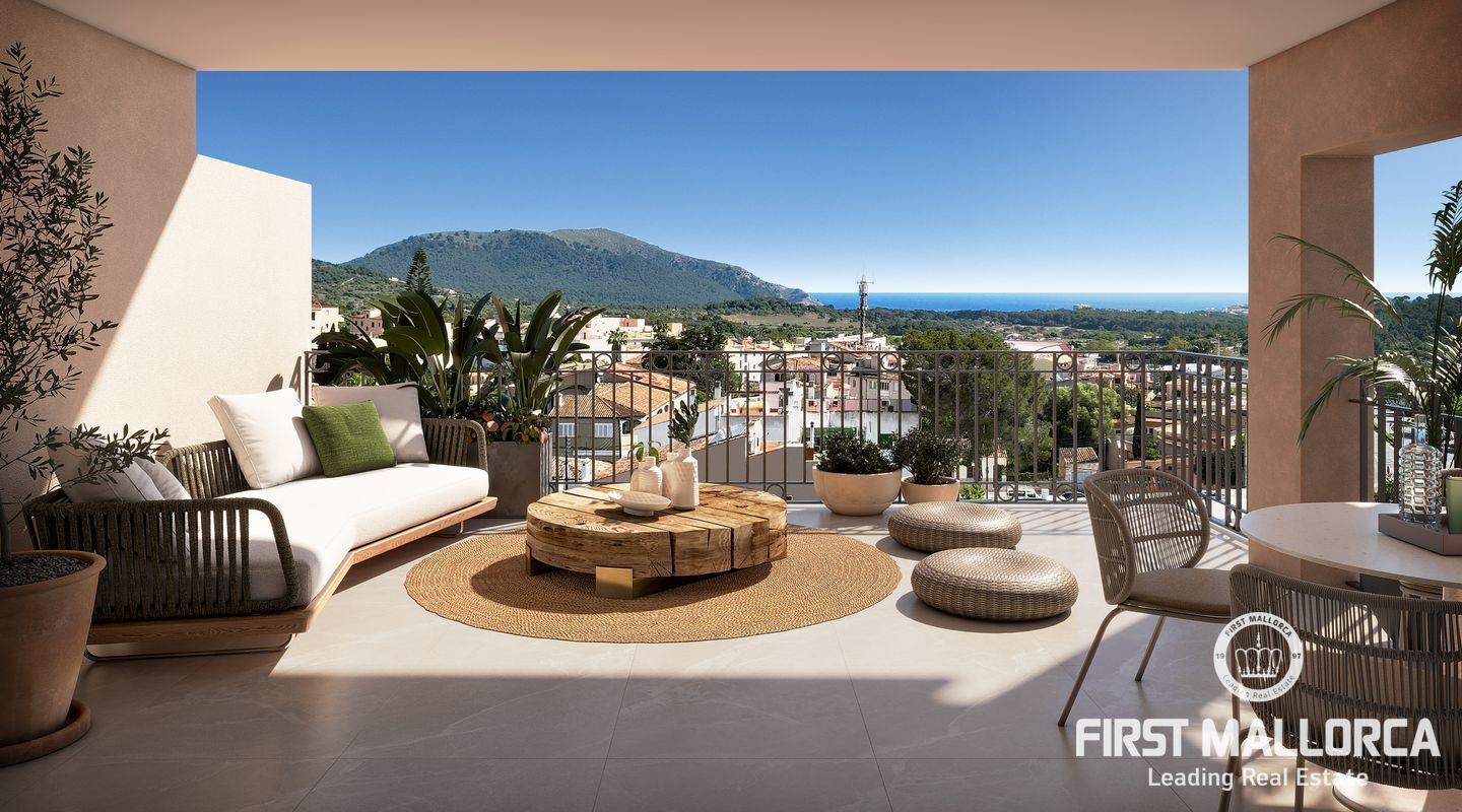 Modern und doch mallorquin gehalten werden am Stadtrand 23 Neubauwohnungen und neun Stadthäuser entstehen. Die Anlage wird über einen Gemeinschaftspool und einen Garten verfügen und bietet genug Parkplätze für alle.