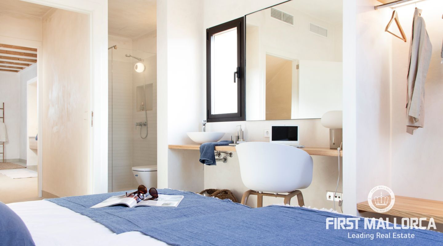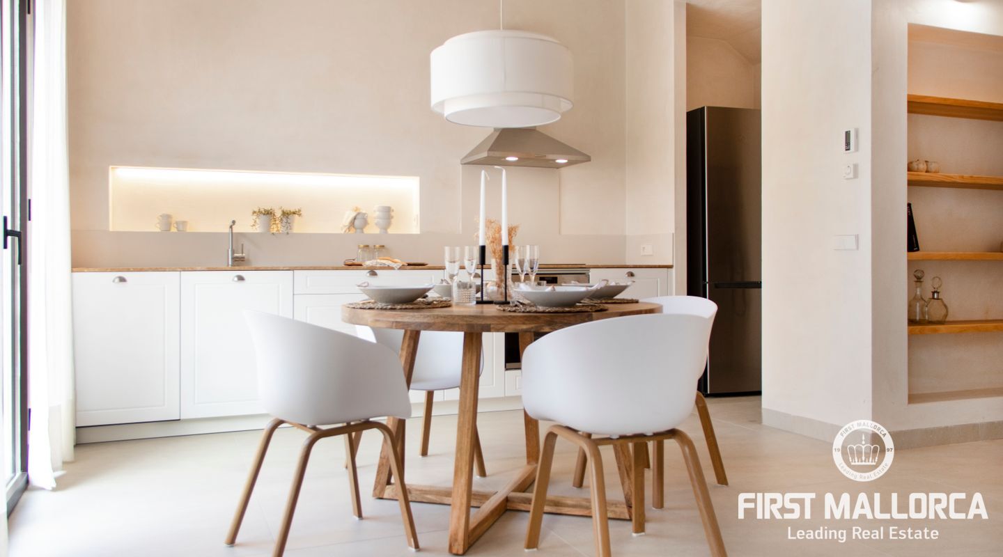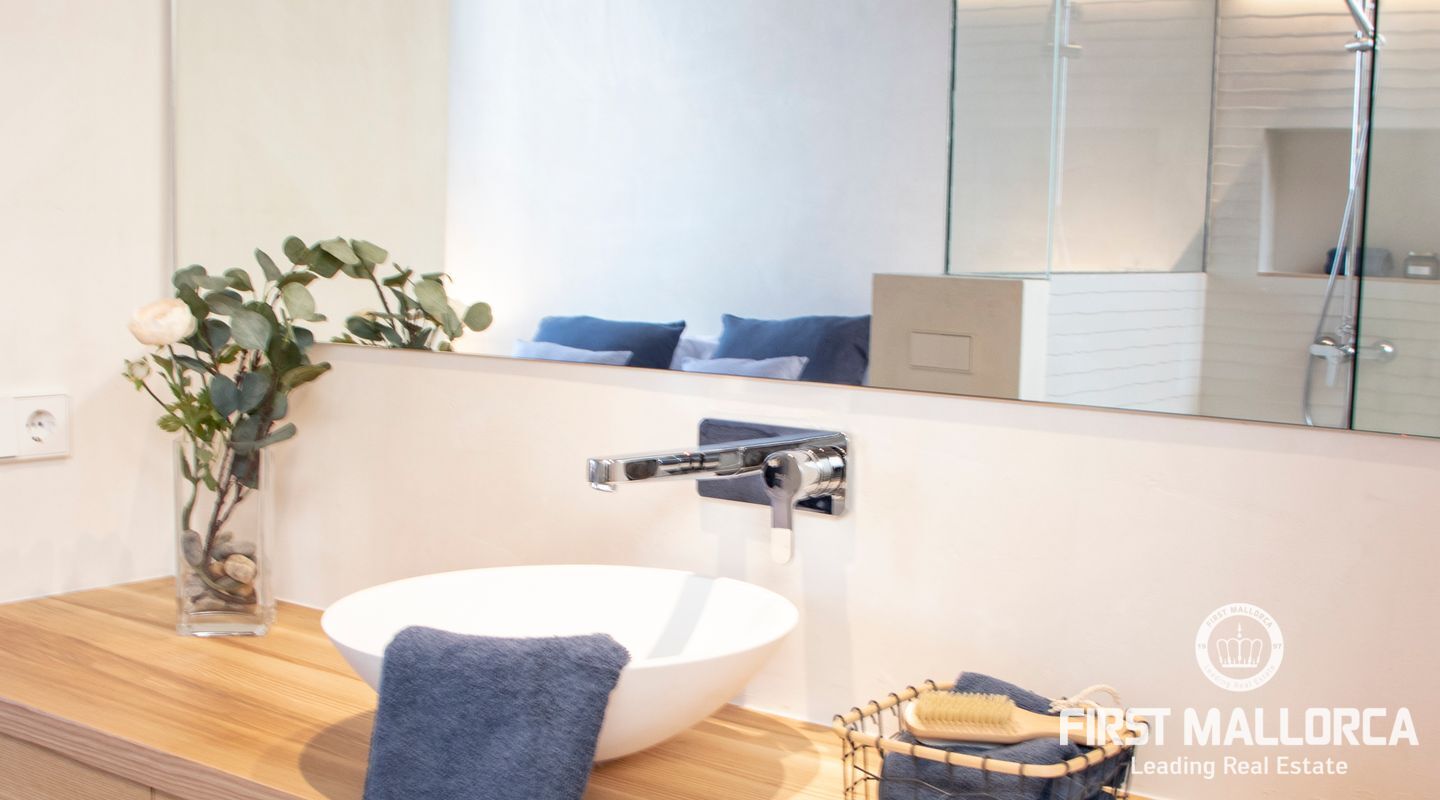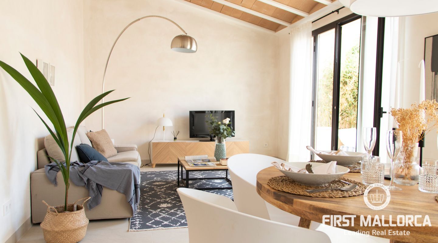 Dieses charmante Duplex befindet sich nur wenige Meter vom Zentrum des Dorfes Calonge entfernt, ganz in der Nähe der besten Strände und Buchten des ländlichen und charmanten Mallorcas und eines berühmten Golfclubs. 214 qm2 verteilt auf zwei Etagen und eine herrliche obere Terrasse, die fast die gesamte bebaute Fläche einnimmt, mit einem kleinen Jacuzzi und spektakulärem Blick auf die Berge und das Kloster von San Salvador sowie das Meer. Von der Garage aus haben Sie Zugang zu einem geräumigen Wohn-Esszimmer und einer voll ausgestatteten Küche, ein Innenhof, auf dem Sie die Sonnenstunden und die frische Luft unserer Insel genießen können. Offene und warme Räume auf der ganzen Etage, in denen wir uns wie zu Hause fühlen. Über eine Treppe gelangen wir in den Nacht-bereich mit zwei großen Schlafzimmern mit eigenem Bad, beide mit Fenstern und viel Licht. Von dieser Etage aus haben Sie Zugang zur oberen Terrasse, von der aus Sie eine herrliche Aussicht genießen können, und es gibt eine Vorinstallation für Wasser und Strom für eine Außenküche. Monoblock-Luft-Wasser-Wärmepumpensystem für Fußbodenheizung, Konvektorgebläse für Kühlung und Warmwasser, pulver beschichtete Aluminiumfenster mit Dreifachverglasung, Einbauküche mit Cañamel-Steinarbeitsplatte, Balay-Geräte, ein Garagen platz und ein Abstellraum im Erdgeschoss sind einige der Qualitäten und Eigenschaften dieses charmanten Duplex.