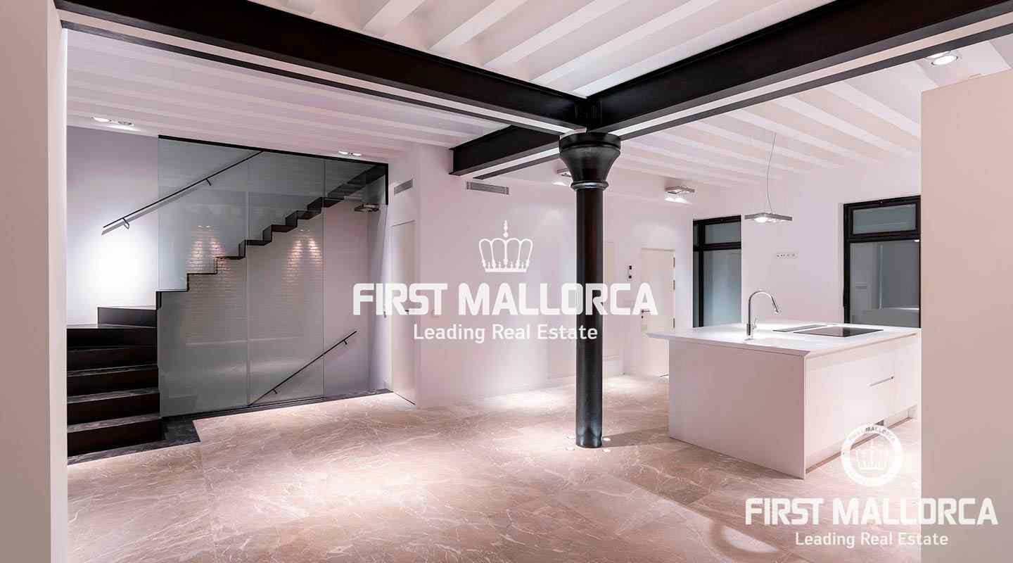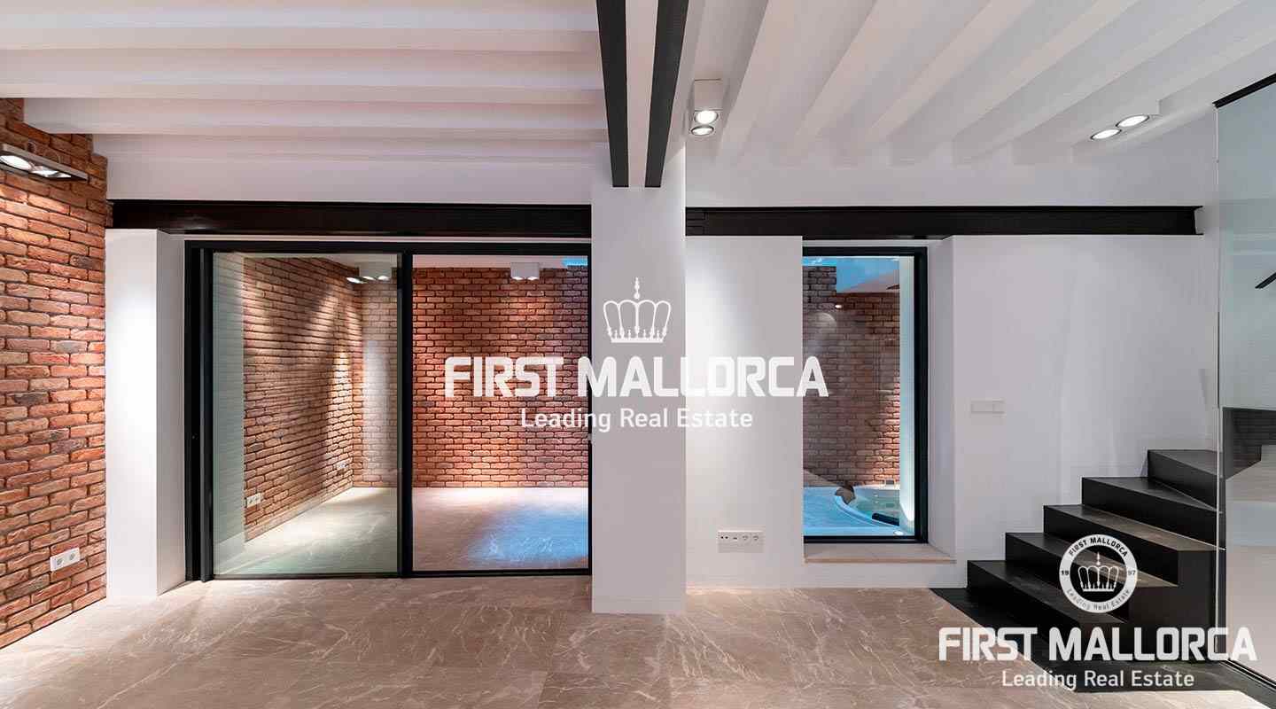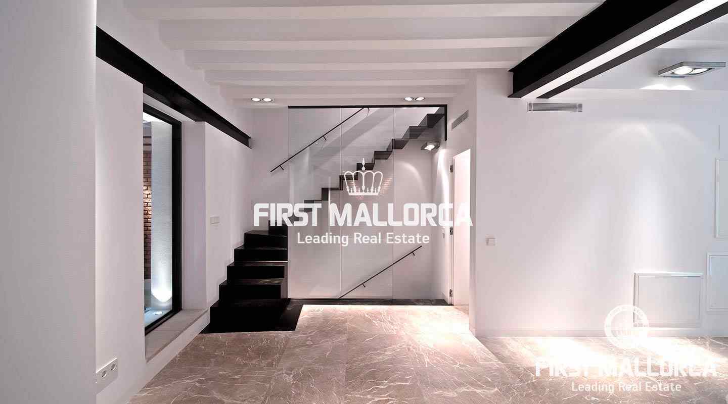 Dieses elegante Duplex-Apartment in der Altstadt von Palma besticht durch ein modernes, offenes Wohnkonzept sowie eine ideale Raumaufteilung und befindet sich auf der Erdgeschossebene in einem kernsanierten Stadthaus in der Nähe der Plaza Mayor. Die Immobilie verfügt über 2 Schlafzimmer sowie 2 Badezimmer en Suite mit hochwertigen Duravit-Armaturen im ersten Stock sowie eine Porcelanosa-Küche mit Miele-Geräten im Erdgeschoss, die sich zum großzügigen Wohnzimmer hin öffnet. Eine große Fensterfront lässt viel Tageslicht in die Wohnung, welches durch den privaten Patio eintritt.