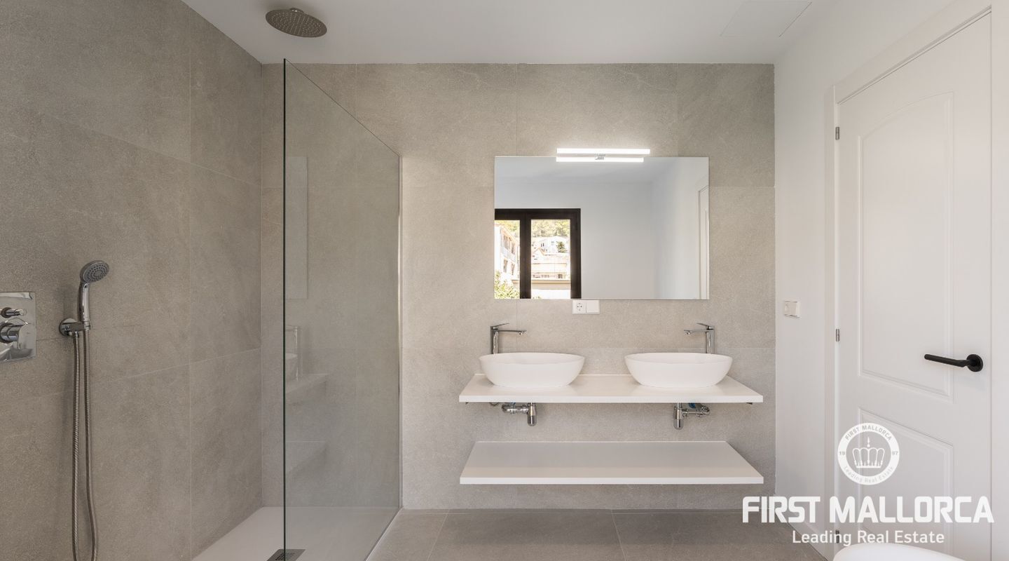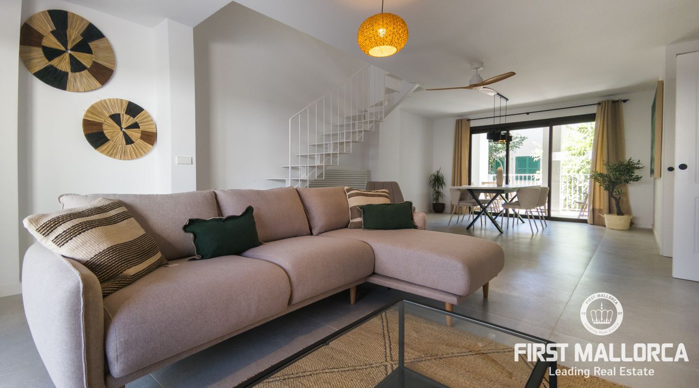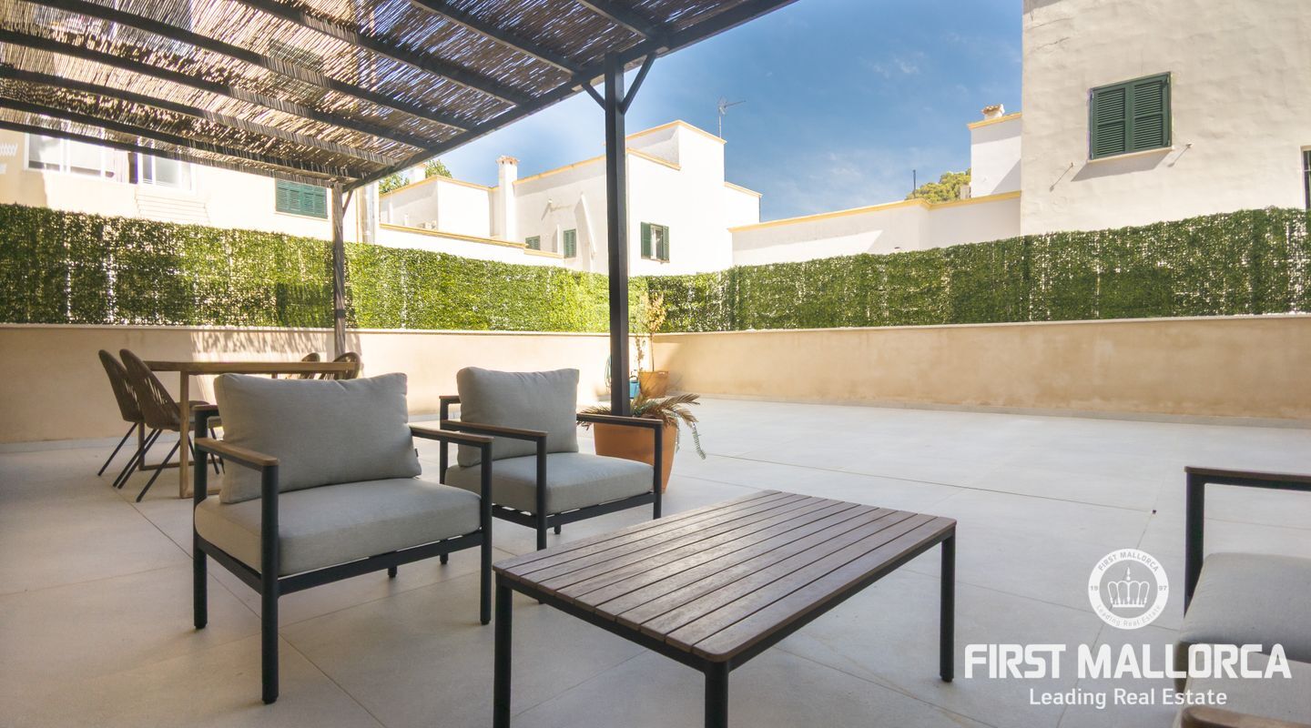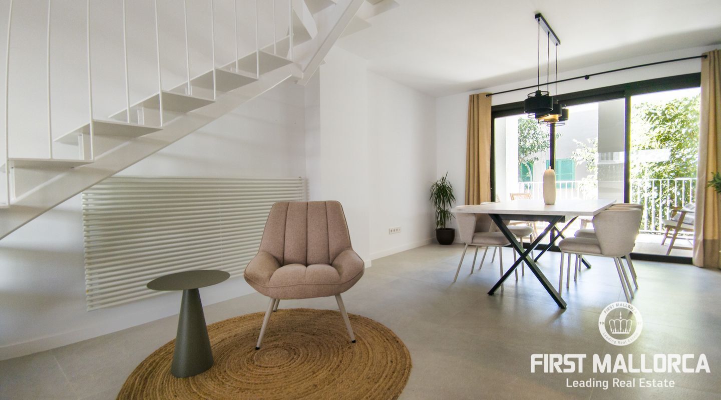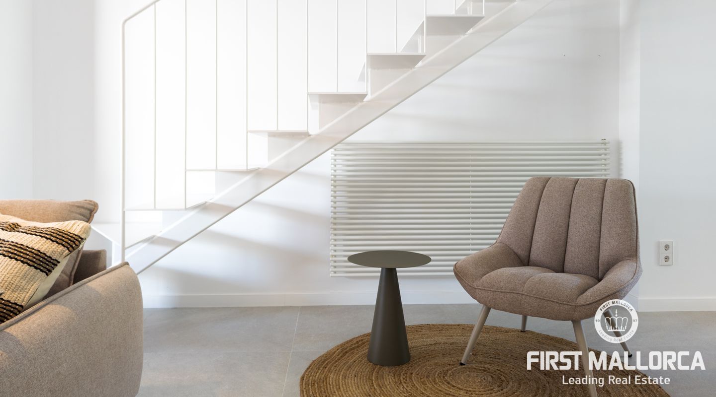 Das Duplex verfügt über drei geräumige und helle Schlafzimmer, eine Designerküche, die von dem renommierten Studio Abitarum aus Palma mit Siemens-Geräten, Bora-Induktionskochfeld mit zentraler Absaugung, Hans Grohe-Armaturen und einer großen zentralen Insel ausgestattet wurde. Es verfügt über eine aerothermische Klimaanlage, eine Klimaanlage mit Wärmepumpe und eine Heizung mit Design-Heizkörpern mit individueller Raumsteuerung. Der Innenausbau ist von hoher Qualität, mit massiven weiß lackierten Türen, innenliegenden Einbauschränken und einem offenen Ankleidezimmer. Das Masterbad bietet ein modernes Design mit Doppelwaschbecken, freistehender Badewanne und großer Duschwanne, sowie eingebauten sparsamen Armaturen und Duravit-Sanitärkeramik. Die Böden bestehen aus großformatigen Porzellanfliesen, die im Außenbereich rutschfest sind, und die Wohnung verfügt über abgehängte Decken, glatte Anstriche und hochwertige Oberflächen.