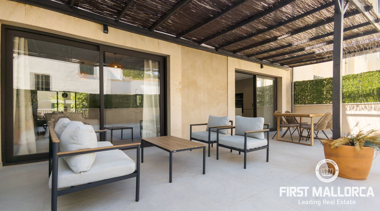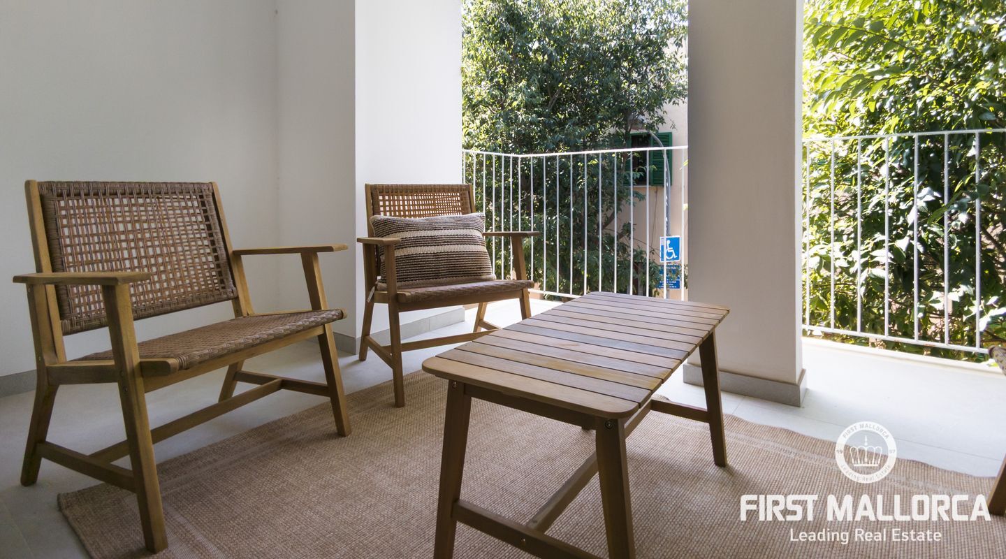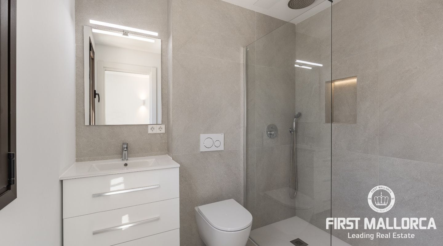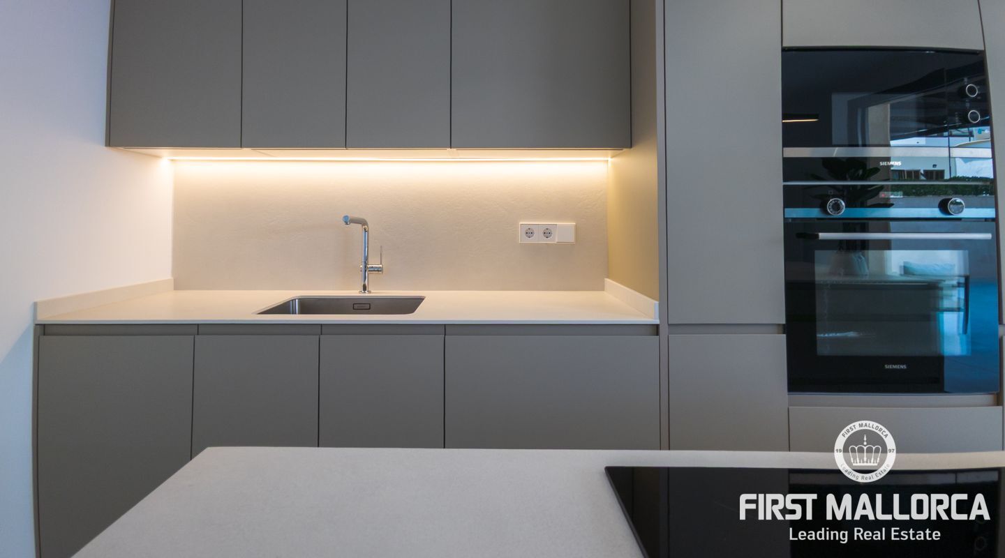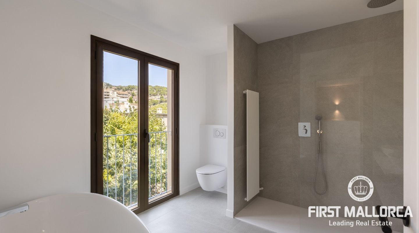 Das Duplex verfügt über drei geräumige und helle Schlafzimmer, eine Designerküche, die von dem renommierten Studio Abitarum aus Palma mit Siemens-Geräten, Bora-Induktionskochfeld mit zentraler Absaugung, Hans Grohe-Armaturen und einer großen zentralen Insel ausgestattet wurde. Es verfügt über eine aerothermische Klimaanlage, eine Klimaanlage mit Wärmepumpe und eine Heizung mit Design-Heizkörpern mit individueller Raumsteuerung. Der Innenausbau ist von hoher Qualität, mit massiven weiß lackierten Türen, innenliegenden Einbauschränken und einem offenen Ankleidezimmer. Das Masterbad bietet ein modernes Design mit Doppelwaschbecken, freistehender Badewanne und großer Duschwanne, sowie eingebauten sparsamen Armaturen und Duravit-Sanitärkeramik. Die Böden bestehen aus großformatigen Porzellanfliesen, die im Außenbereich rutschfest sind, und die Wohnung verfügt über abgehängte Decken, glatte Anstriche und hochwertige Oberflächen.