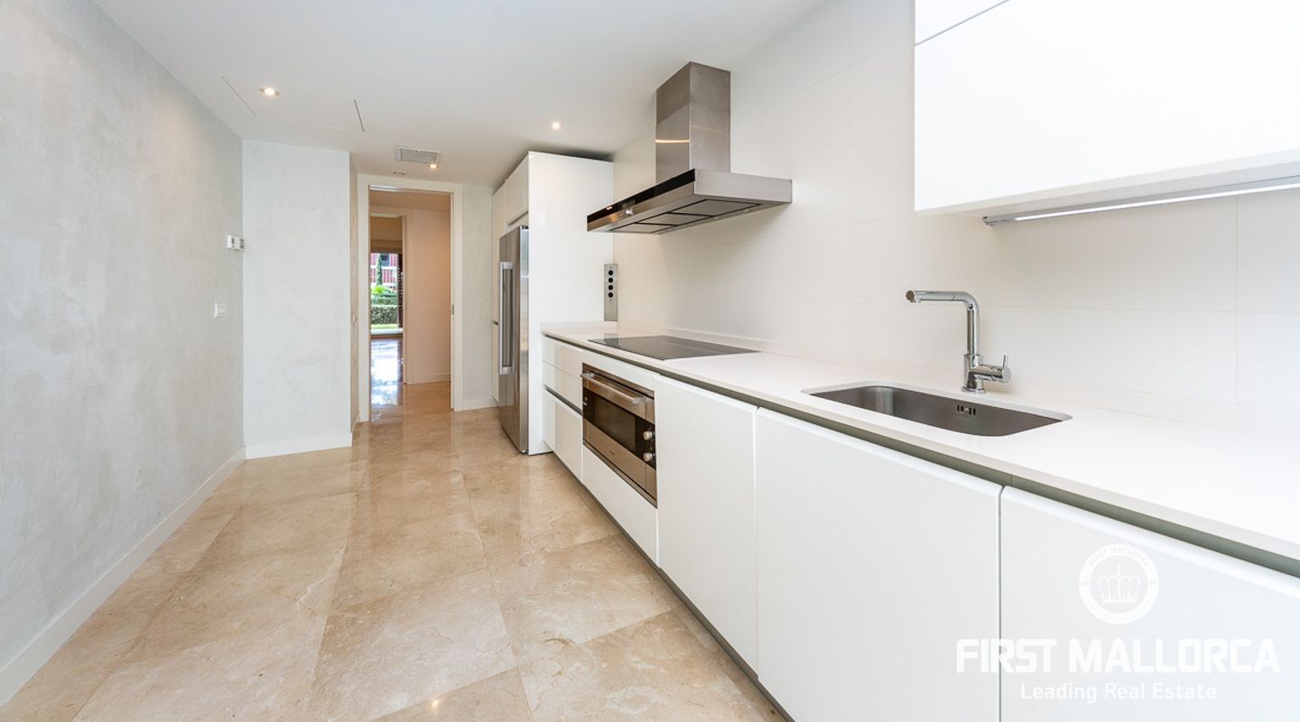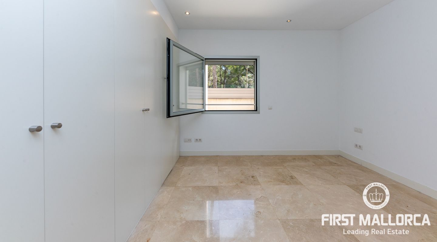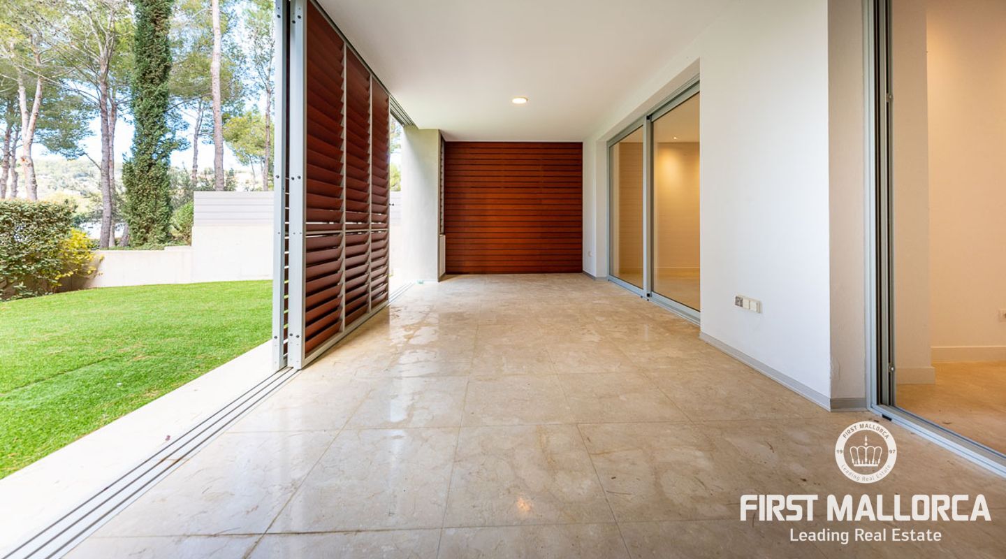 Diese schöne, bezugsfertige Gartenwohnung bietet einen offenen Wohn- und Essbereich mit direktem Zugang zum nach Südwesten ausgerichteten Außenbereich. Die geräumige überdachte Terrasse lädt zum Essen im Freien ein und der private Garten gibt Ihnen Zugang zum Gemeinschaftspool. Es gibt 2 große Schlafzimmer mit zwei voll ausgestatteten Badezimmern, eines davon ensuite, sowie ein Gäste-WC. Die voll ausgestattete moderne Küche verfügt über eine angrenzende Waschküche und eine zweite Terrasse, die zur Rückseite des Grundstücks ausgerichtet ist. Die moderne Wohnanlage "Es Pinar" befindet sich in idealer Lage, nur wenige Gehminuten von Einkaufsmöglichkeiten, schönen Stränden, internationalen Schulen, Restaurants und Cafés sowie dem Dorf Portals Nous entfernt. Setzen Sie sich noch heute mit uns in Verbindung, um Ihren persönlichen Besichtigungstermin zu vereinbaren.