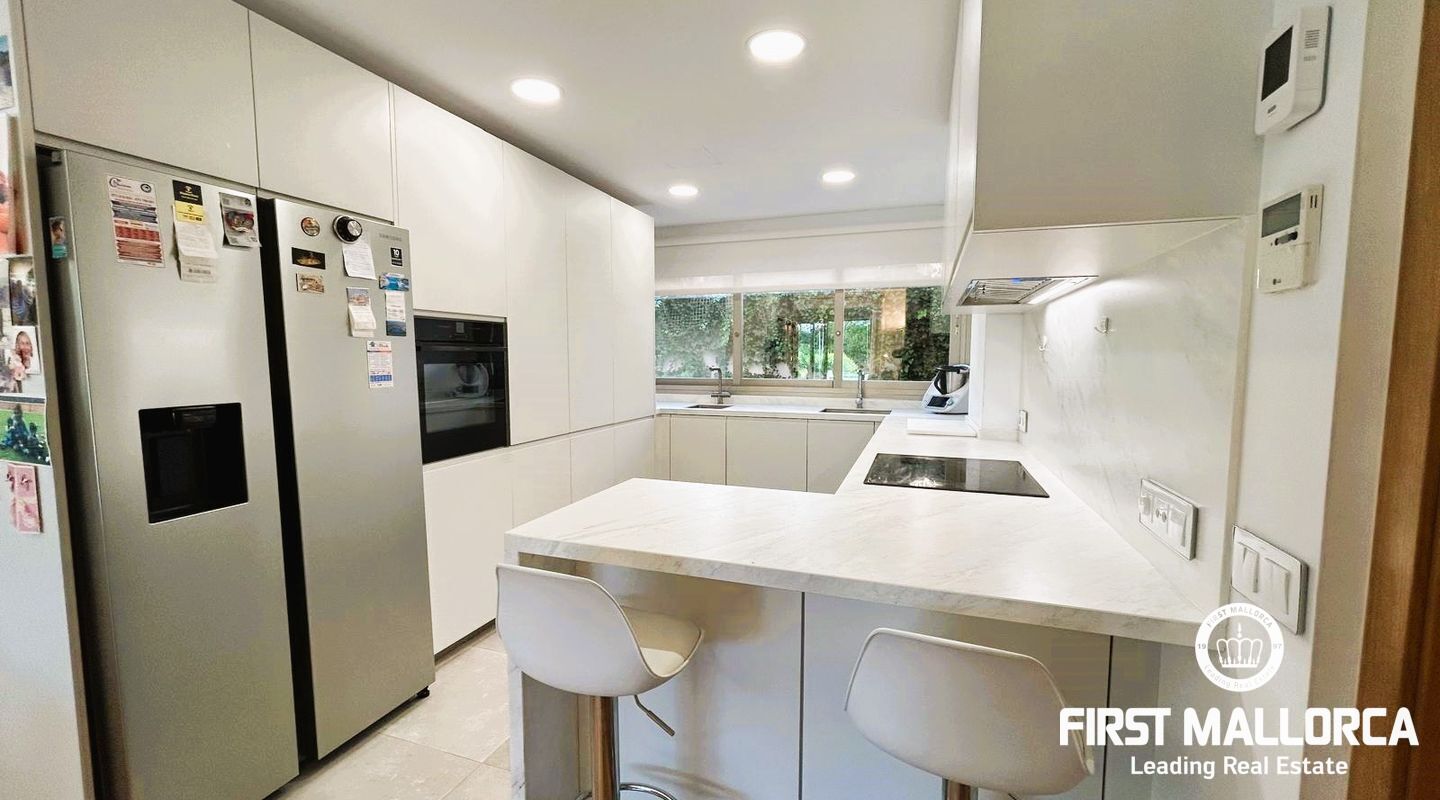 Kleine Gemeinschaft von Eigentümern von nur 5 Nachbarn, in der gesuchten Wohngegend von hohem Ansehen von La Bonanova, vor kurzem gebaut. Von der Eingangshalle haben wir Zugang zu dem geräumigen Wohn-Esszimmer mit offenem Konzept Küche völlig modern, in weiß und hochwertigem Marmor. Von der verglasten Veranda haben wir Zugang zu dem schönen und gepflegten Garten mit automatischer Bewässerung und Beleuchtung. Das Anwesen besteht aus 3 Schlafzimmern, Einbauschränken, 2 Bädern (1 en suite), Parkett- und Porzellanböden, Klimaanlage warm/kalt. Alle Zimmer blicken auf den Garten, der das Haus mit sehr guter Privatsphäre umgibt. Im Preis inbegriffen sind ein Parkplatz und ein Abstellraum. Für weitere Informationen wenden Sie sich bitte an First Mallorca sales agents.