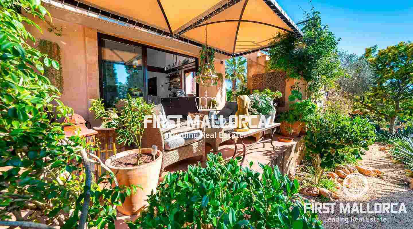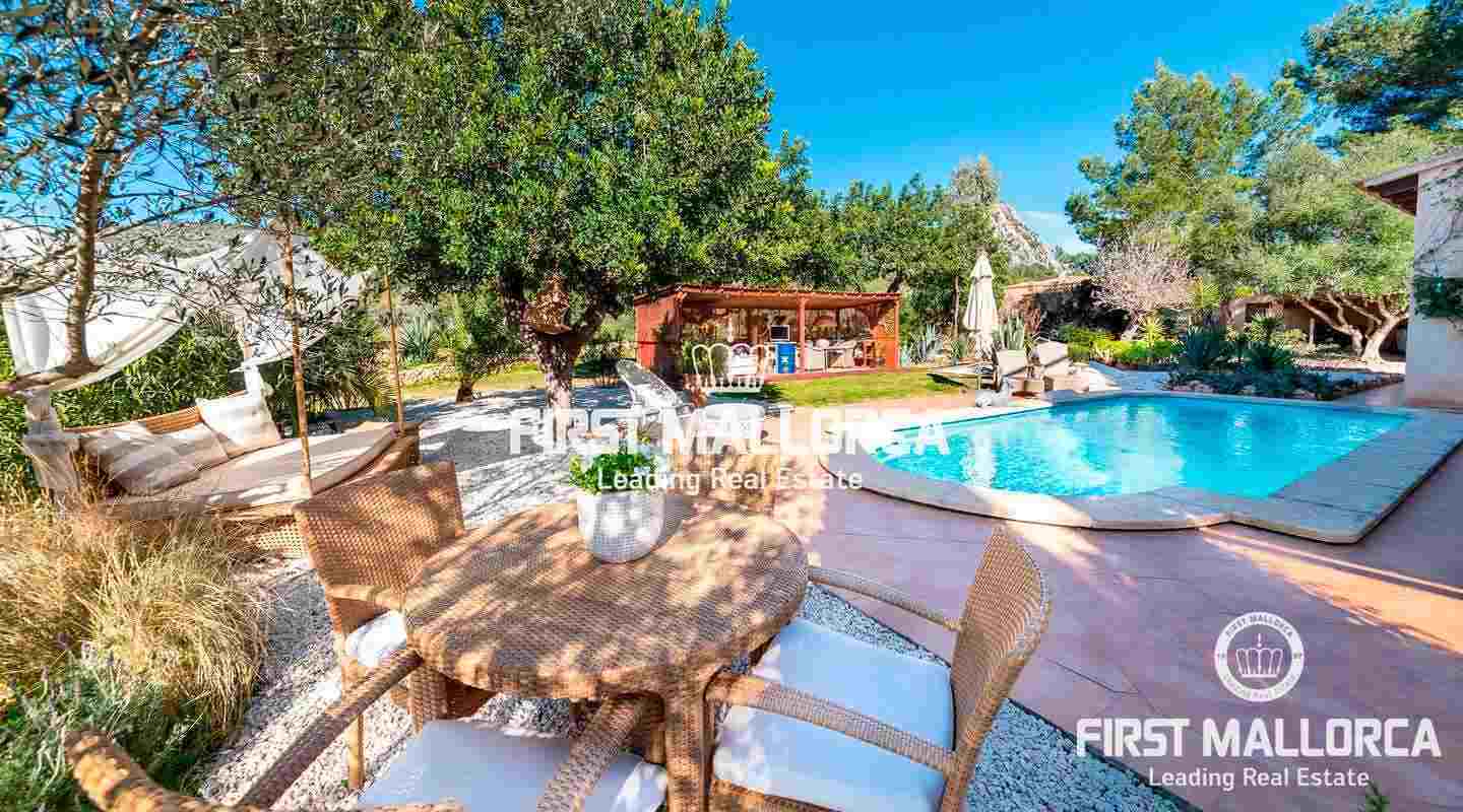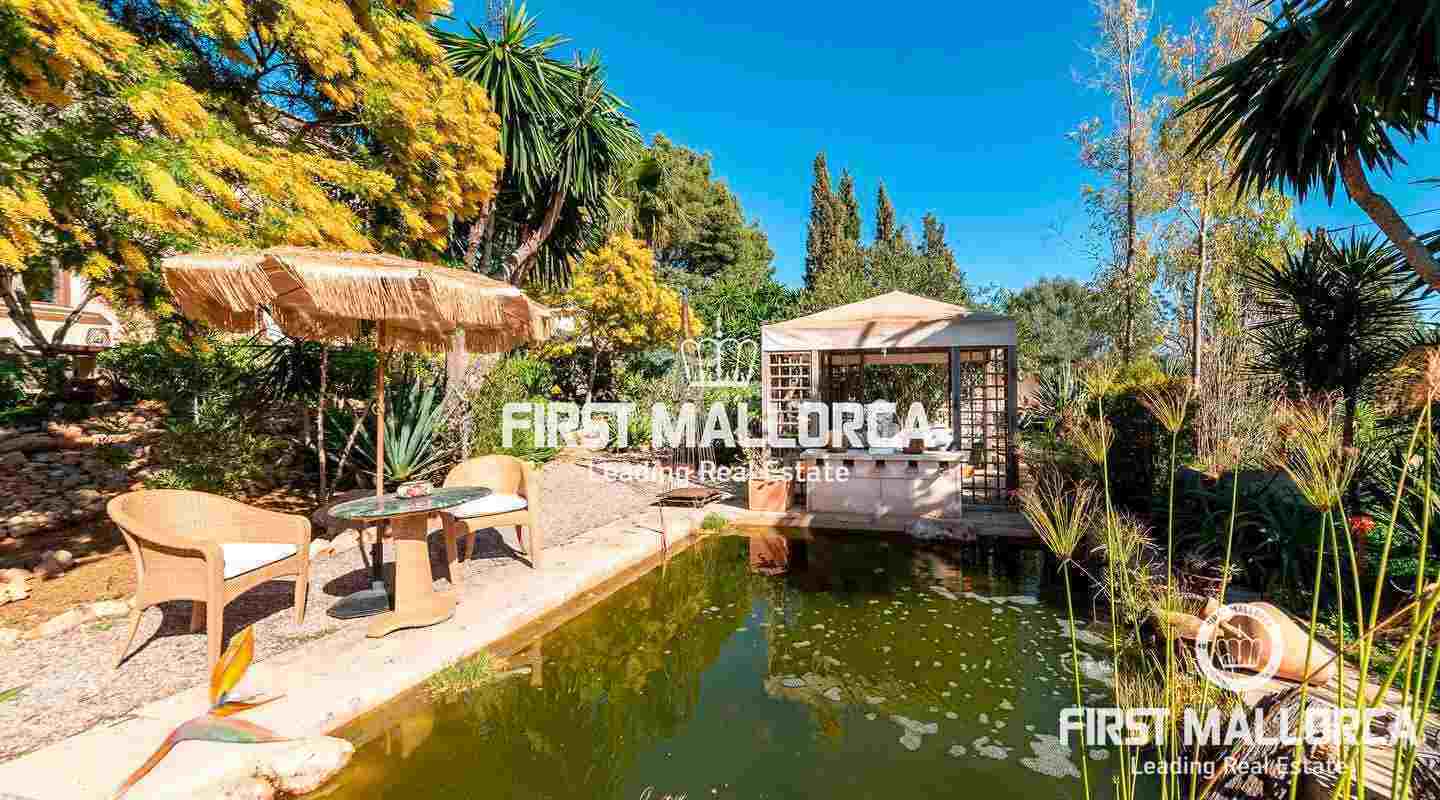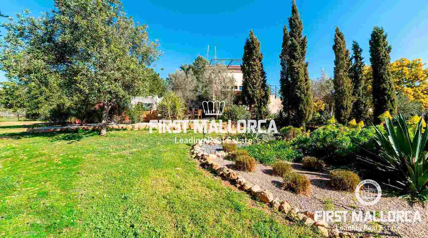 Diese traumhafte Finca liegt am Fuße der Serra de Galdent und des Puig Ses Bruixes in Llucmajor, auf einem Grundstück von 10.208m² und nur wenige Kilometer von Llucmajor mit all seinen Restaurants, Geschäften und anderen Dienstleistungen entfernt. Im Jahr 2017 schaffte es der jetzige Eigentümer diese Finca in einen magischen Ort zu verwandeln, der seinesgleichen sucht. Er stattete die Finca mit verschiedenen Terrassen, Chillout-Bereichen, einem Swimmingpool, einem Teich mit verschiedenen Fischarten und einem natürlichen Lichtspiel im Inneren der Finca aus, das jeden Besucher überrascht. Die beeindruckende Küche von Birgit Müller, das Herzstück der Finca, schafft zusammen mit den riesigen, bodentiefen Fenstern eine perfekte Symbiose zwischen innen und außen, alles umgeben von perfekter Stille und Ruhe. Die grünen und alten Gärten haben es geschafft, eine ganz besondere Atmosphäre mit verschiedenen Bereichen zu schaffen, in denen Sie sitzen und die Sonne, den Schatten oder einfach ein Buch lesen können. Ein exklusiver Grillplatz mit einfachem Zugang zur Küche, ein eigener Gemüsegarten und der ganze Charme, der in dieser Finca zu spüren ist, machen sie zum idealen Ort, um jede Minute des Tages mit Freunden, Familie und Tieren zu genießen.Mandelbäume, Johannisbrotbäume, Olivenbäume und Natur pur!