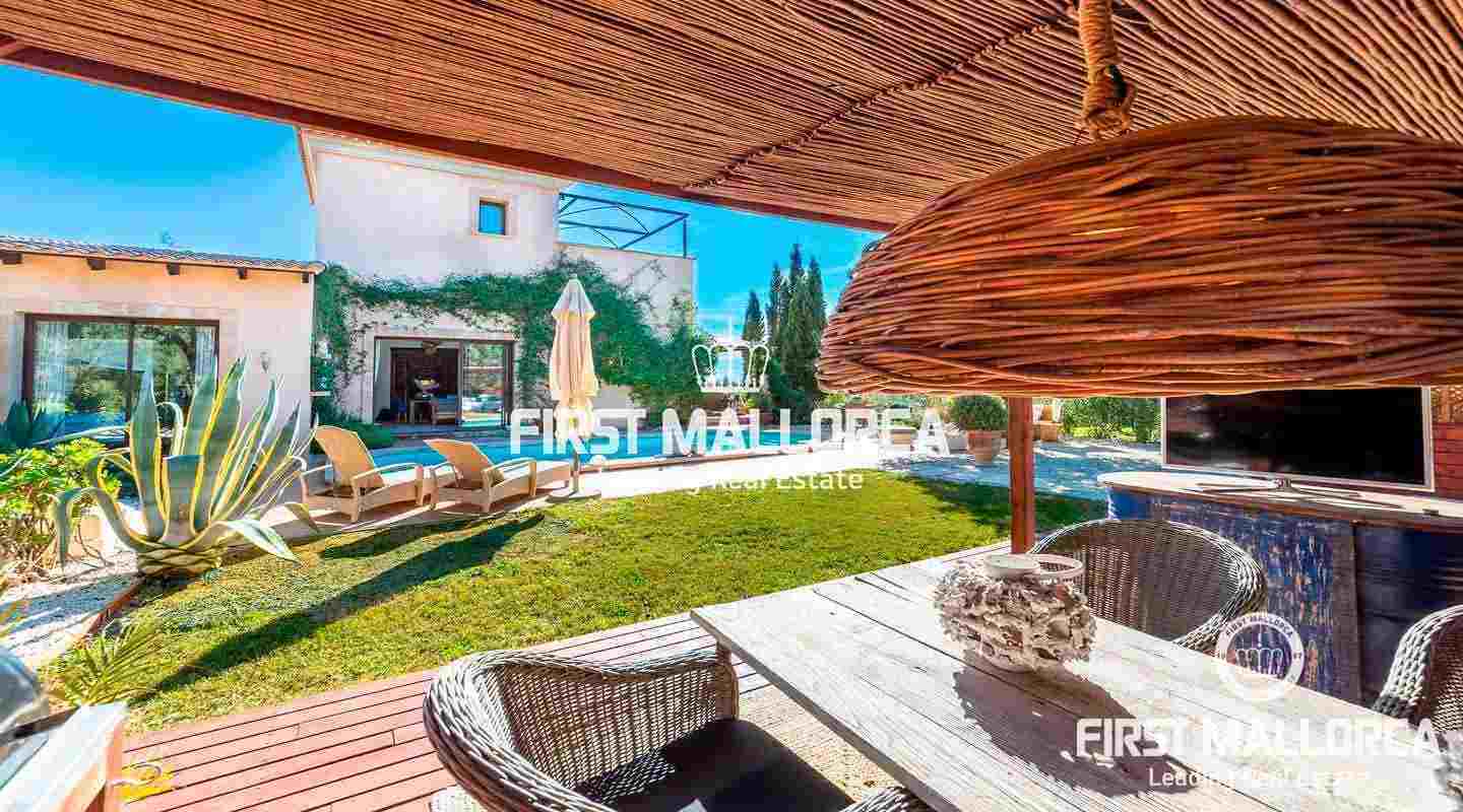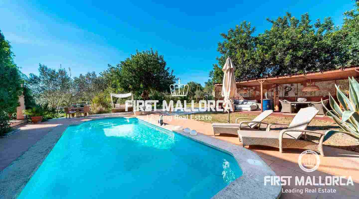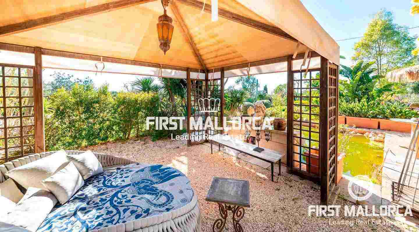 Diese traumhafte Finca liegt am Fuße der Serra de Galdent und des Puig Ses Bruixes in Llucmajor, auf einem Grundstück von 10.208m² und nur wenige Kilometer von Llucmajor mit all seinen Restaurants, Geschäften und anderen Dienstleistungen entfernt. Im Jahr 2017 schaffte es der jetzige Eigentümer diese Finca in einen magischen Ort zu verwandeln, der seinesgleichen sucht. Er stattete die Finca mit verschiedenen Terrassen, Chillout-Bereichen, einem Swimmingpool, einem Teich mit verschiedenen Fischarten und einem natürlichen Lichtspiel im Inneren der Finca aus, das jeden Besucher überrascht. Die beeindruckende Küche von Birgit Müller, das Herzstück der Finca, schafft zusammen mit den riesigen, bodentiefen Fenstern eine perfekte Symbiose zwischen innen und außen, alles umgeben von perfekter Stille und Ruhe. Die grünen und alten Gärten haben es geschafft, eine ganz besondere Atmosphäre mit verschiedenen Bereichen zu schaffen, in denen Sie sitzen und die Sonne, den Schatten oder einfach ein Buch lesen können. Ein exklusiver Grillplatz mit einfachem Zugang zur Küche, ein eigener Gemüsegarten und der ganze Charme, der in dieser Finca zu spüren ist, machen sie zum idealen Ort, um jede Minute des Tages mit Freunden, Familie und Tieren zu genießen.Mandelbäume, Johannisbrotbäume, Olivenbäume und Natur pur!
