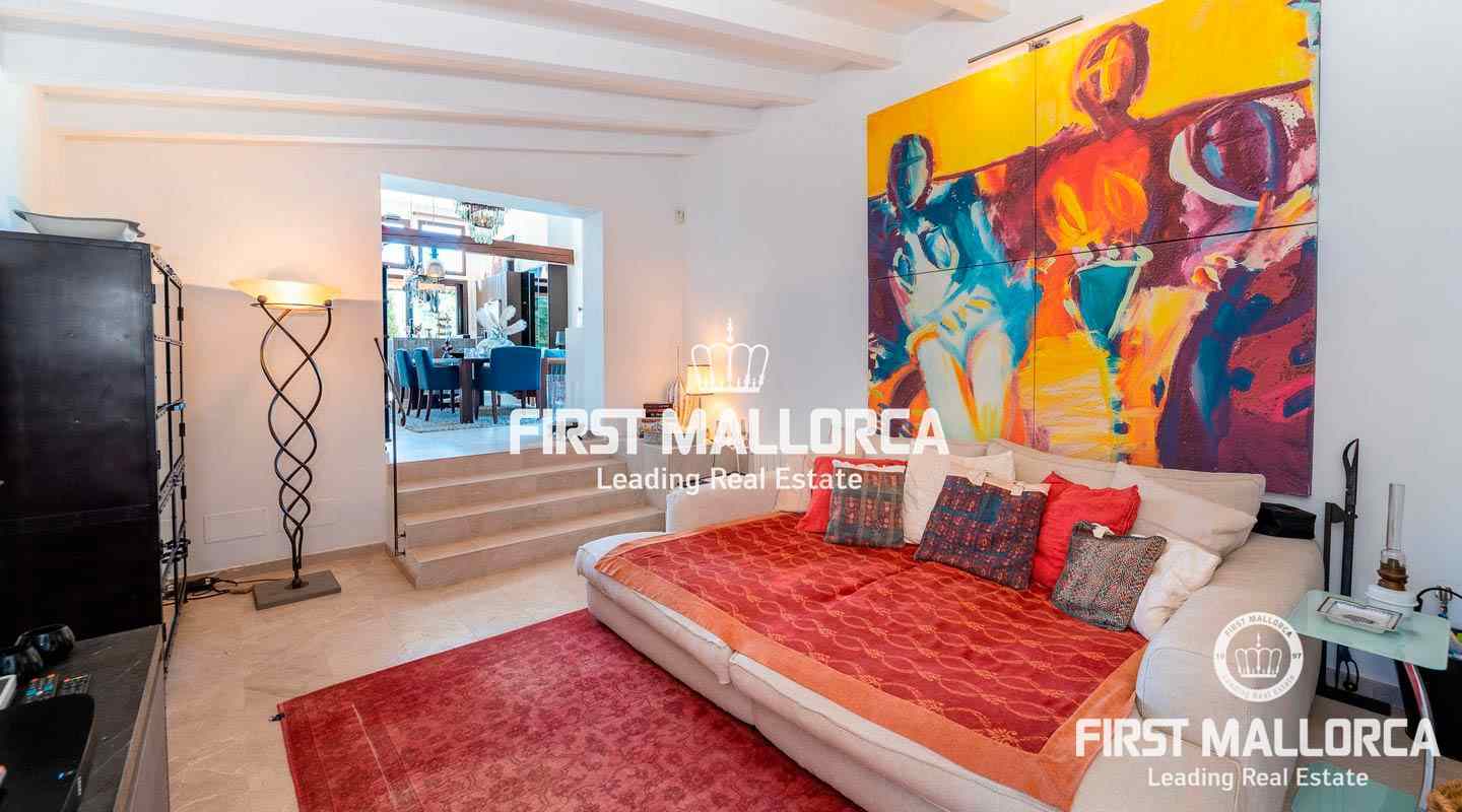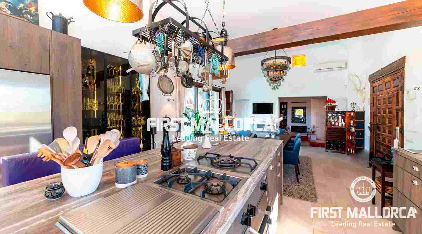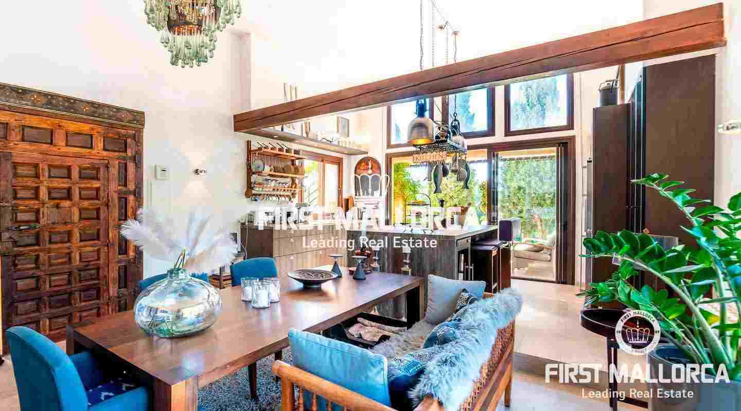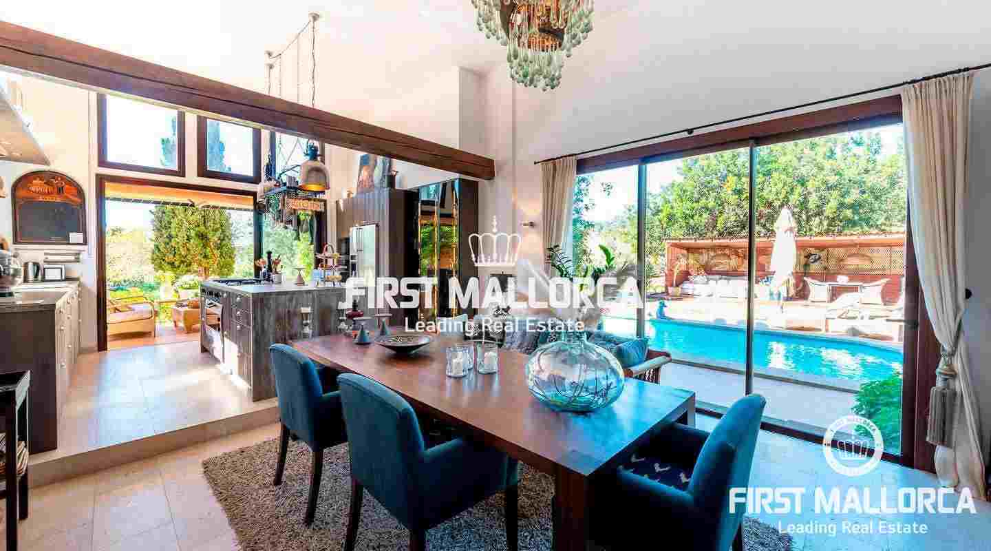 Diese traumhafte Finca liegt am Fuße der Serra de Galdent und des Puig Ses Bruixes in Llucmajor, auf einem Grundstück von 10.208m² und nur wenige Kilometer von Llucmajor mit all seinen Restaurants, Geschäften und anderen Dienstleistungen entfernt. Im Jahr 2017 schaffte es der jetzige Eigentümer diese Finca in einen magischen Ort zu verwandeln, der seinesgleichen sucht. Er stattete die Finca mit verschiedenen Terrassen, Chillout-Bereichen, einem Swimmingpool, einem Teich mit verschiedenen Fischarten und einem natürlichen Lichtspiel im Inneren der Finca aus, das jeden Besucher überrascht. Die beeindruckende Küche von Birgit Müller, das Herzstück der Finca, schafft zusammen mit den riesigen, bodentiefen Fenstern eine perfekte Symbiose zwischen innen und außen, alles umgeben von perfekter Stille und Ruhe. Die grünen und alten Gärten haben es geschafft, eine ganz besondere Atmosphäre mit verschiedenen Bereichen zu schaffen, in denen Sie sitzen und die Sonne, den Schatten oder einfach ein Buch lesen können. Ein exklusiver Grillplatz mit einfachem Zugang zur Küche, ein eigener Gemüsegarten und der ganze Charme, der in dieser Finca zu spüren ist, machen sie zum idealen Ort, um jede Minute des Tages mit Freunden, Familie und Tieren zu genießen.Mandelbäume, Johannisbrotbäume, Olivenbäume und Natur pur!