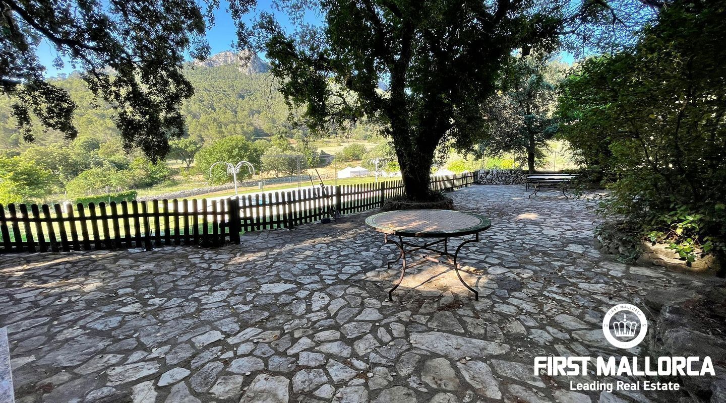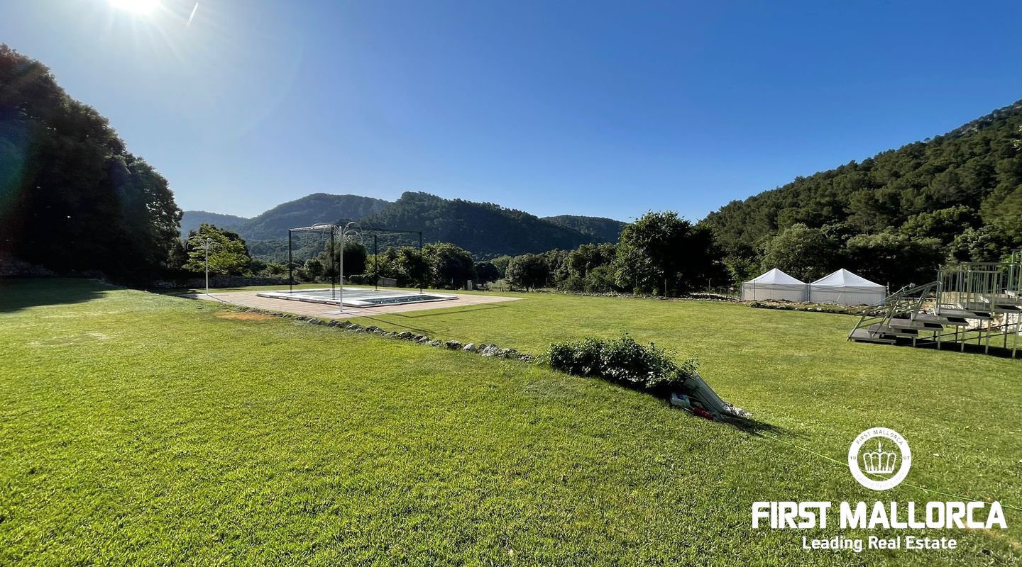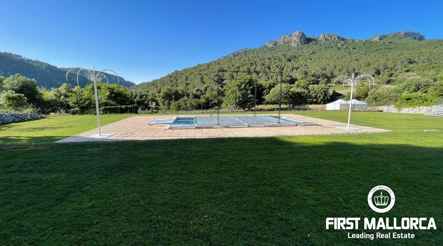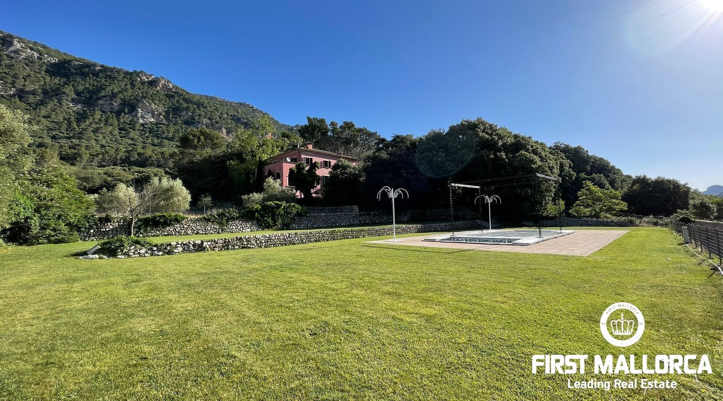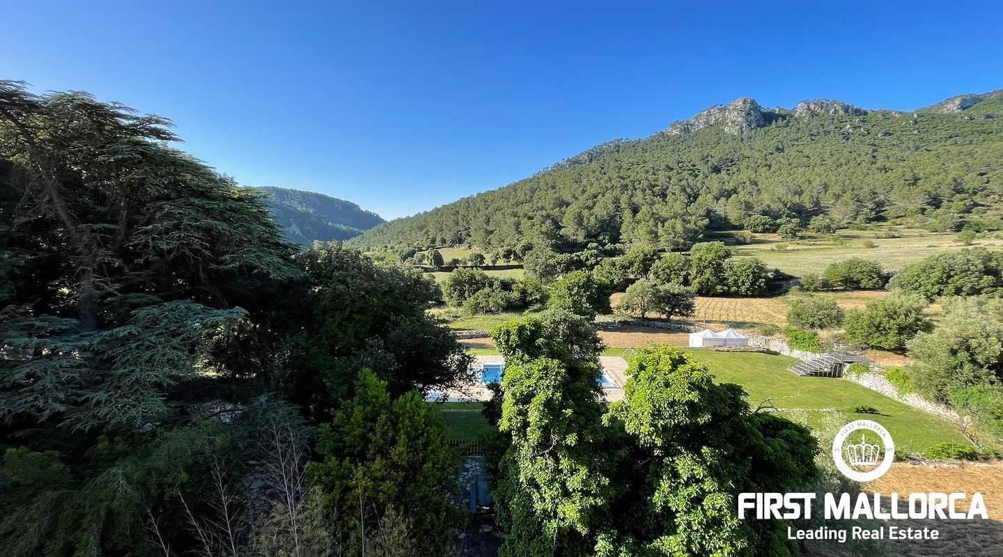 Exklusives Landhaus auf einem Grundstück von 2.680.000m2 in der Sierra de Tramuntana. Das Haupthaus von ca. 600m2 bietet geräumige Wohnzimmer, grosses Esszimmer, 3 Kamine, 2 Küchen, 6 Doppelschlafzimmer, 6 Bäder und 1 WC, Speisekammer, Waschküche, hydraulische Böden, Heizung, Holzbalken, mehrere Terrassen, Veranden, Garten, Schwimmbad und einen eigenen Brunnen. Die Immobilie bietet einen wunderschönen Panoramablick auf die Berge, Privatsphäre und Ruhe. Es besteht die Möglichkeit der Umgestaltung in ein Landhotel (zur Zeit gilt ein Moratorium von 4 Jahren für die Konzessionierung von weiteren Hotelbetten). An das Hauptgebäude sind weitere Nebengebäude angebaut, die zum selben Anwesen gehören. Hundertjährige Olivenbäume und autochthone Vegetation sind auf dem Grundstück in Hülle und Füllen vorhanden. In einem der Gebäude sind derzeit die für die Pflege und Instandhaltung des Anwesens zuständigen Personen untergebracht. Es ist ein Steingebäude mit 2 Etagen und etwa 70 m2 pro Etage (Erdgeschoss +2) mit einem großen Hof auf der Rückseite. es gibt mehrere Nebengebäude auf dem Grundstück für die für verschiedene Zwecke genutzt werden können. Es gibt ein privates Jagdgebiet auf dem Grundstück.