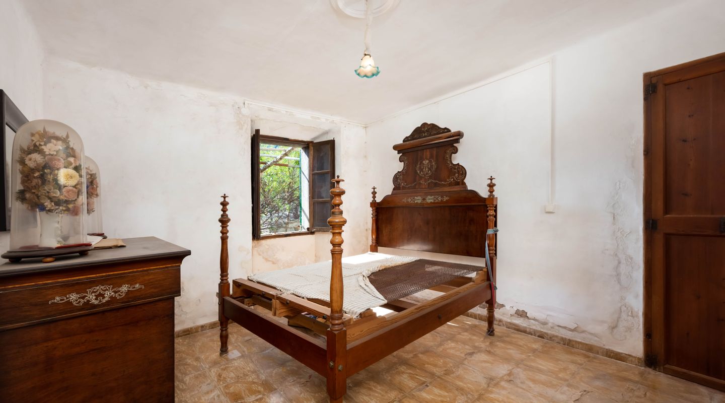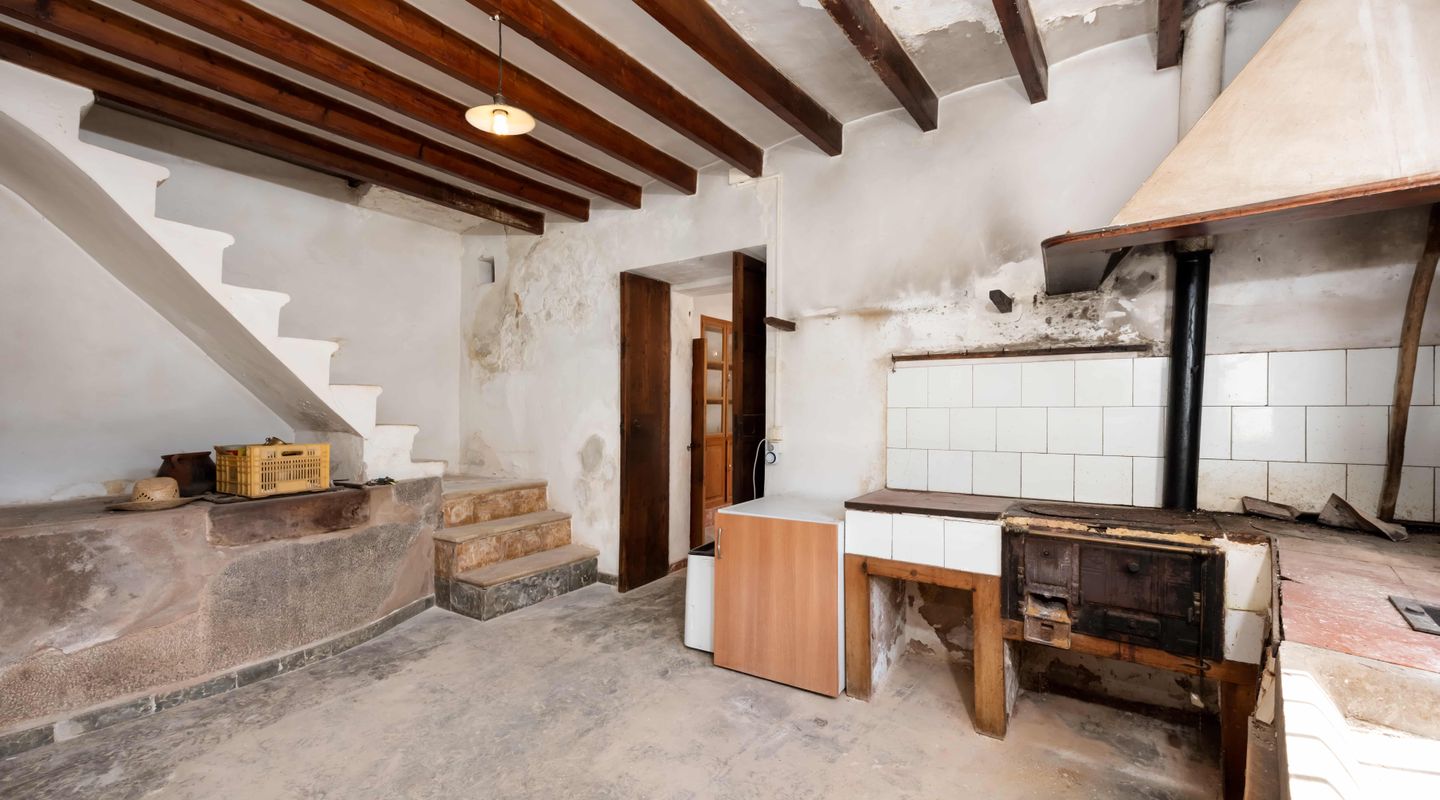 Die bebaute Fläche von ca. 142m2 verteilt sich auf zwei Ebenen auf ein Eingangsbereich, ein Wohnzimmer, eine Küche, vier Schlafzimmer und ein Badezimmer. Ausserdem bietet die Immobilie im Aussenbereich einen Abstellraum und eine Garage. Die Finca ist an Stadtstrom angeschlossen und die Wasserversorgung erfolgt über eigenen Brunnen. Es existiert schon ein Renovierungsprojekt und eine Baugenehmigung dafür, deswegen könnte man sofort mit der Renovierung beginnen.
