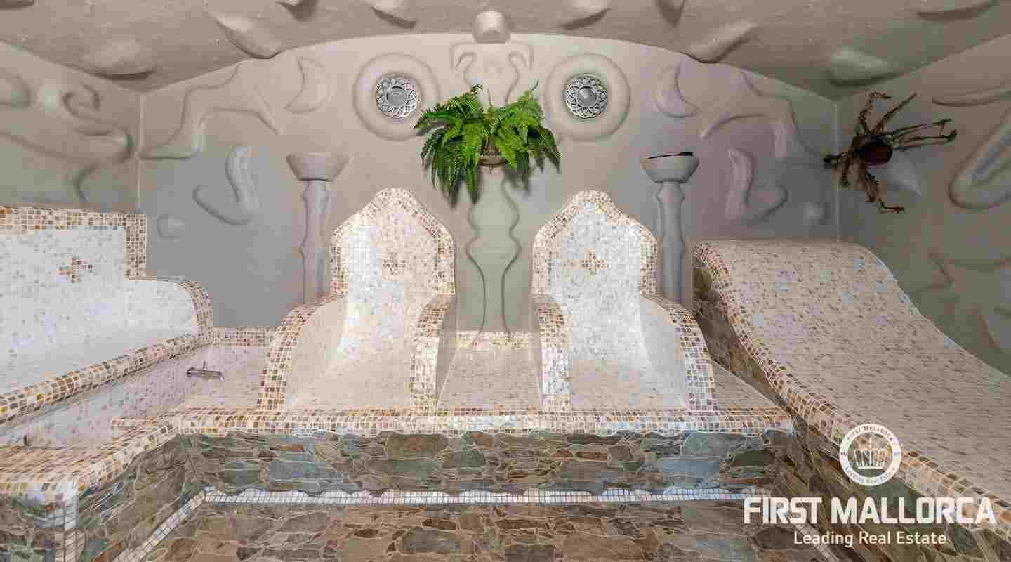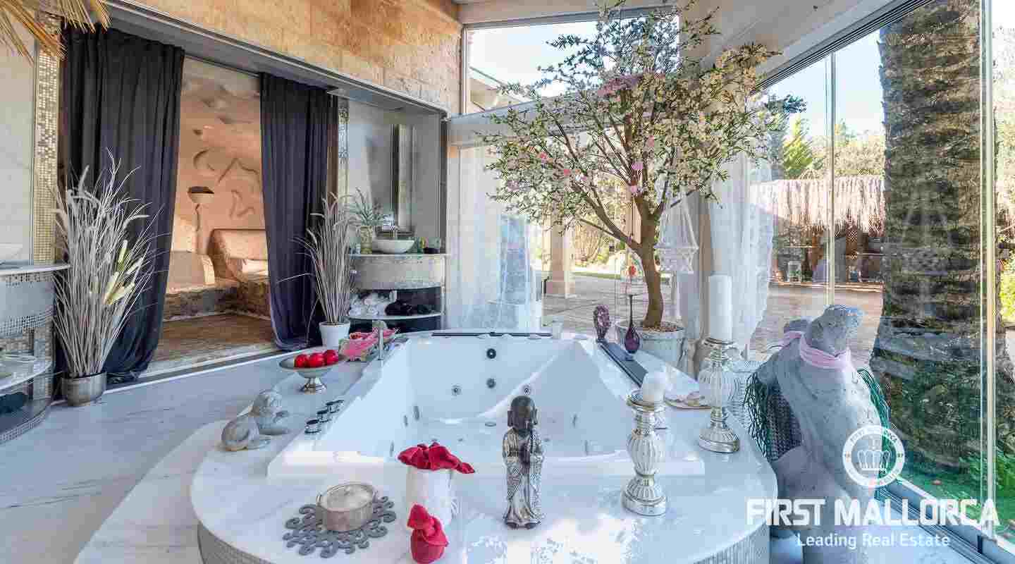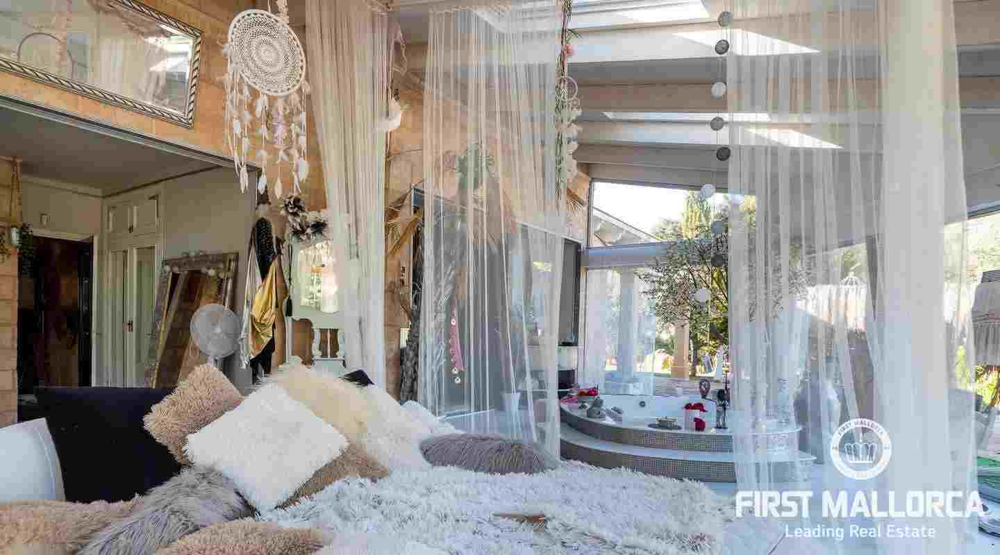 Das Haus bietet viel Privatsphäre und einen traumhaften Weitblick. Die Finca verfügt über vier Schlafzimmer von denen sich drei im Haupthaus befinden und eines in einem kleinen Turm, der von außen zugänglich ist. Natürlich hat das Turmzimmer ein Bad en suite und eine private Terrasse, so dass es sich perfekt als Gästebereich eignet. Das Master Schlafzimmer verfügt über einen eigenen Spa-Bereich und ermöglicht einen fantastischen Blick in die Sterne bei Nacht.