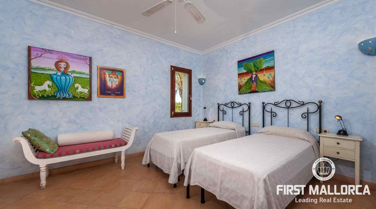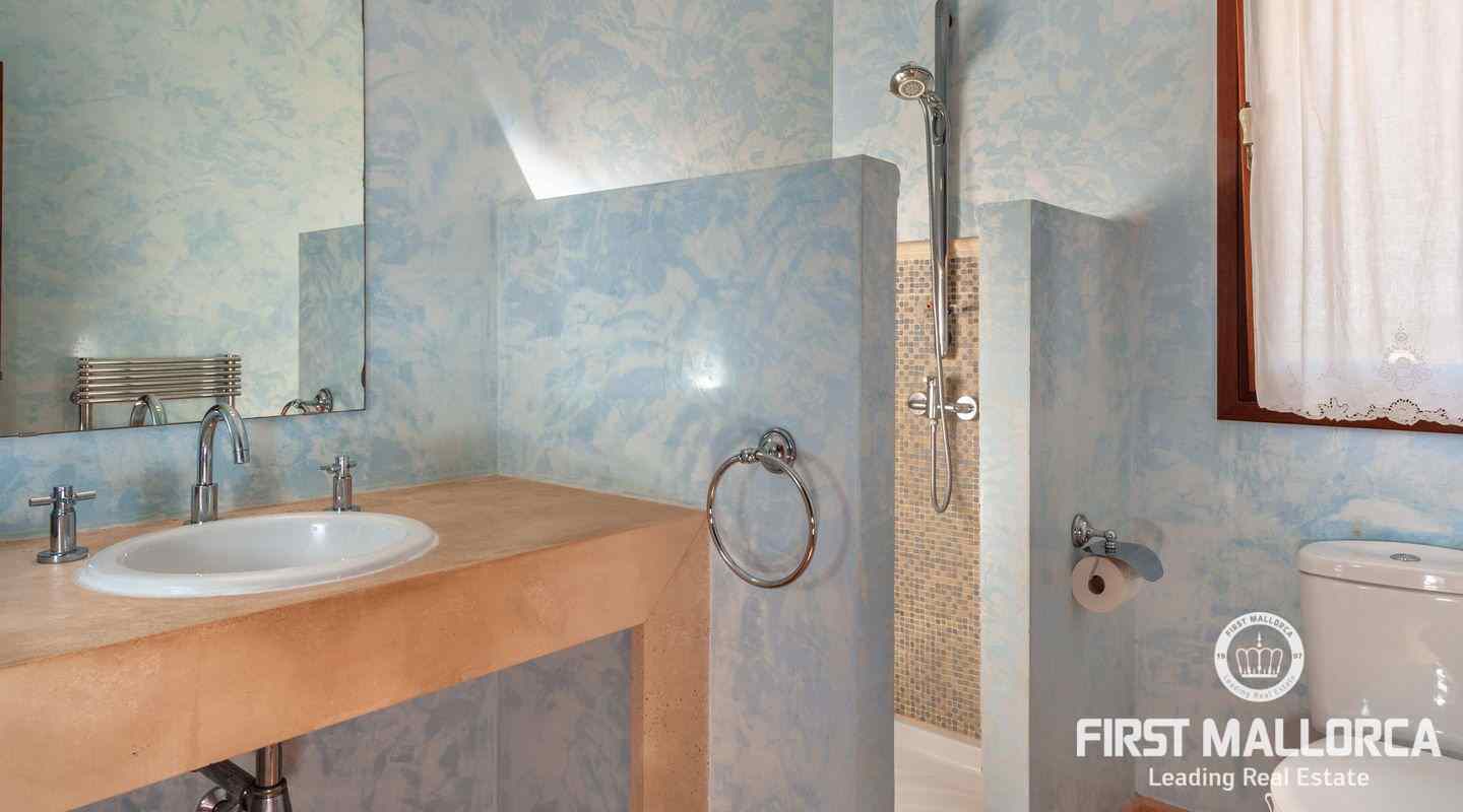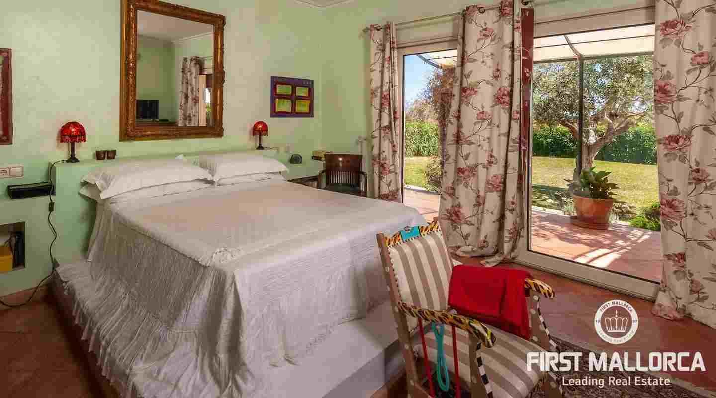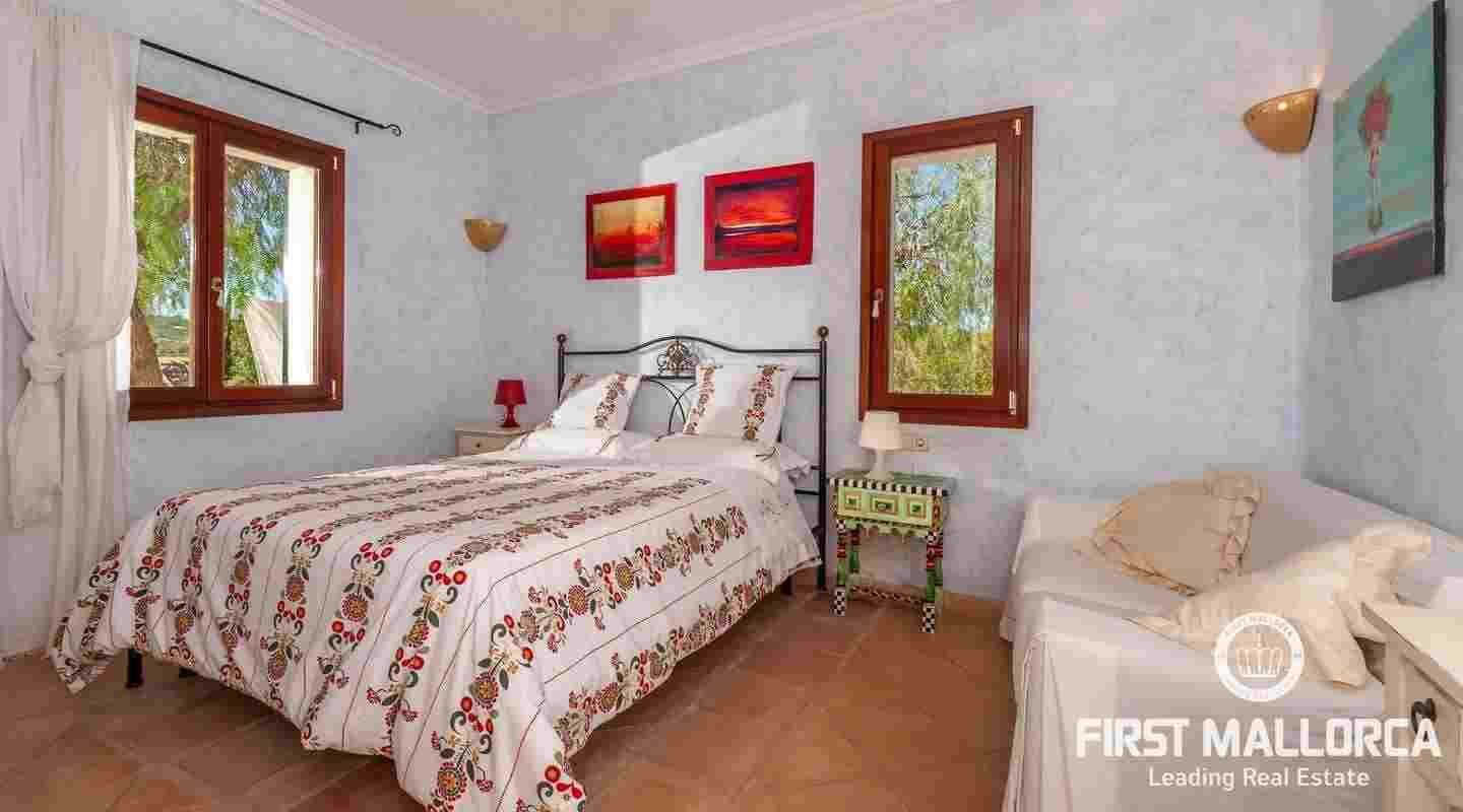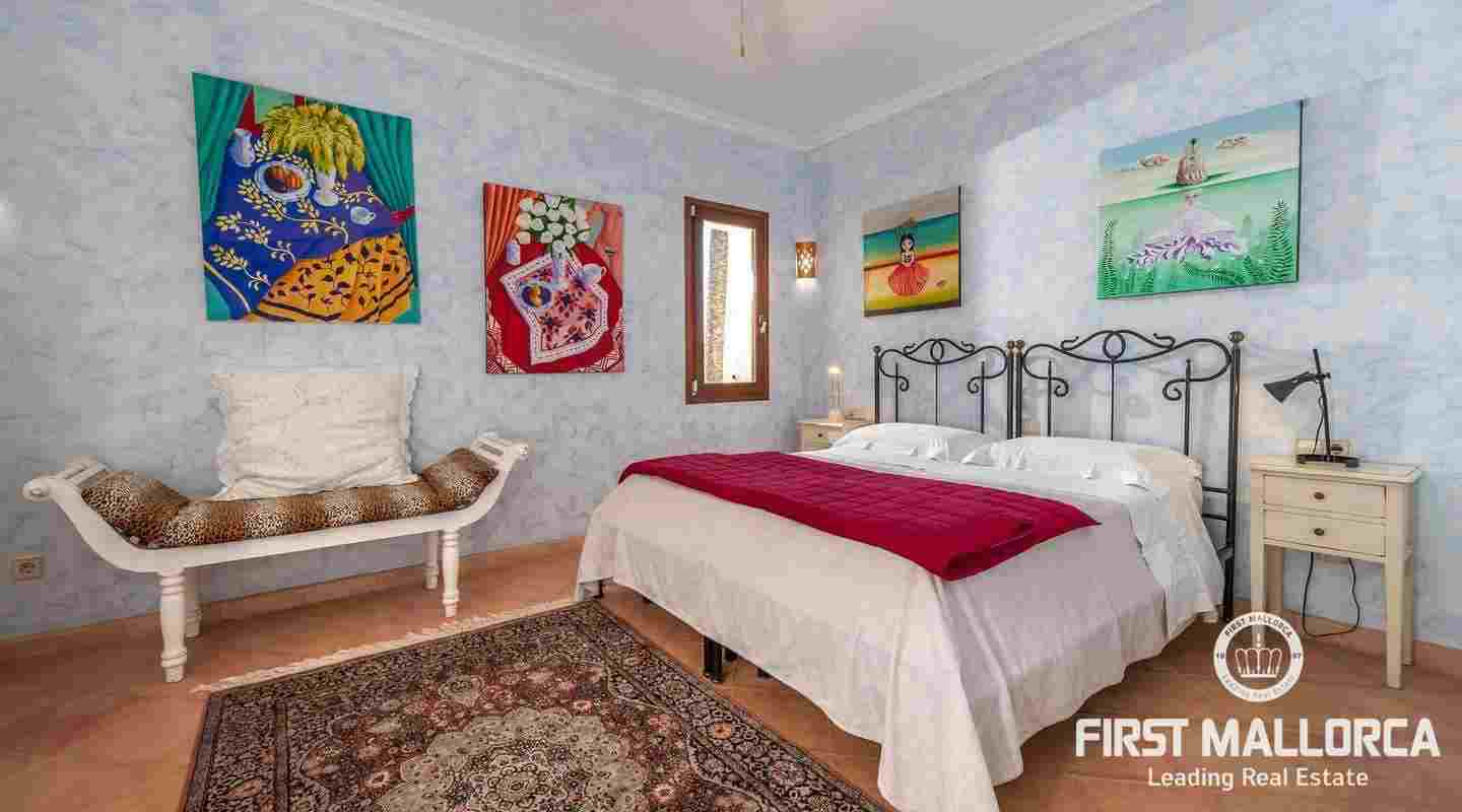 Die Finca verfügt über ein großzügiges Wohn-/ Esszimmer mit Kamin, großen Glasfronten sowie Zugang zu einer überdachten Terrasse, welche einen Blick auf den Pool und das Meer bietet. Ebenfalls ebenerdig befinden sich eine voll ausgestattete Einbauküche mit angrenzender Waschküche, 2 Abstellräume, ein Gästebad und 2 Schlafzimmer mit Bad en suite. Im Obergeschoss gibt es 3 weitere Schlafzimmer, jeweils mit Bad en Suite und eigener Terrasse.