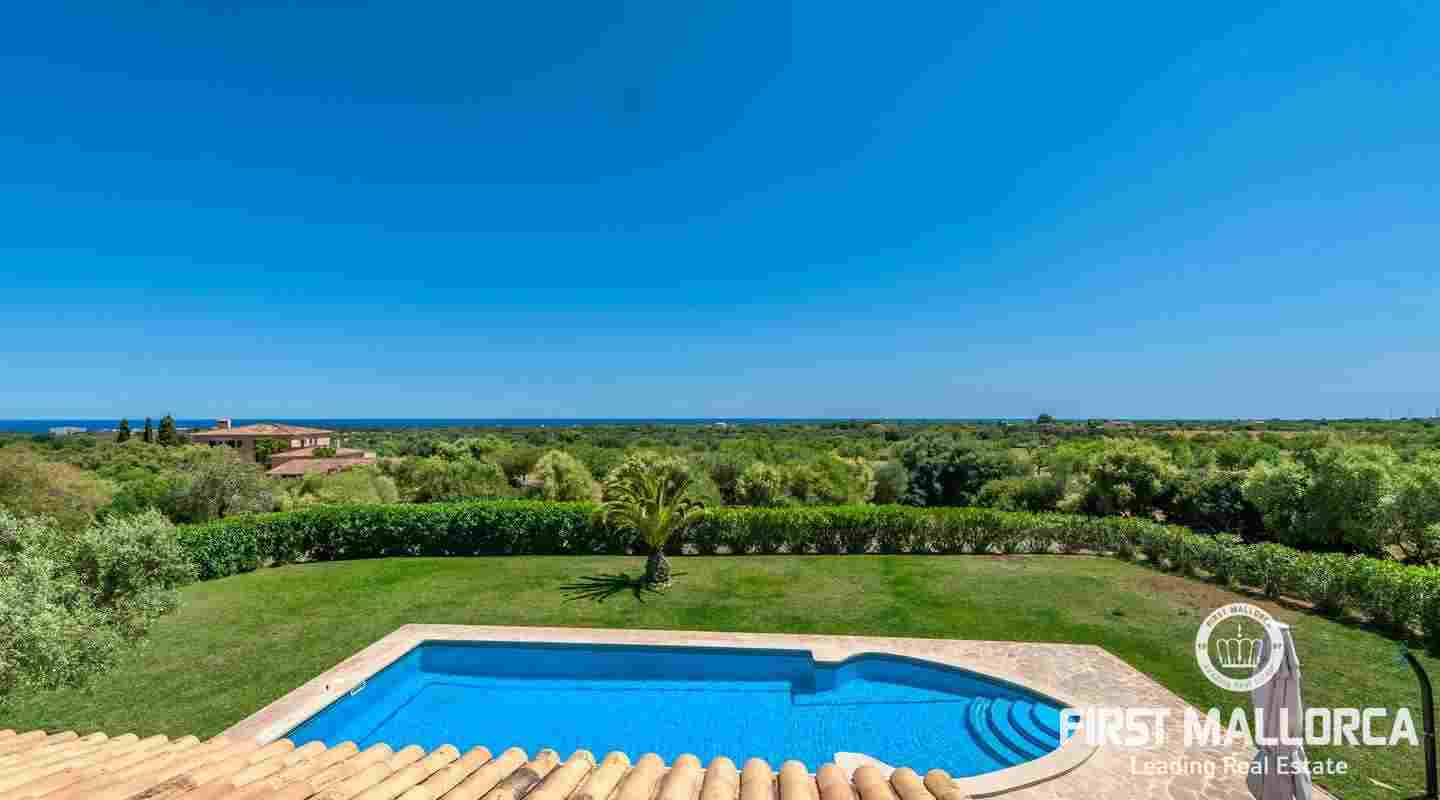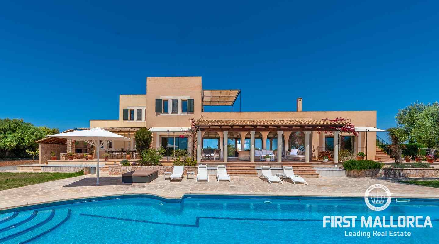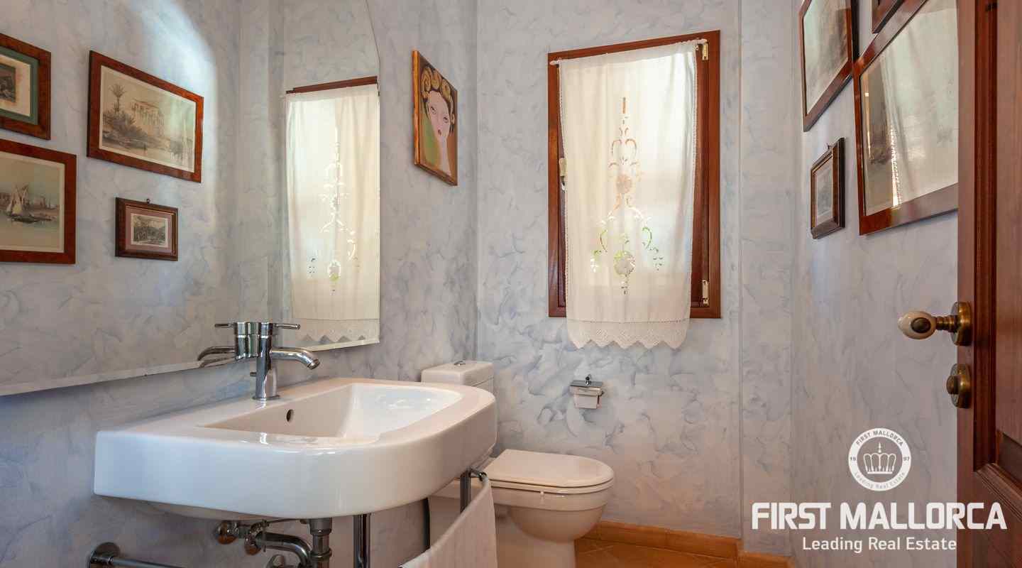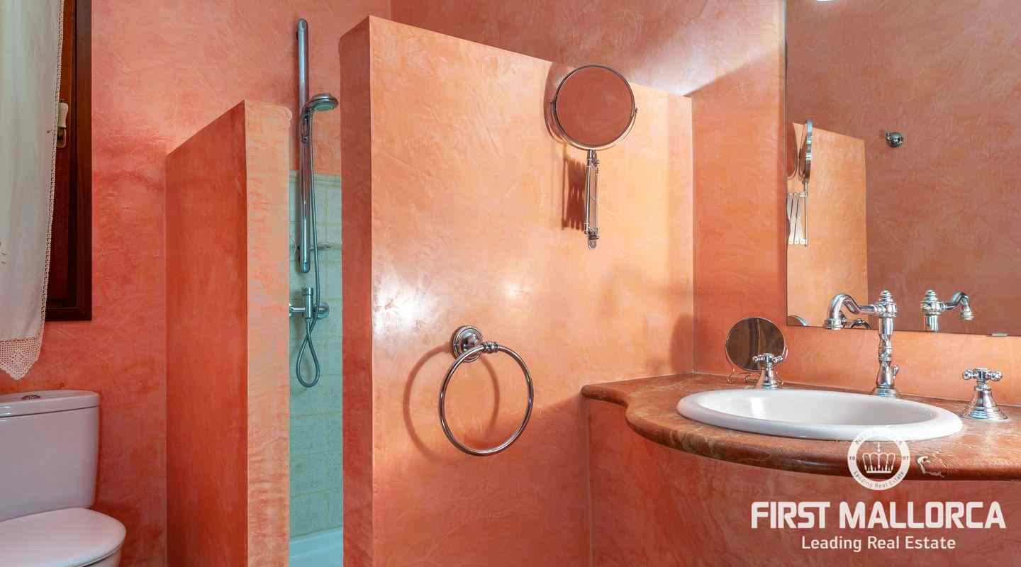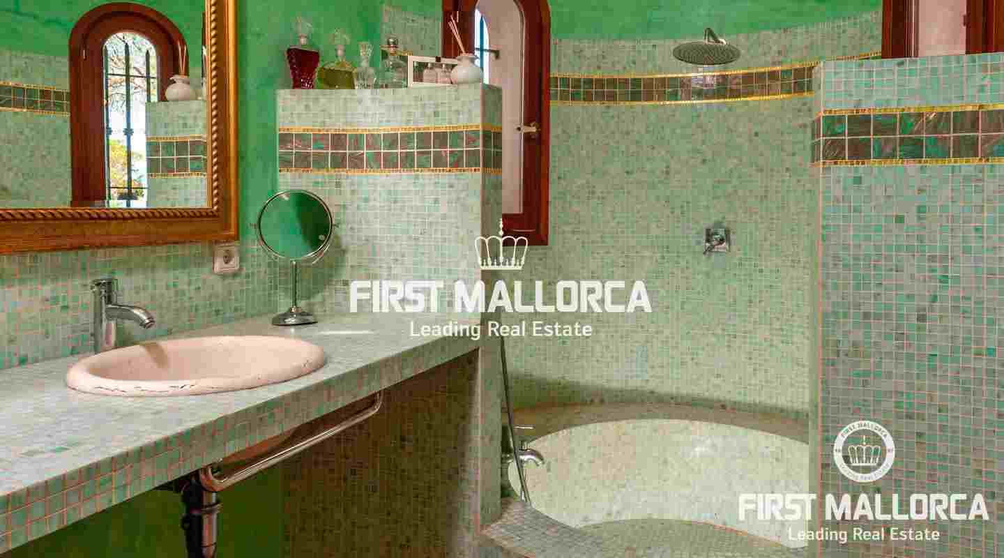 Die Finca verfügt über ein großzügiges Wohn-/ Esszimmer mit Kamin, großen Glasfronten sowie Zugang zu einer überdachten Terrasse, welche einen Blick auf den Pool und das Meer bietet. Ebenfalls ebenerdig befinden sich eine voll ausgestattete Einbauküche mit angrenzender Waschküche, 2 Abstellräume, ein Gästebad und 2 Schlafzimmer mit Bad en suite. Im Obergeschoss gibt es 3 weitere Schlafzimmer, jeweils mit Bad en Suite und eigener Terrasse.