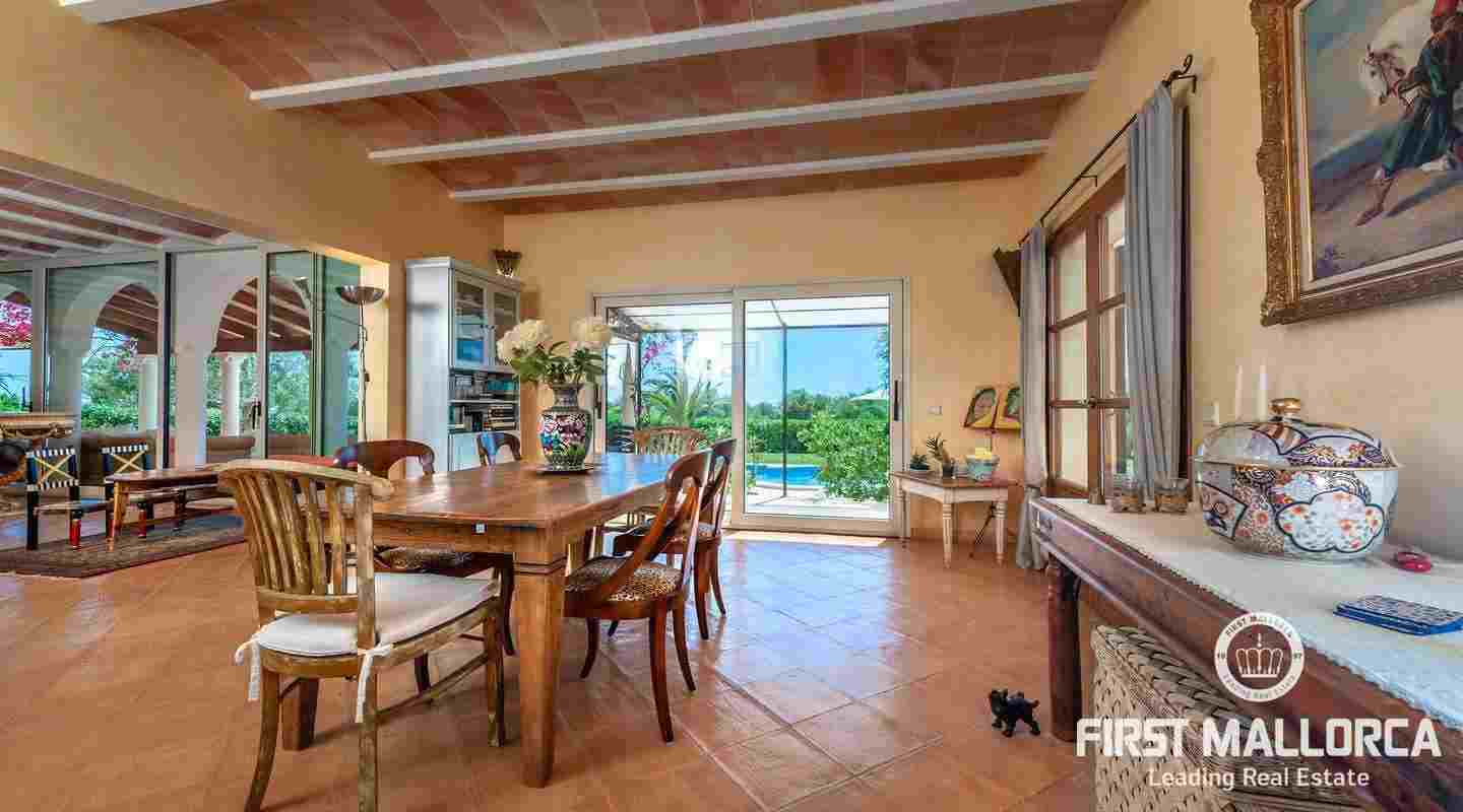Diese schöne Finca in wunderbar ruhiger Lage befindet sich zwischen S'Horta und Portocolom im Südosten von Mallorca. Schon beim Betreten der Immobilie gelangt man in einen beeindruckenden offenen Patio mit Springbrunnen.