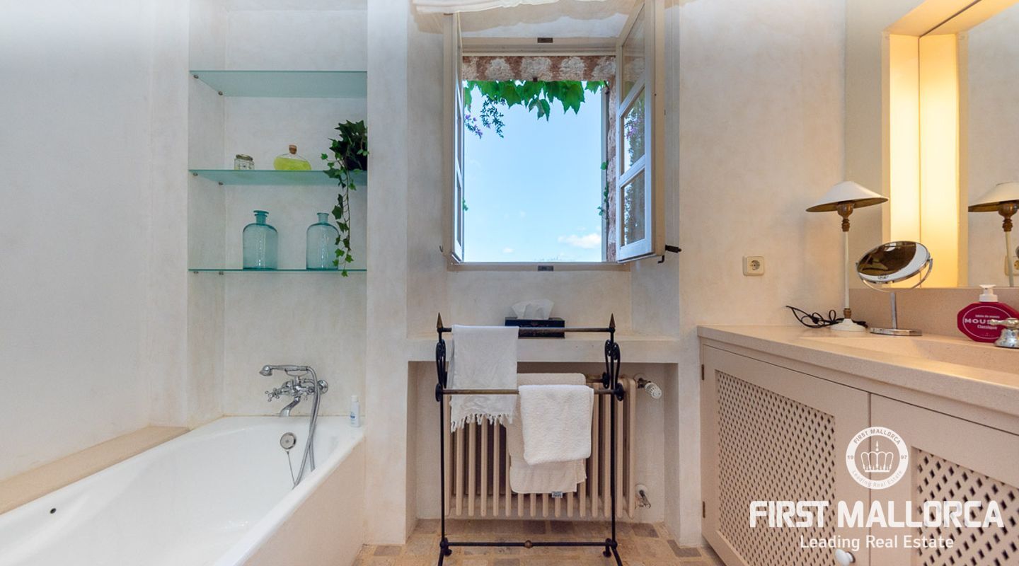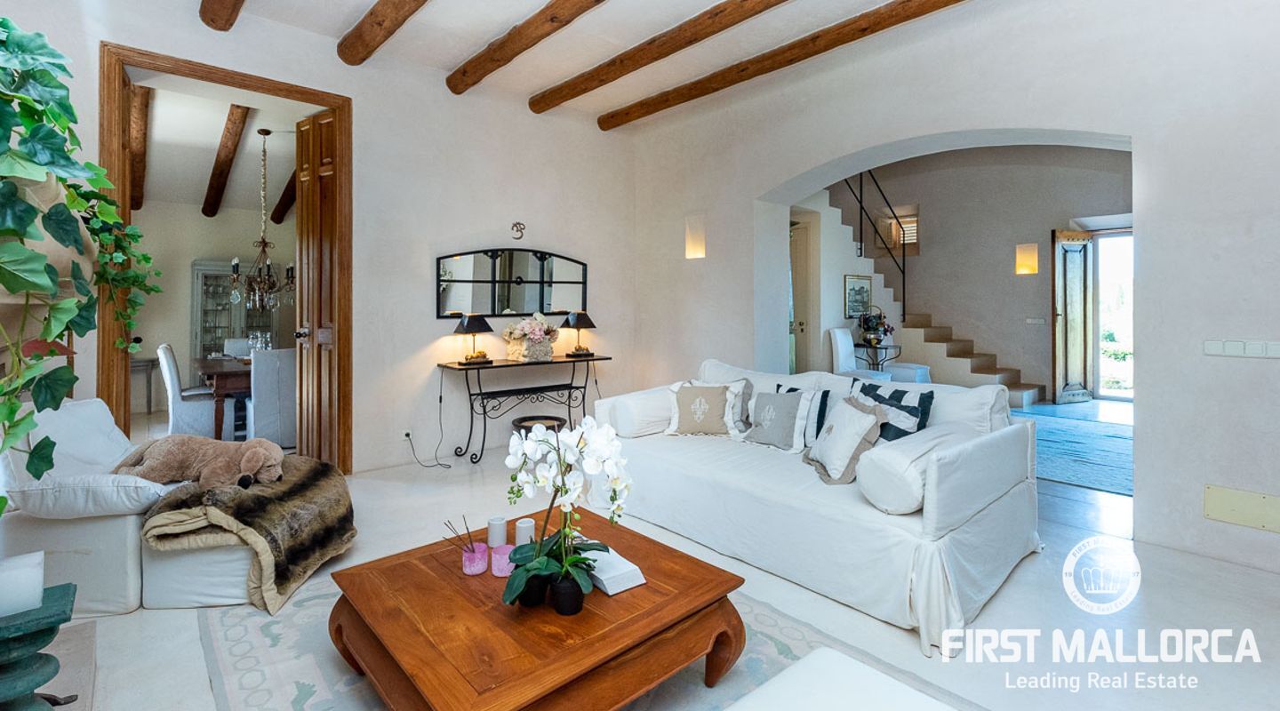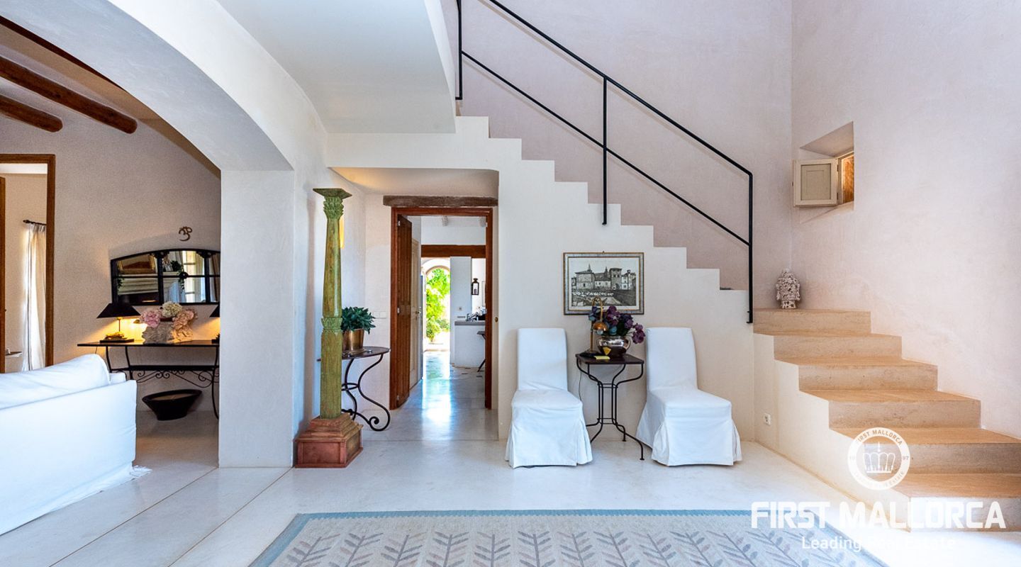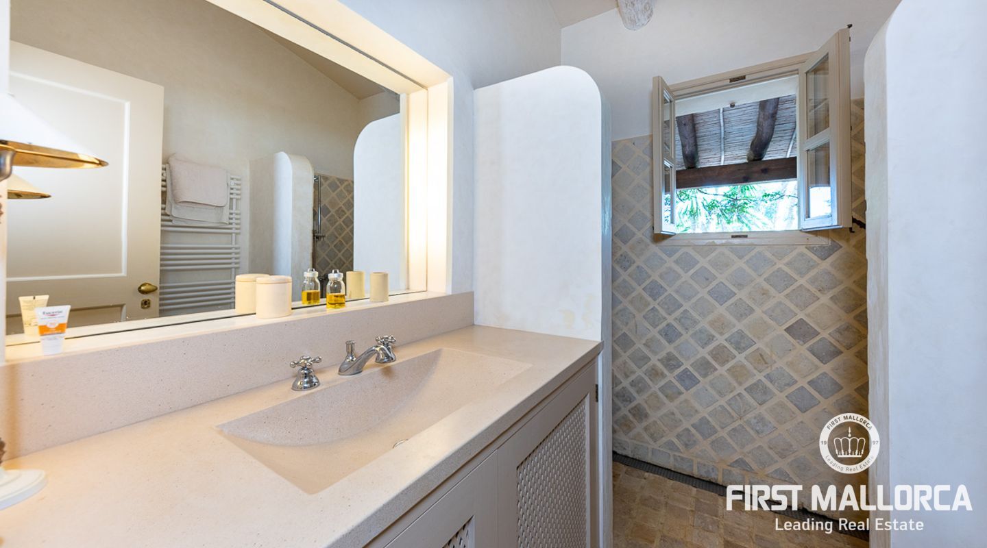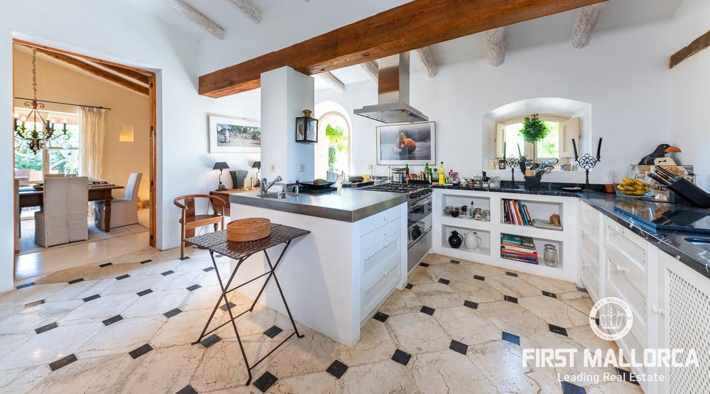 Es wurde im Landhausstil gebaut und bietet viele offene Strukturen und Freiräume. Das Haupthaus bietet Ihnen drei vollwertige Schlafzimmer. Im Erdgeschoss finden Sie die Küche, das Esszimmer, den Wohnraum und ein Kaminzimmer. Des Weiteren befinden sich im Erdgeschoss zwei Gästeschlafzimmer mit eigenem Wohnraum, so dass diese durch einen separaten Eingang auch unabhängig genutzt werden können. Das Obergeschoss beherbergt das Master Schlafzimmer mit privater Terrasse mit Meerblick. Von außen zugänglich gibt es zudem ein weiteres Gästeapartment.