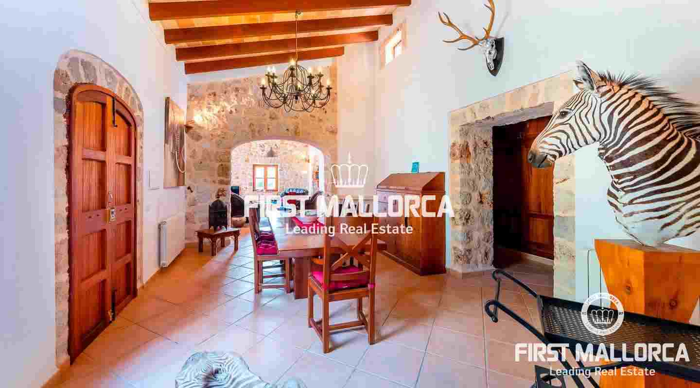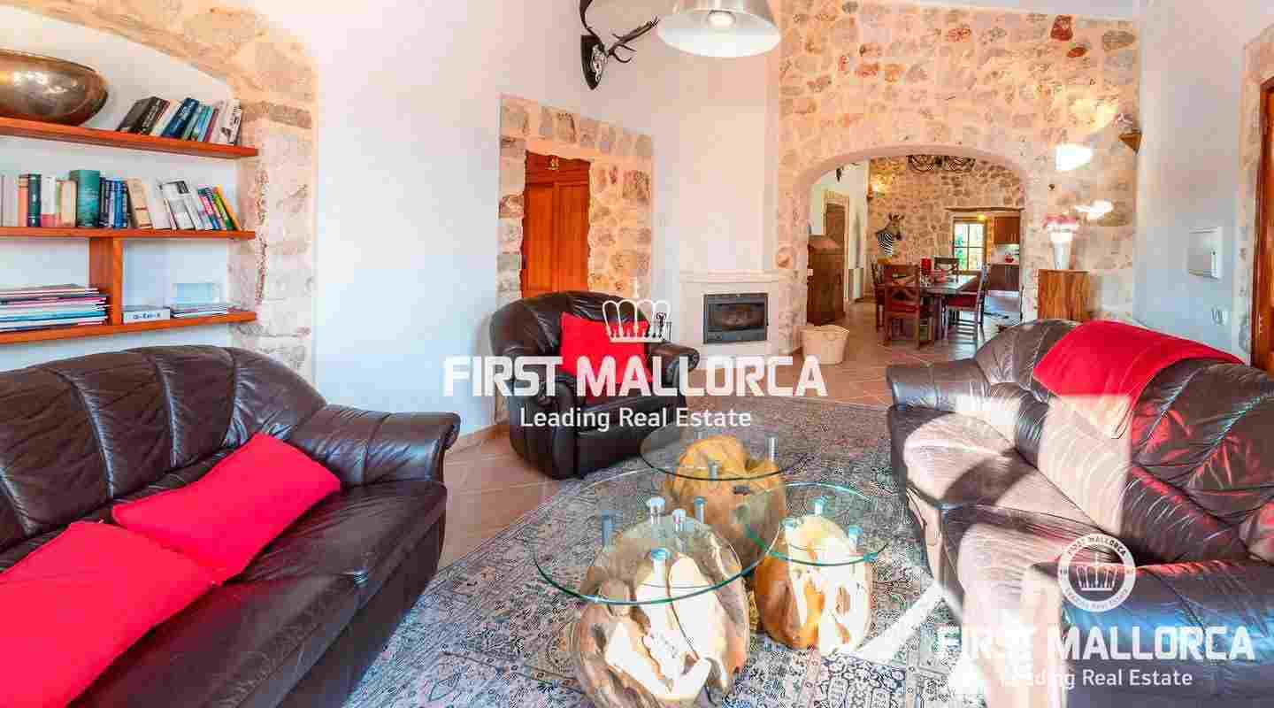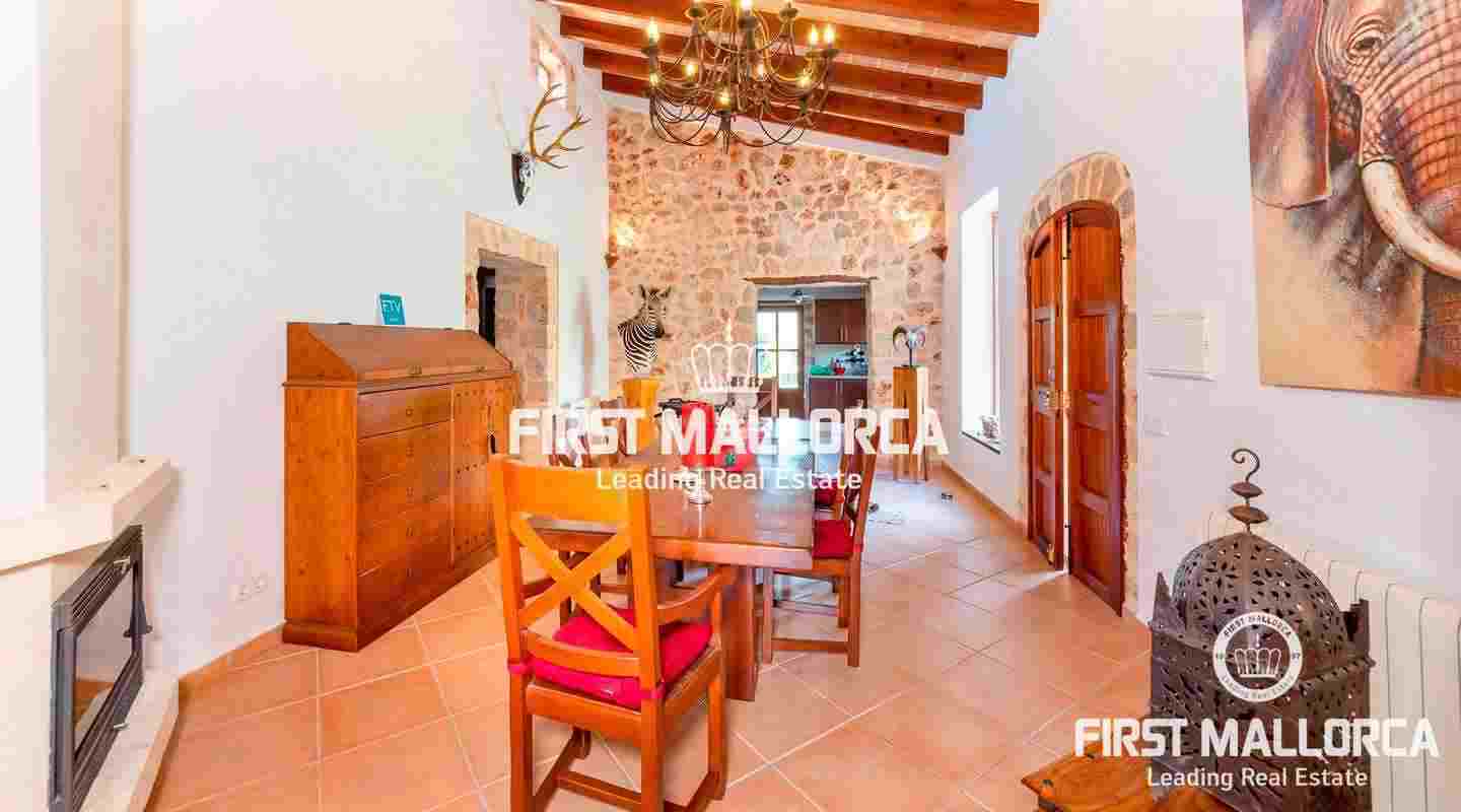 Die schöne Steinfinca wurde mallorquinischen Stil errichtet und ist von einem sehr gepflegten Garten umgeben. Das Dorf Sineu ist zu Fuß gut zu erreichen. Im Haupthaus befindet sich der offene Wohn- und Eßbereich mit angrenzender Küche und Zugang zu der überdachten Terrasse sowie drei Schlafzimmer und zwei Badezimmer. Das Gästehaus besteht aus einer offenen Wohnküche, einem Schlafzimmer und einem Badezimmer. Im Außenberech gibt es einen großen, etwas erhöhten Salzwasser-Pool und noch ein kleinen Aussichtspunkt, von dem man einen wunderschönen Blick auf das Tramuntana Gebirge hat und dazu einlädt, den Sonnenuntergang zu genießen. Die Finca verfügt zudem noch über eine Garage, einen Hauswirtschaftsraum, Ölheizung, Kamin, Solaranlage und eigenen Brunnen.
