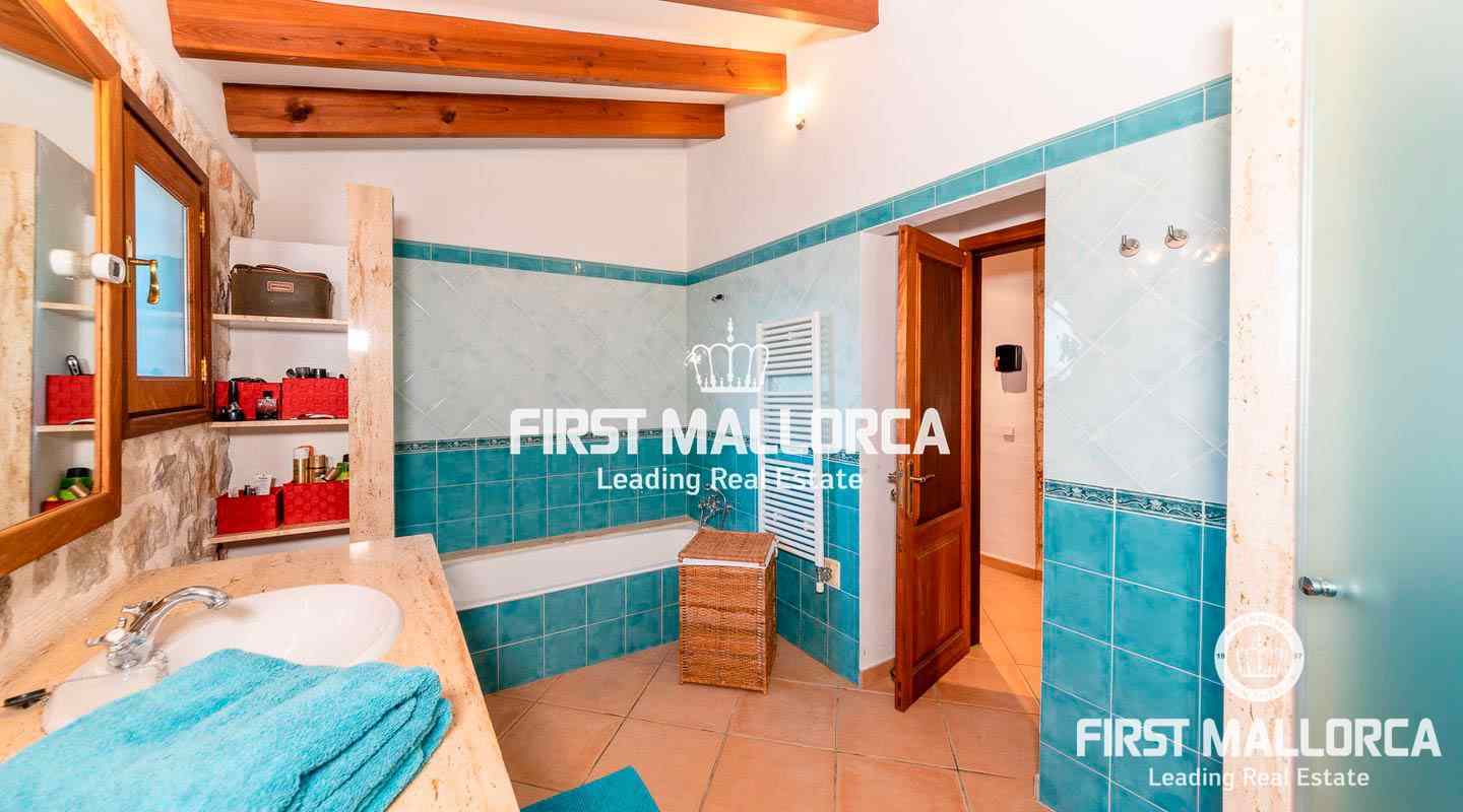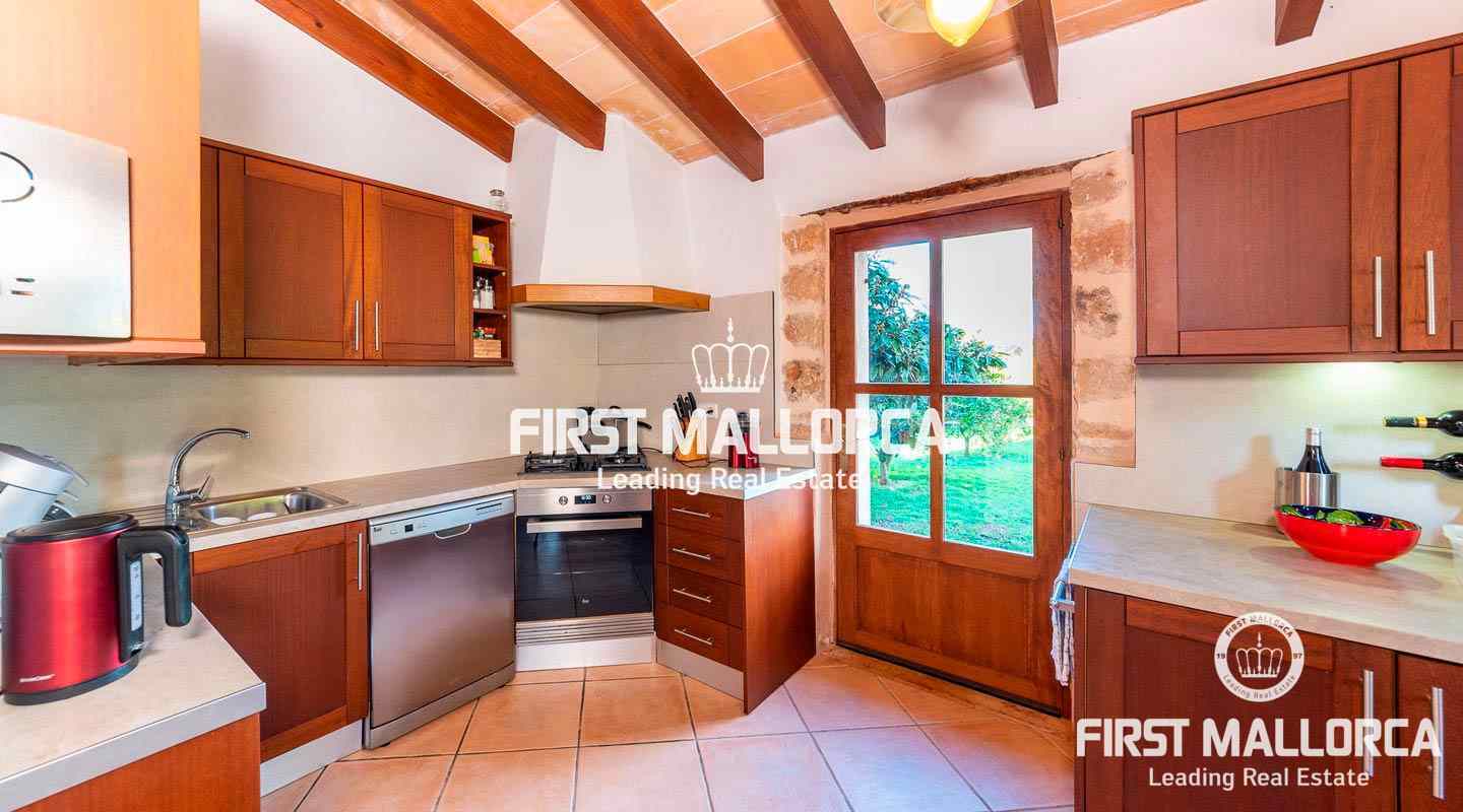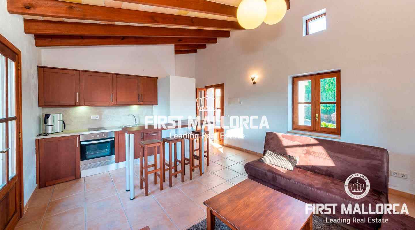 Die schöne Steinfinca wurde mallorquinischen Stil errichtet und ist von einem sehr gepflegten Garten umgeben. Das Dorf Sineu ist zu Fuß gut zu erreichen. Im Haupthaus befindet sich der offene Wohn- und Eßbereich mit angrenzender Küche und Zugang zu der überdachten Terrasse sowie drei Schlafzimmer und zwei Badezimmer. Das Gästehaus besteht aus einer offenen Wohnküche, einem Schlafzimmer und einem Badezimmer. Im Außenberech gibt es einen großen, etwas erhöhten Salzwasser-Pool und noch ein kleinen Aussichtspunkt, von dem man einen wunderschönen Blick auf das Tramuntana Gebirge hat und dazu einlädt, den Sonnenuntergang zu genießen. Die Finca verfügt zudem noch über eine Garage, einen Hauswirtschaftsraum, Ölheizung, Kamin, Solaranlage und eigenen Brunnen.