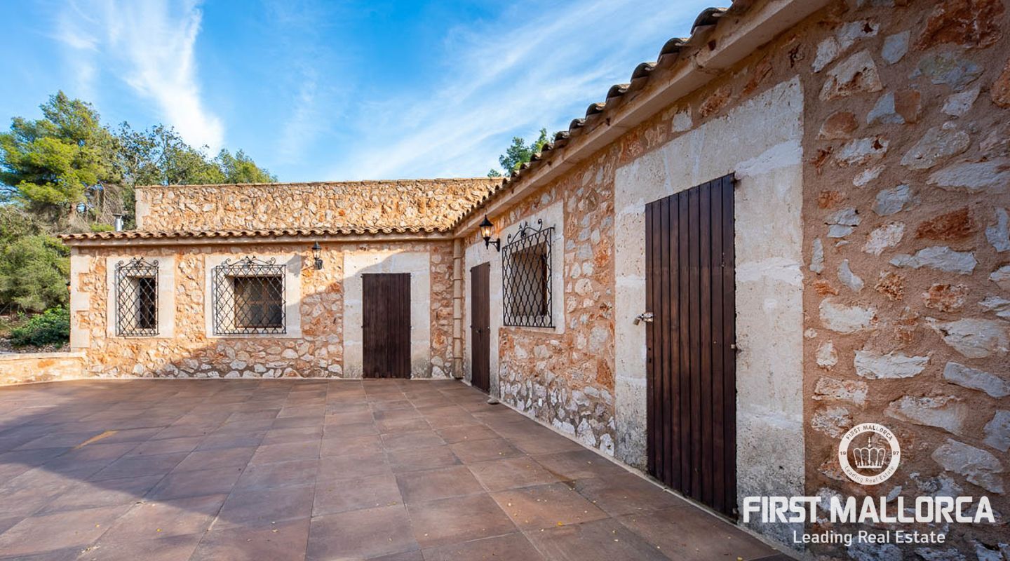 Dieses beeindruckende Finca-Anwesen inmitten der malerischen mediterranen Natur zwischen Felanitx und Son Macia bietet absolute Privatsphäre. Das Hauptgebäude besticht durch seine mallorquinische Steinfassade, Holzfensterläden und Türen mit Rundbögen. Es verfügt über drei großzügige Schlafzimmer, alle mit eigenen Badezimmern, ein Hauptschlafzimmer mit Ankleidebereich und en-suite Bad, eine moderne Küche mit Kochinsel und separatem Eingang sowie einen großzügigen, lichtdurchfluteten Wohn- und Essbereich mit einem einladenden Kamin. Eine geräumige Terrasse von ca. 30 m² bietet einen atemberaubenden Blick auf die umliegende Landschaft und den Garten.