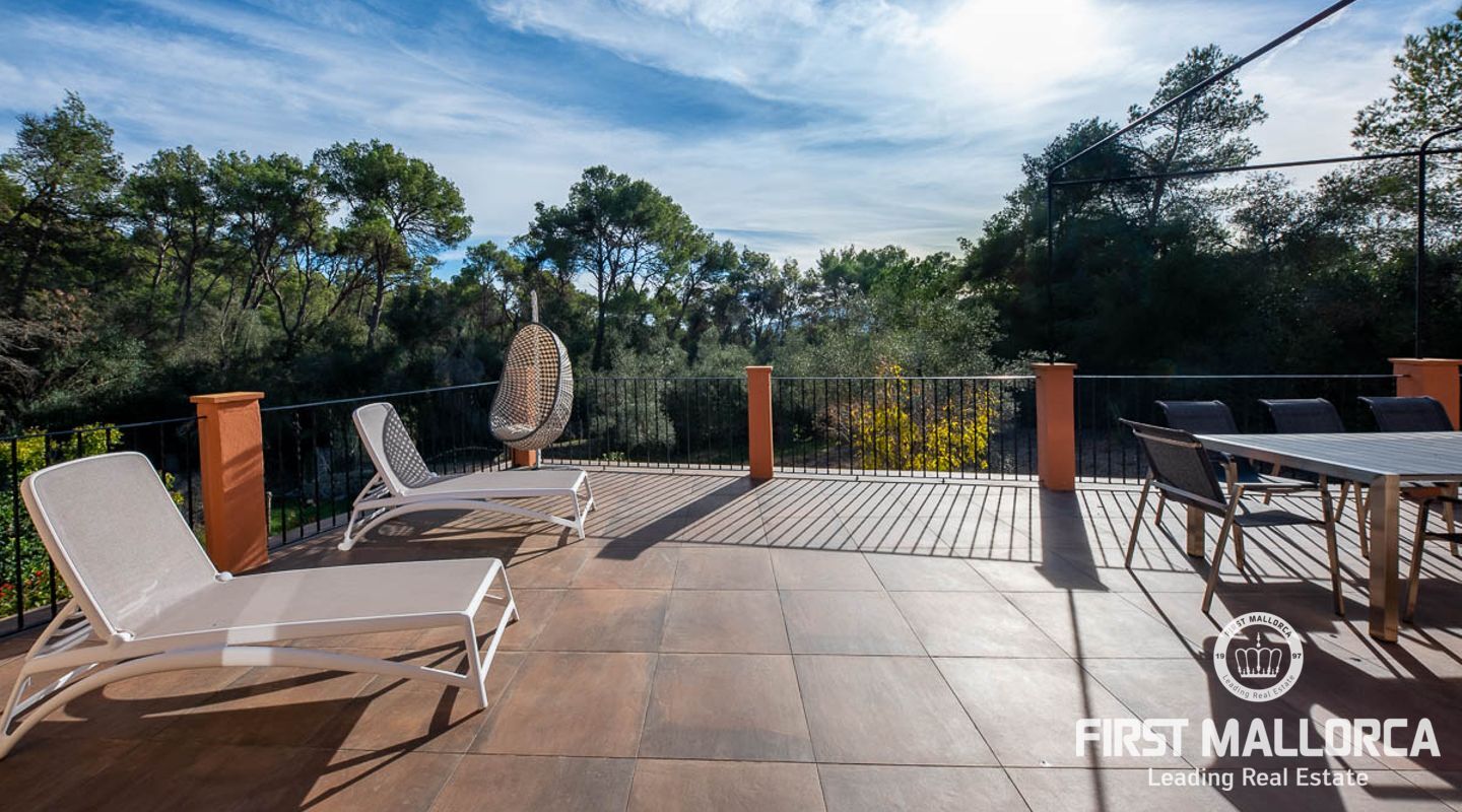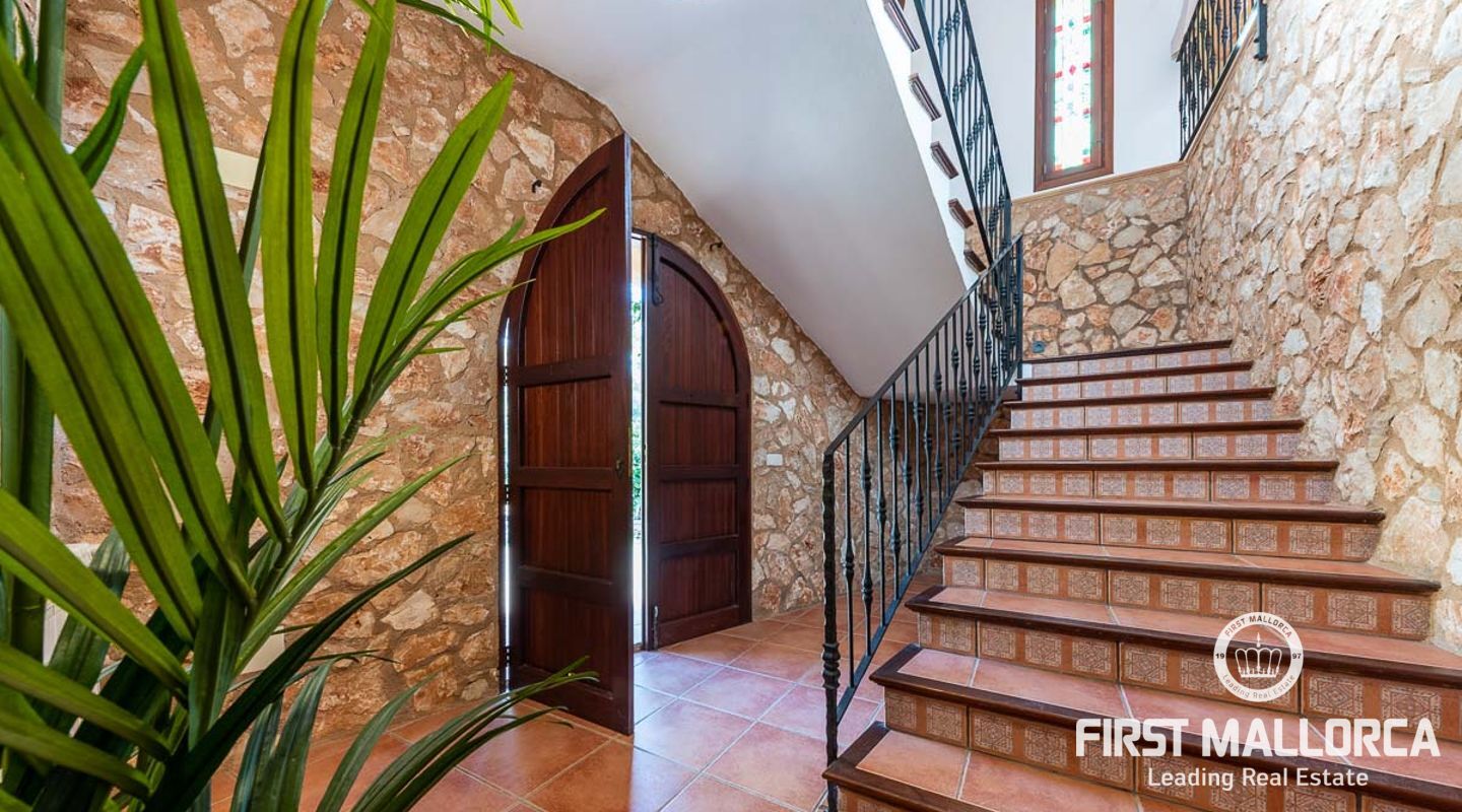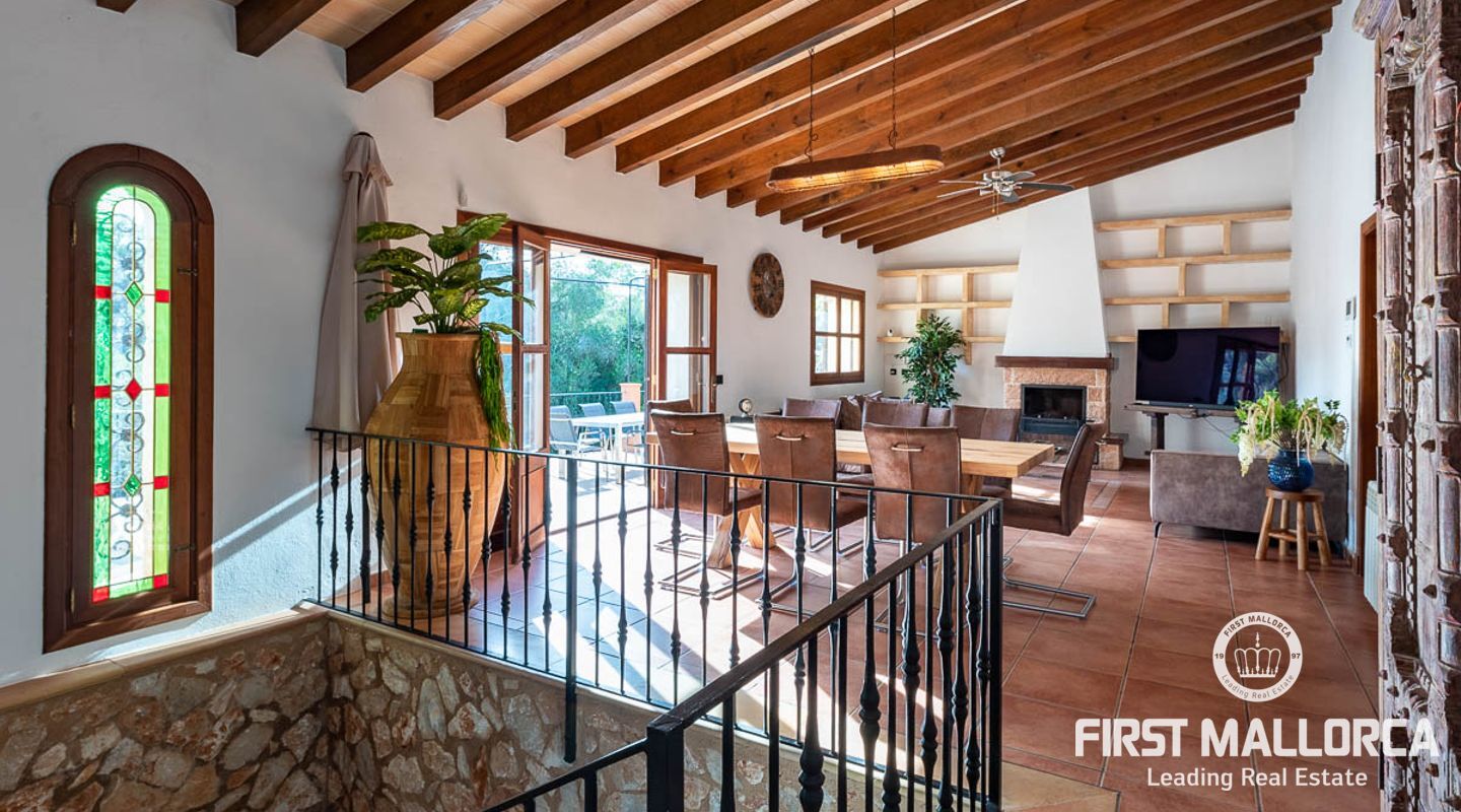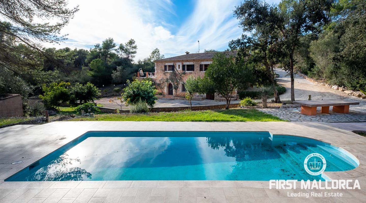 Das 26.000 m² große Grundstück verfügt über einen traumhaften Pool mit angrenzender Chillout-Zone und großzügigem Essbereich, ideal für gesellige Abendessen im Freien. Der mediterrane Garten wurde terrassenförmig gestaltet und ist von gut gepflegten Bäumen und Pflanzen umgeben. In einem abgelegenen Bereich der Finca befinden sich eine leistungsstarke Solaranlage sowie Stallungen mit Platz für etwa vier Boxen, die nach Bedarf erweitert werden können. Eine große Wiese erstreckt sich bis zum höchsten Punkt des Grundstücks, von dem aus Sie sogar einen Blick auf das Meer genießen können.