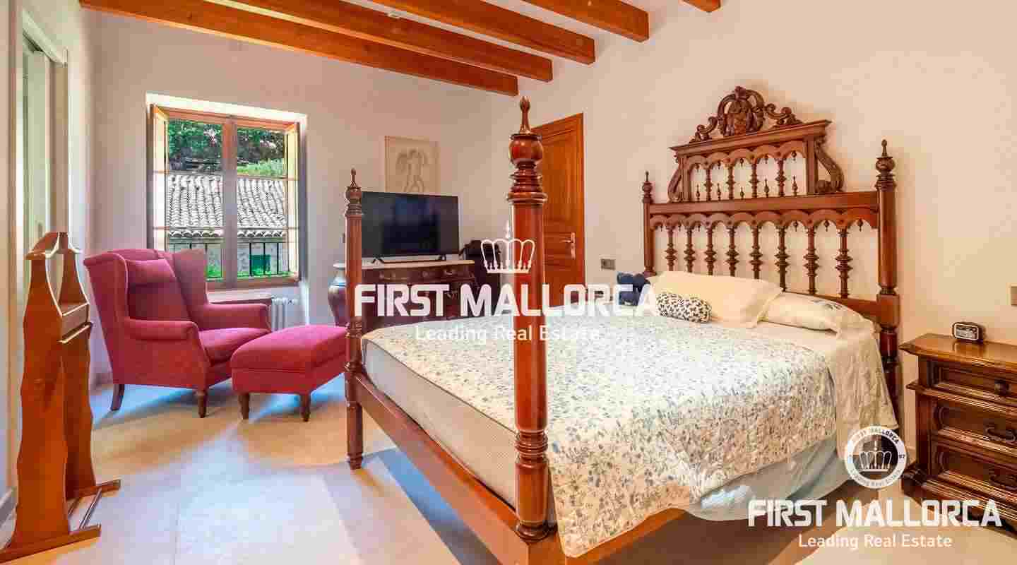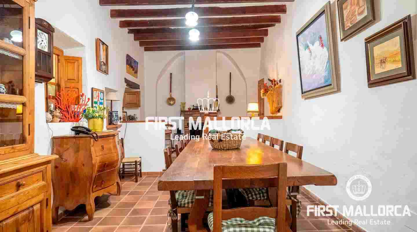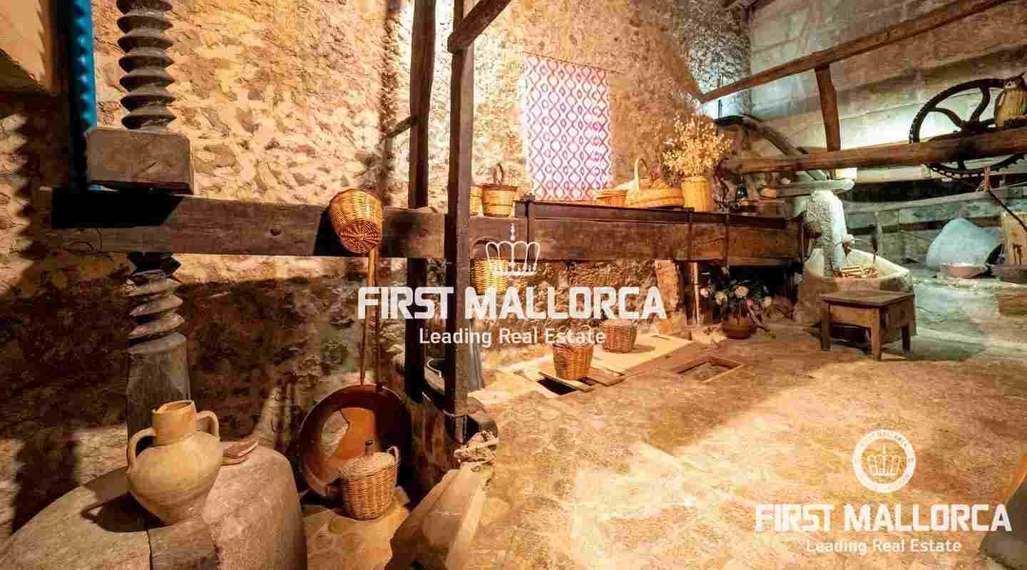 Die Häuser werden durch einen typischen mallorquinischen Kreuzgang betreten. Das Haupthaus verfügt über einen Eingangsbereich, eine geräumige Küche, ein Esszimmer, ein großzügiges Wohnzimmer mit Kamin, eine Bibliothek, 4 Schlafzimmer und 3 Badezimmer, 2 davon en Suite. Im Untergeschoss gibt es einen Weinkeller, mehrere Abstellräume und einen großen Raum mit Zugang zum Garten sowie zum Pool. Das Haus ist mit Ölzentralheizung ausgestattet.