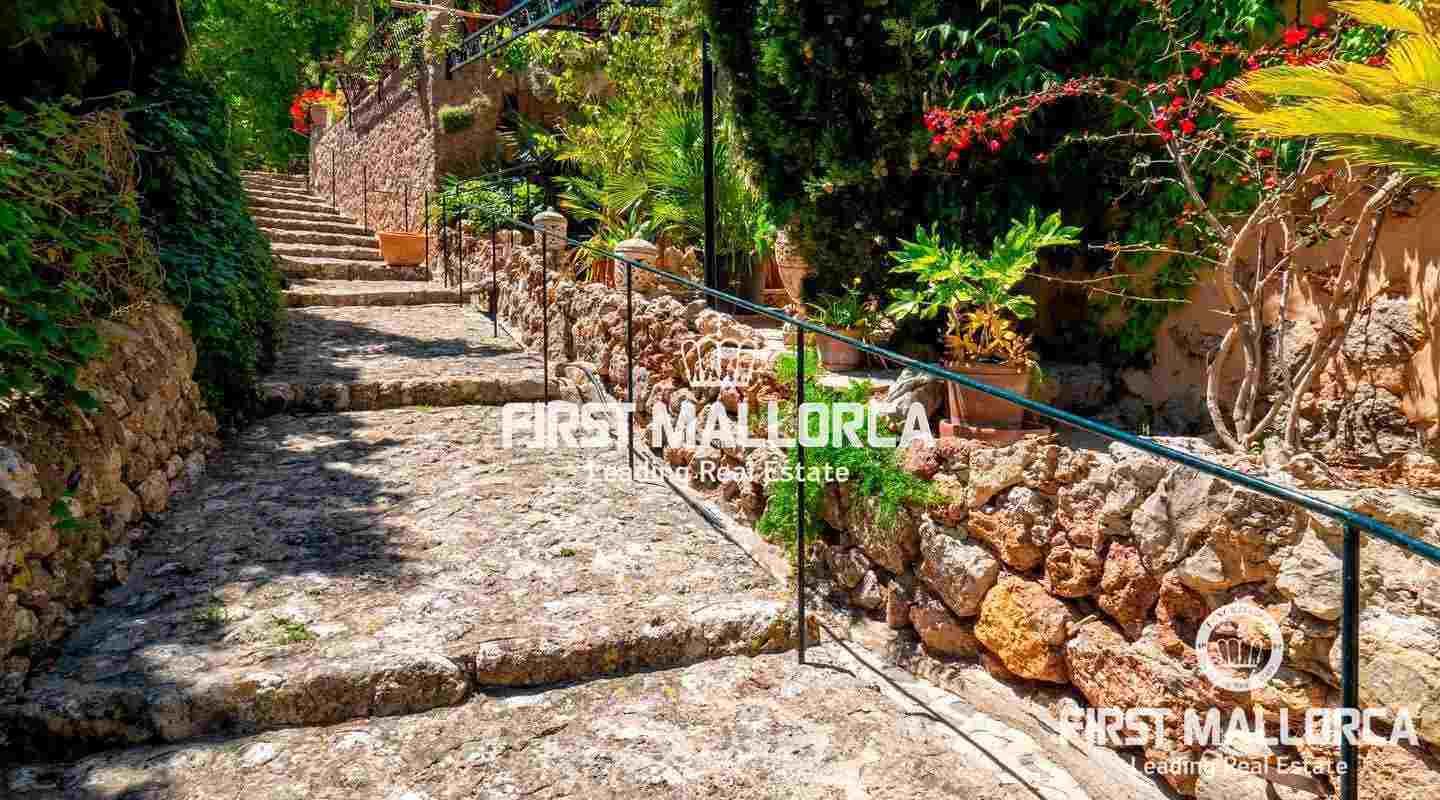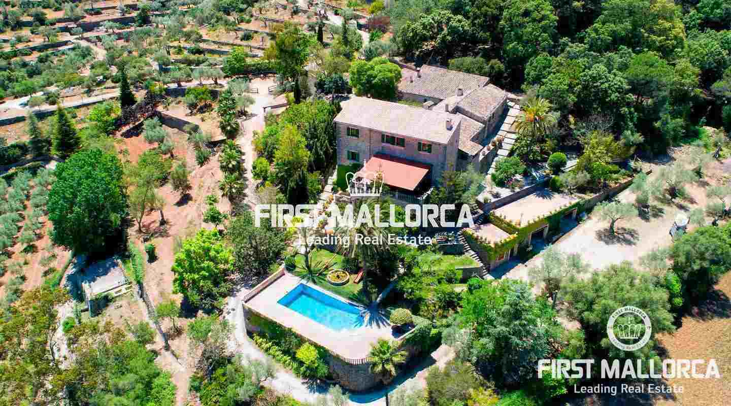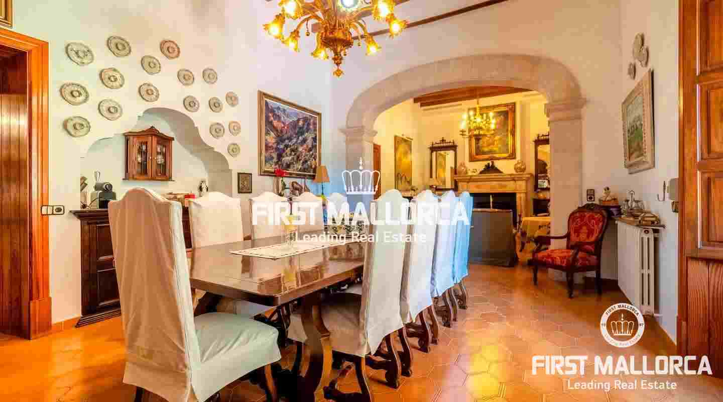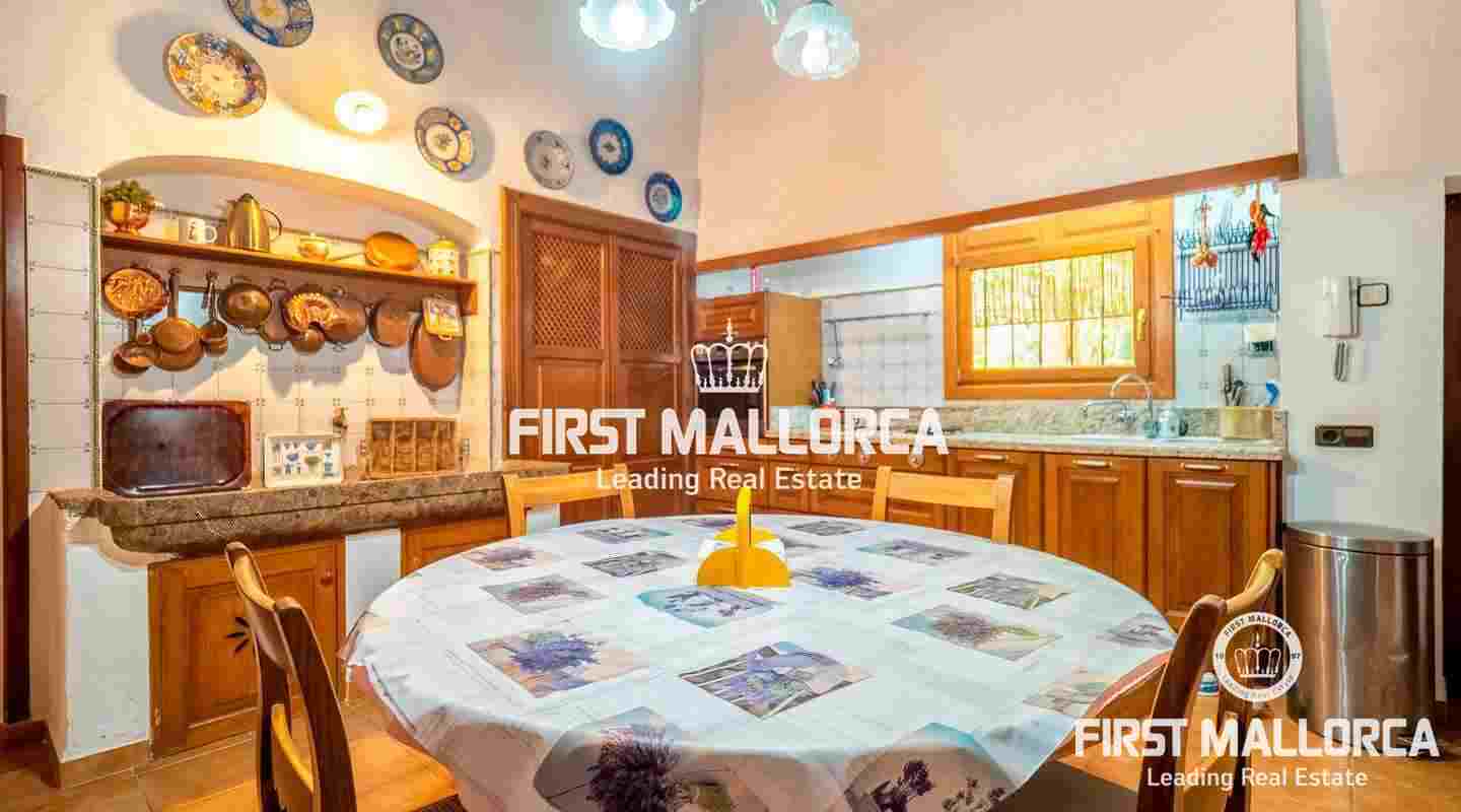 Die Häuser werden durch einen typischen mallorquinischen Kreuzgang betreten. Das Haupthaus verfügt über einen Eingangsbereich, eine geräumige Küche, ein Esszimmer, ein großzügiges Wohnzimmer mit Kamin, eine Bibliothek, 4 Schlafzimmer und 3 Badezimmer, 2 davon en Suite. Im Untergeschoss gibt es einen Weinkeller, mehrere Abstellräume und einen großen Raum mit Zugang zum Garten sowie zum Pool. Das Haus ist mit Ölzentralheizung ausgestattet.