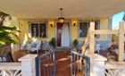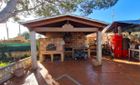 Die Immobilie bietet gute Abstellmöglichkeiten, mehrere liebevoll gestaltete Ruhebereiche, eine Fläche ideal für den Anbau sowie einen großen Pool mit Bar, umgeben von Palmen, und einen gemauerten BBQ-Bereich.