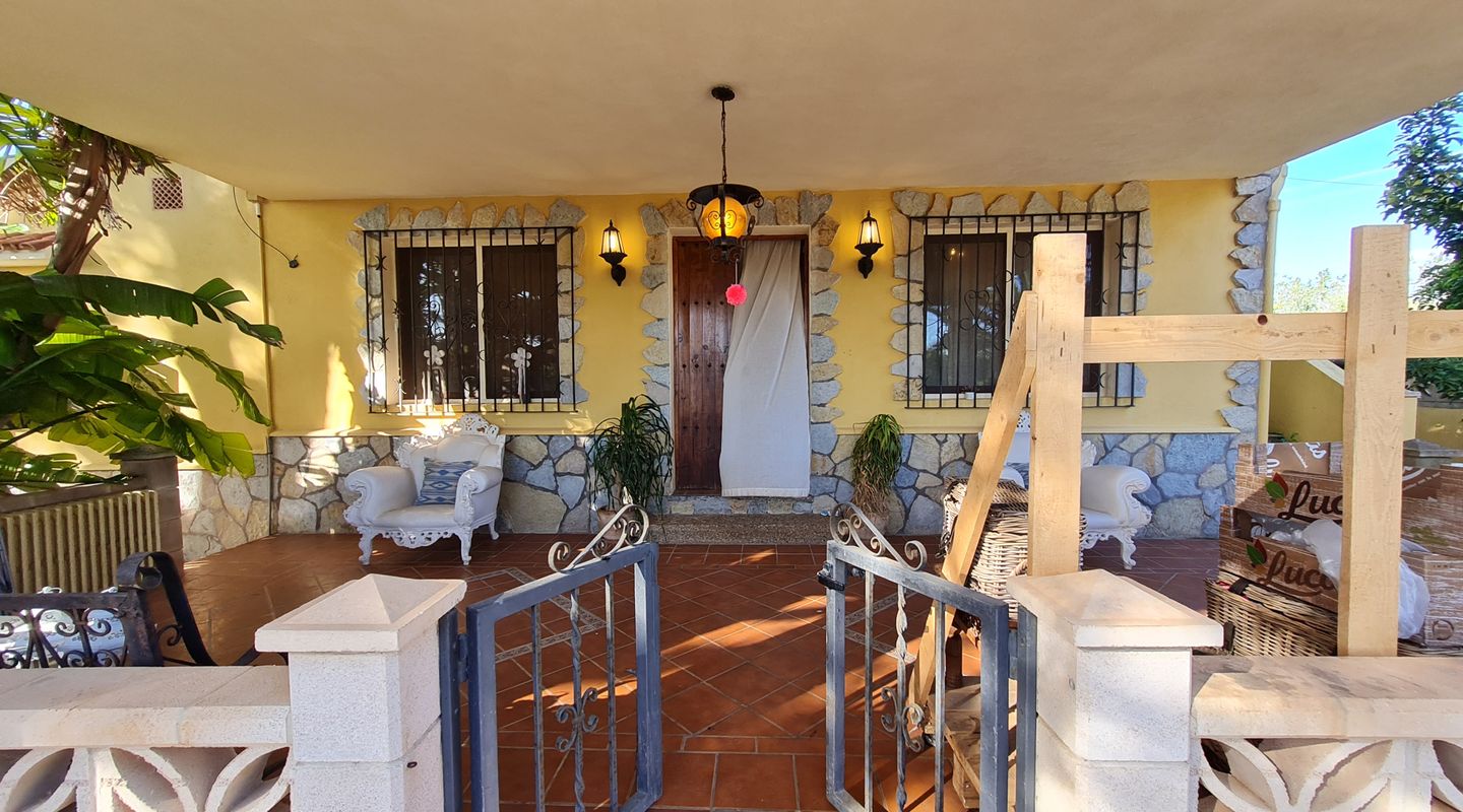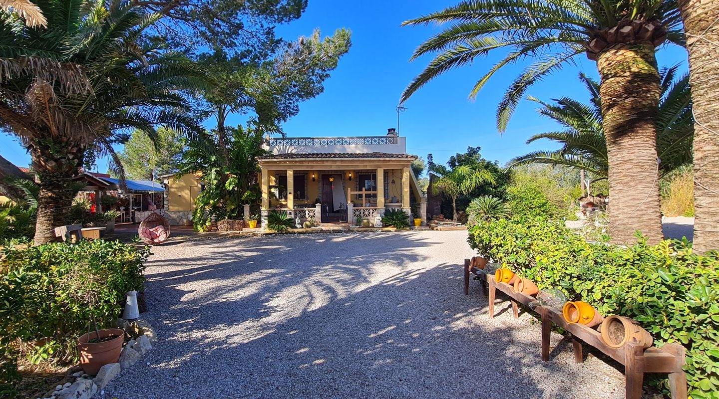 Dieses schöne Landhaus liegt auf einem herrlichen Grundstück mit Bergblick, umgeben von verschiedenen Obstbäumen und einem gepflegten Palmenhain.
