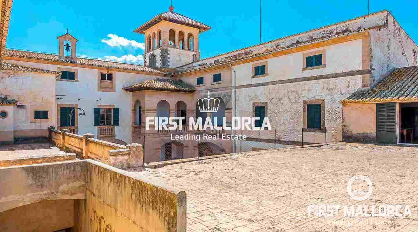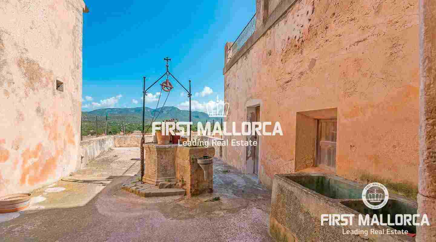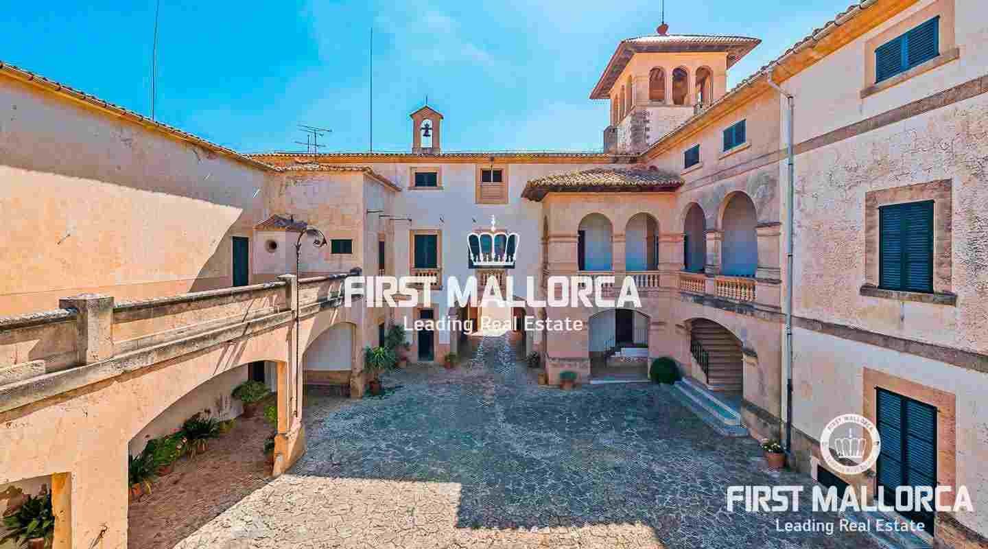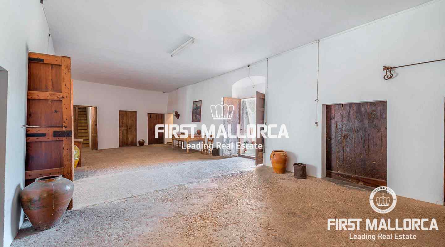 Dieses beeindruckende, historische Anwesen auf einem 80 ha großen Grundstück im Landesinneren bietet einen spektakulären Panoramablick über das Tramuntana-Gebirge und die Bucht von Palma. Über einen großen Innenhof mit Kapelle gelangt man zum Haupthaus „Casa del Senyor". Es hat 9 Schlafzimmer, 5 Badezimmer, ein Wohnzimmer mit eigener Bibliothek und ein großes Esszimmer mit Zugang zur Küche. Im ebenso zum 3000 m² großen Anwesen gehörigen Haus „Casa de l´Amo" gibt es 3 Schlafzimmer, ein Badezimmer und eine weitere Küche. Es besteht die Möglichkeit, einen Brunnen und einen Pool anzulegen. Auf den weitläufigen Ackerflächen wird derzeit Weizen, Gerste und Hafer angebaut. Zudem gibt es 25.000 Mandel- und Johannisbrotbäume.