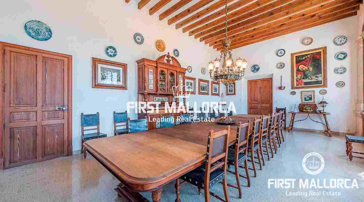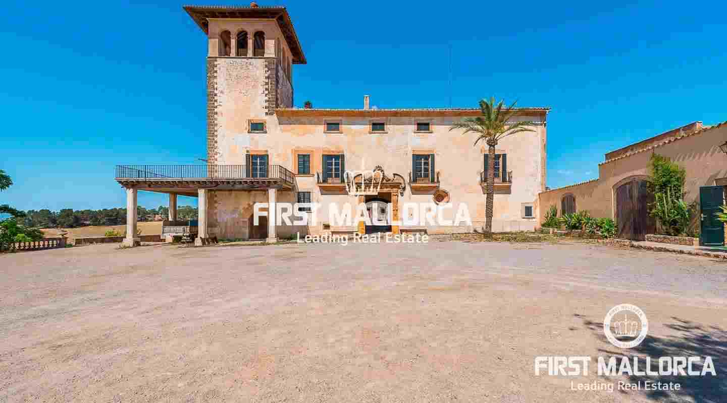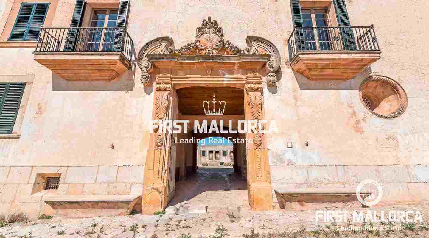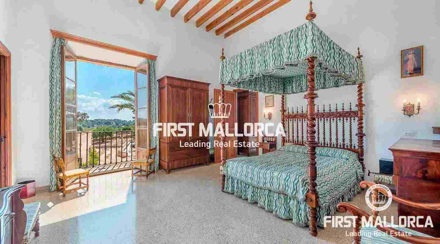 Dieses beeindruckende, historische Anwesen auf einem 80 ha großen Grundstück im Landesinneren bietet einen spektakulären Panoramablick über das Tramuntana-Gebirge und die Bucht von Palma. Über einen großen Innenhof mit Kapelle gelangt man zum Haupthaus „Casa del Senyor". Es hat 9 Schlafzimmer, 5 Badezimmer, ein Wohnzimmer mit eigener Bibliothek und ein großes Esszimmer mit Zugang zur Küche. Im ebenso zum 3000 m² großen Anwesen gehörigen Haus „Casa de l´Amo" gibt es 3 Schlafzimmer, ein Badezimmer und eine weitere Küche. Es besteht die Möglichkeit, einen Brunnen und einen Pool anzulegen. Auf den weitläufigen Ackerflächen wird derzeit Weizen, Gerste und Hafer angebaut. Zudem gibt es 25.000 Mandel- und Johannisbrotbäume.