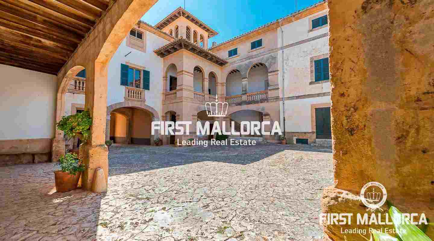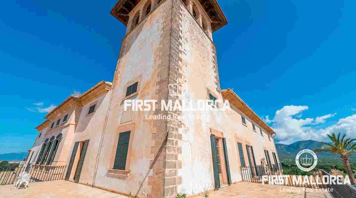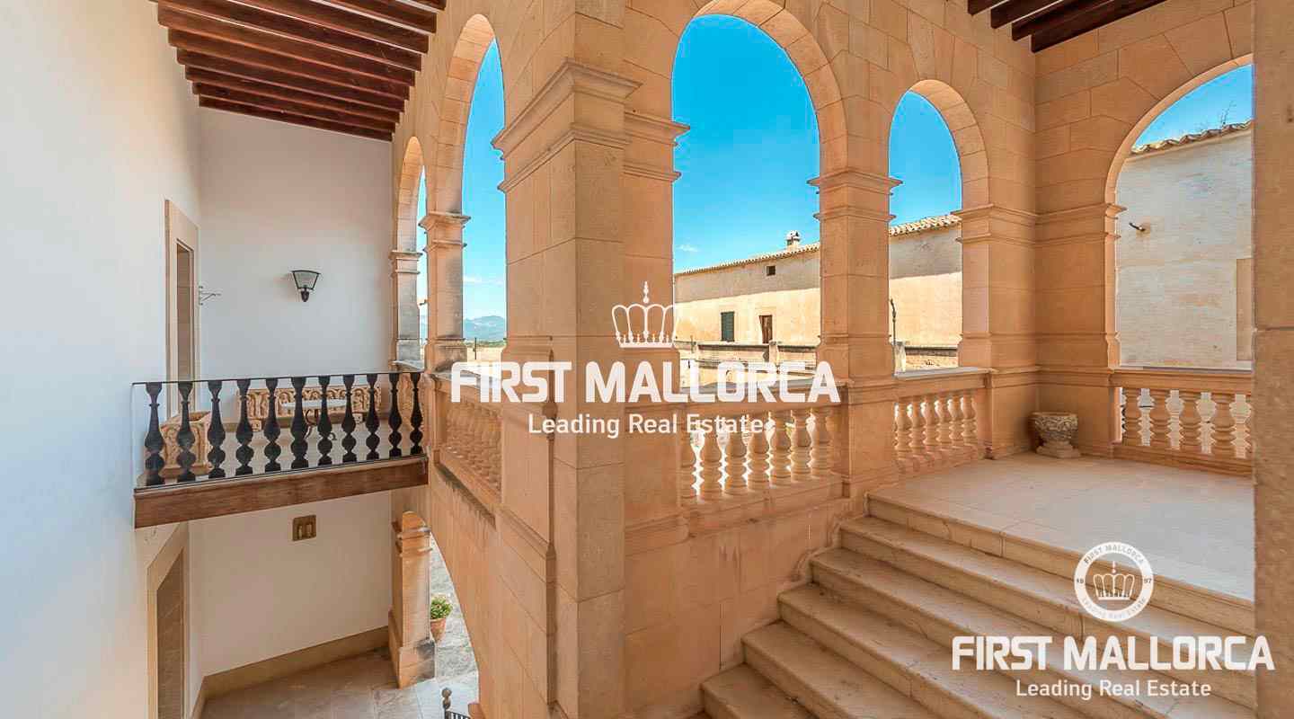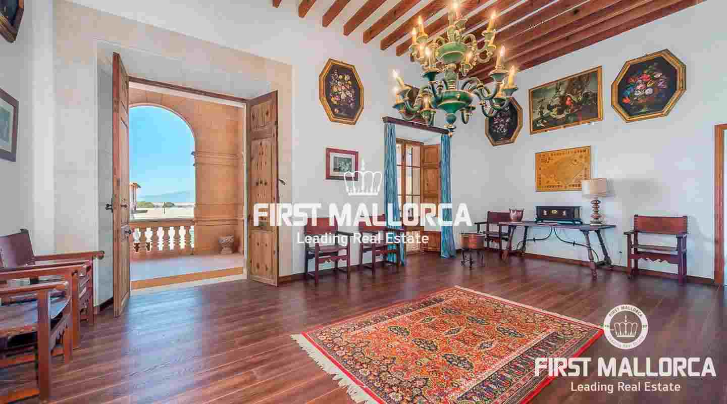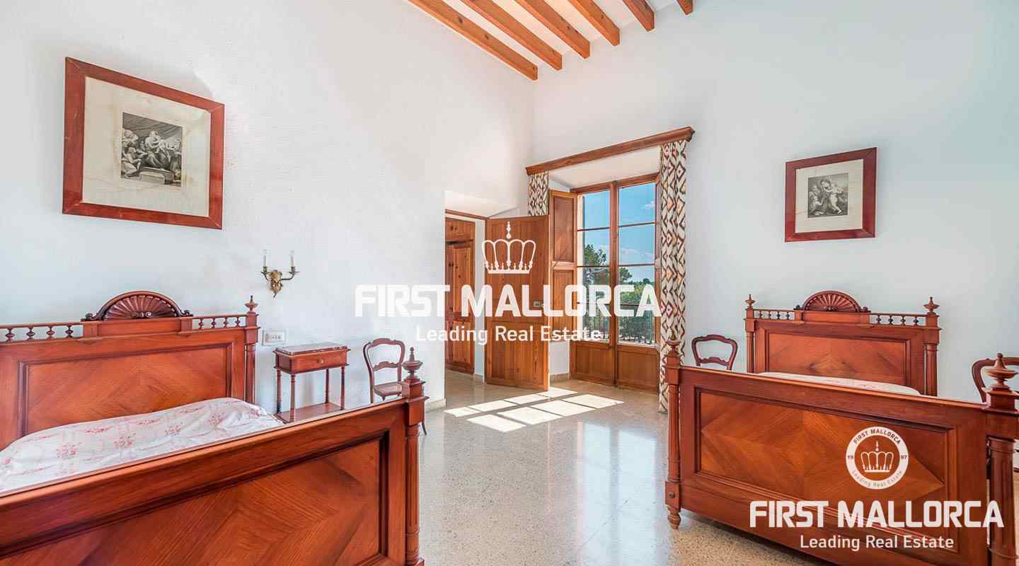 Dieses beeindruckende, historische Anwesen auf einem 80 ha großen Grundstück im Landesinneren bietet einen spektakulären Panoramablick über das Tramuntana-Gebirge und die Bucht von Palma. Über einen großen Innenhof mit Kapelle gelangt man zum Haupthaus „Casa del Senyor". Es hat 9 Schlafzimmer, 5 Badezimmer, ein Wohnzimmer mit eigener Bibliothek und ein großes Esszimmer mit Zugang zur Küche. Im ebenso zum 3000 m² großen Anwesen gehörigen Haus „Casa de l´Amo" gibt es 3 Schlafzimmer, ein Badezimmer und eine weitere Küche. Es besteht die Möglichkeit, einen Brunnen und einen Pool anzulegen. Auf den weitläufigen Ackerflächen wird derzeit Weizen, Gerste und Hafer angebaut. Zudem gibt es 25.000 Mandel- und Johannisbrotbäume.