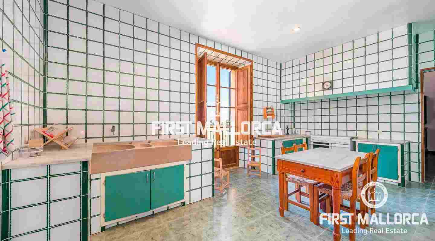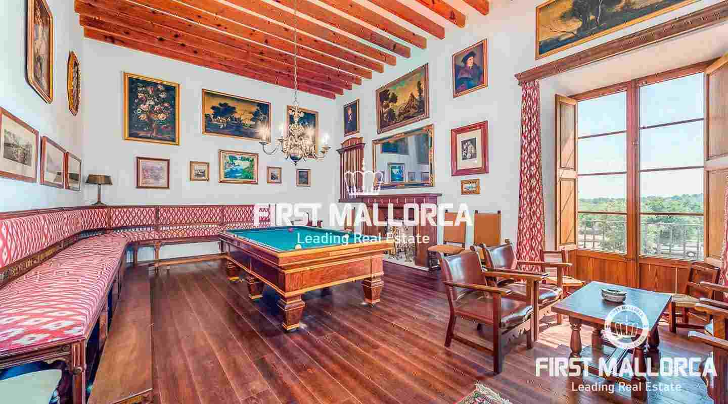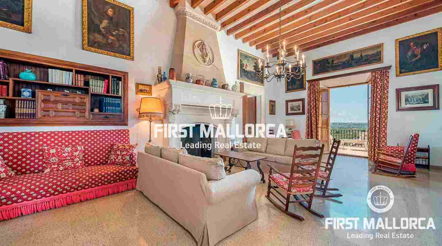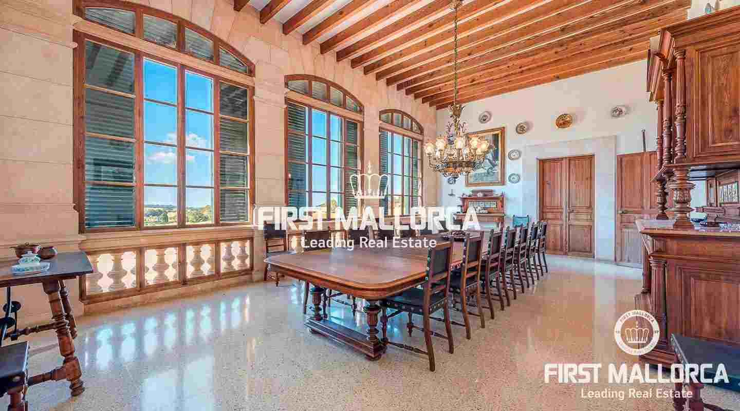 Dieses beeindruckende, historische Anwesen auf einem 80 ha großen Grundstück im Landesinneren bietet einen spektakulären Panoramablick über das Tramuntana-Gebirge und die Bucht von Palma. Über einen großen Innenhof mit Kapelle gelangt man zum Haupthaus „Casa del Senyor". Es hat 9 Schlafzimmer, 5 Badezimmer, ein Wohnzimmer mit eigener Bibliothek und ein großes Esszimmer mit Zugang zur Küche. Im ebenso zum 3000 m² großen Anwesen gehörigen Haus „Casa de l´Amo" gibt es 3 Schlafzimmer, ein Badezimmer und eine weitere Küche. Es besteht die Möglichkeit, einen Brunnen und einen Pool anzulegen. Auf den weitläufigen Ackerflächen wird derzeit Weizen, Gerste und Hafer angebaut. Zudem gibt es 25.000 Mandel- und Johannisbrotbäume.