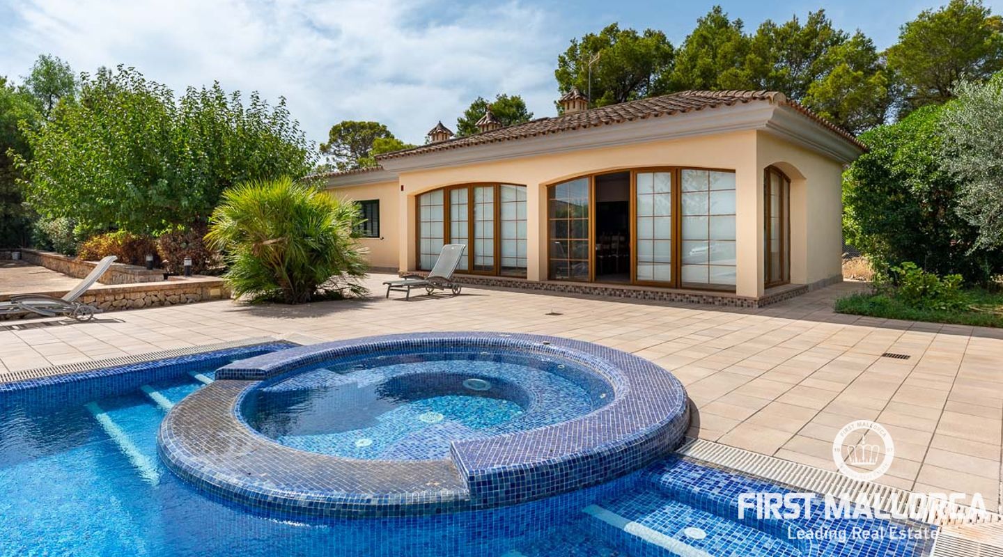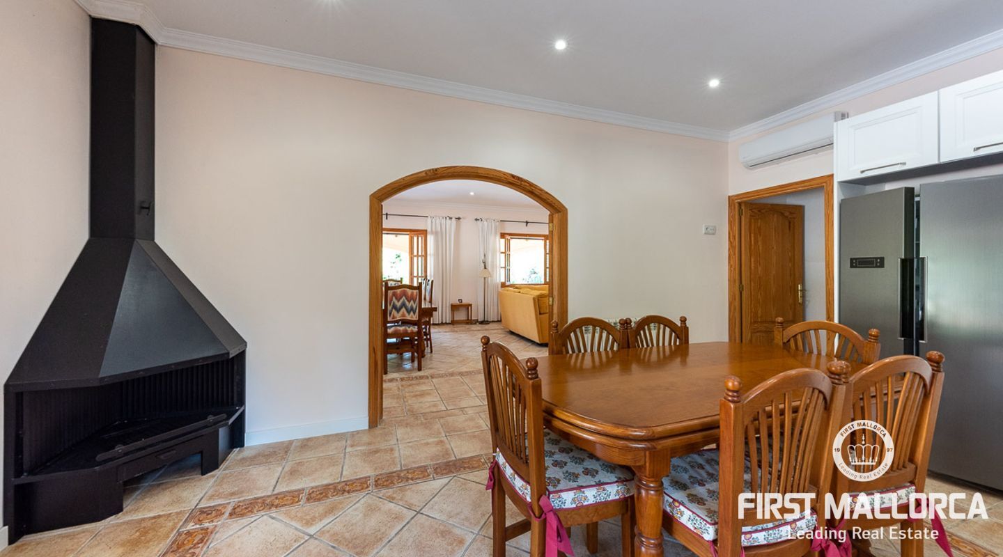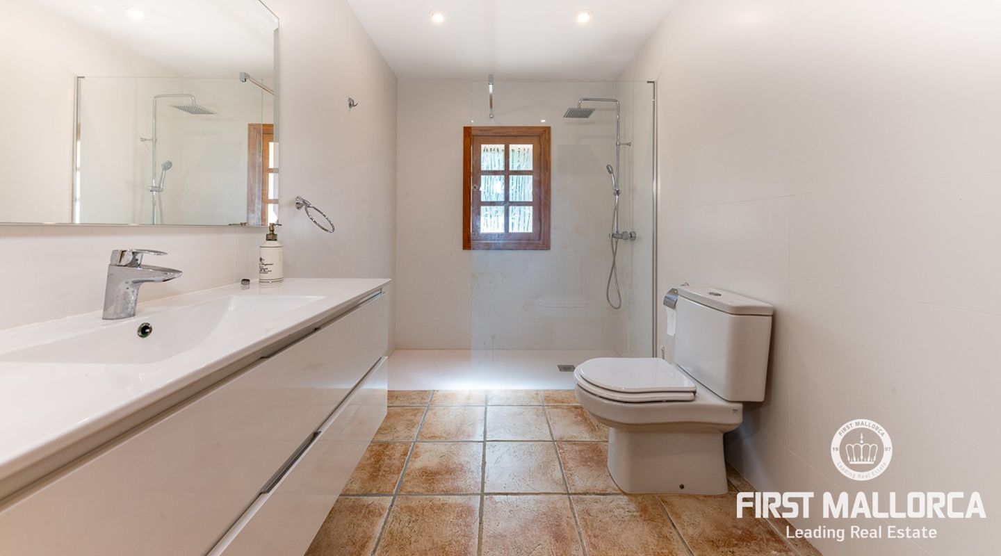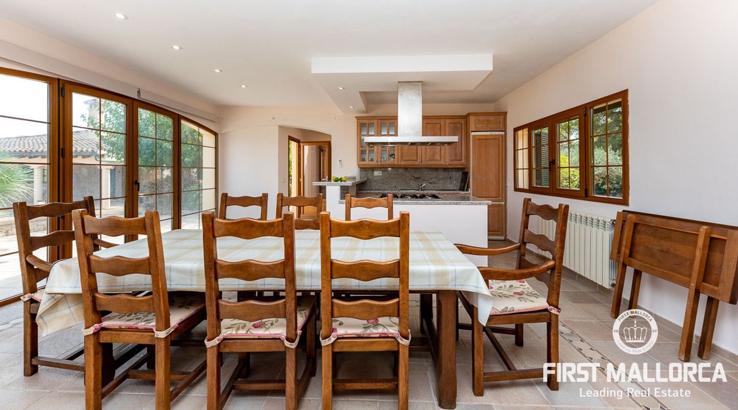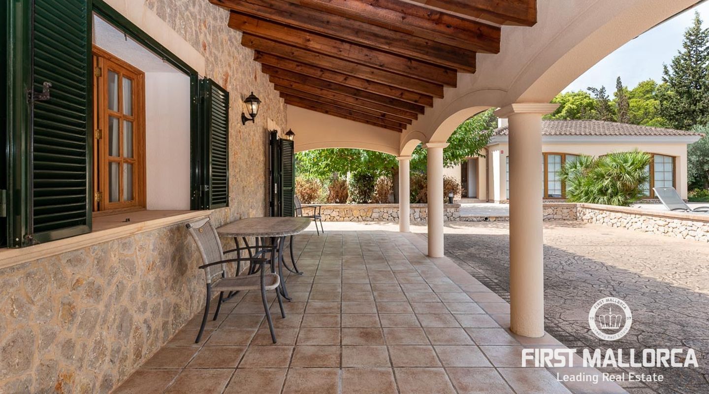 Dieses schöne Landgut ist auf einem Grundstück von 15000m2 mit einem großen gepflegten Garten, einem Ruhebereich mit Schwimmbad und Jacuzzi, einem Haupthaus und einem Gästehaus gebaut. Die Gesamtfläche des Grundstücks ist etwa 300m2. Das Haupthaus ist im mediterranen Stil erbaut und besteht aus einem geräumigen Wohn-Esszimmer mit Zugang zur überdachten Terrasse und zum Poolbereich, einer separaten voll ausgestatteten Küche, 3 Schlafzimmern und einem Badezimmer. Es gibt auch einen Keller, der als Weinkeller und/oder Lagerraum genutzt werden könnte. Das Gästehaus besteht aus einem Wohnzimmer mit Panoramafenstern, einer offenen Küche, einem Schlafzimmer und einem Bad mit Dusche. Der Außenbereich verfügt über einen gesalzenen Swimmingpool mit Selbstreinigungssystem und Jacuzzi, einen überdachten Parkplatz für zwei Autos und einen großen Obstgarten mit automatischem Bewässerungssystem. Das Haupthaus und das Gästehaus sind mit einer Öl-Zentralheizung und Klimaanlagen in allen Räumen ausgestattet. Es gibt Sonnenkollektoren, einen Brunnen und automatische Eingangstore. Das Haus befindet sich in einer ruhigen Wohngegend und bietet maximale Privatsphäre und eine privilegierte Nachbarschaft. Die internationale Schule "The Academy International School" befindet sich in der Nähe. Die Stadt Palma und die wichtigsten Einkaufs- und Freizeitzentren sind in 15 Minuten mit dem Auto zu erreichen.
