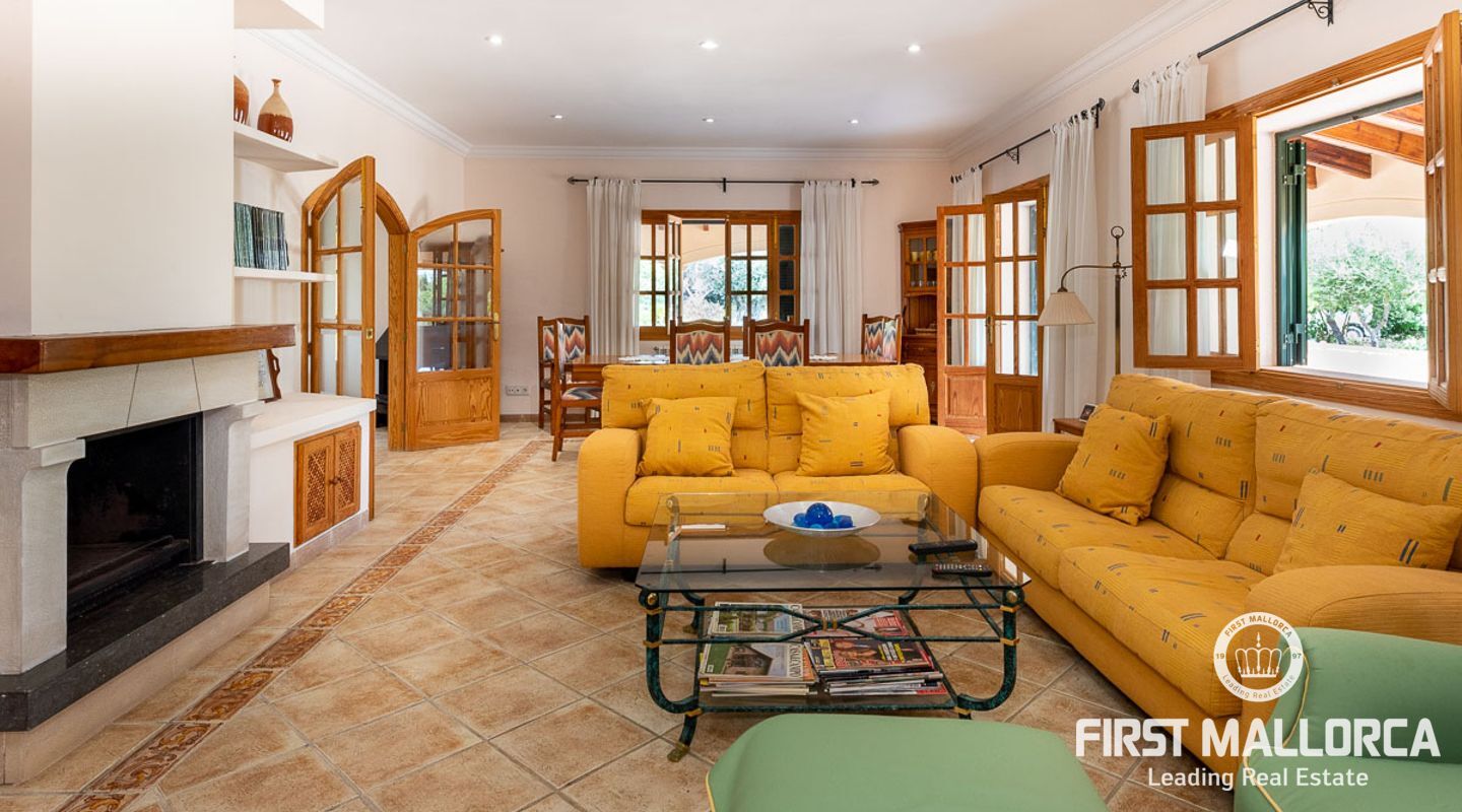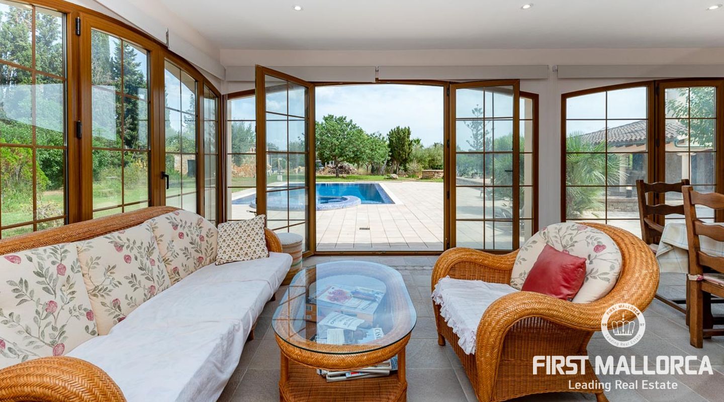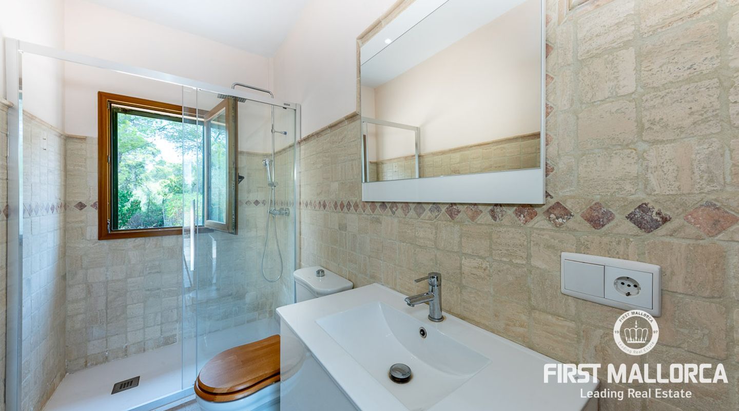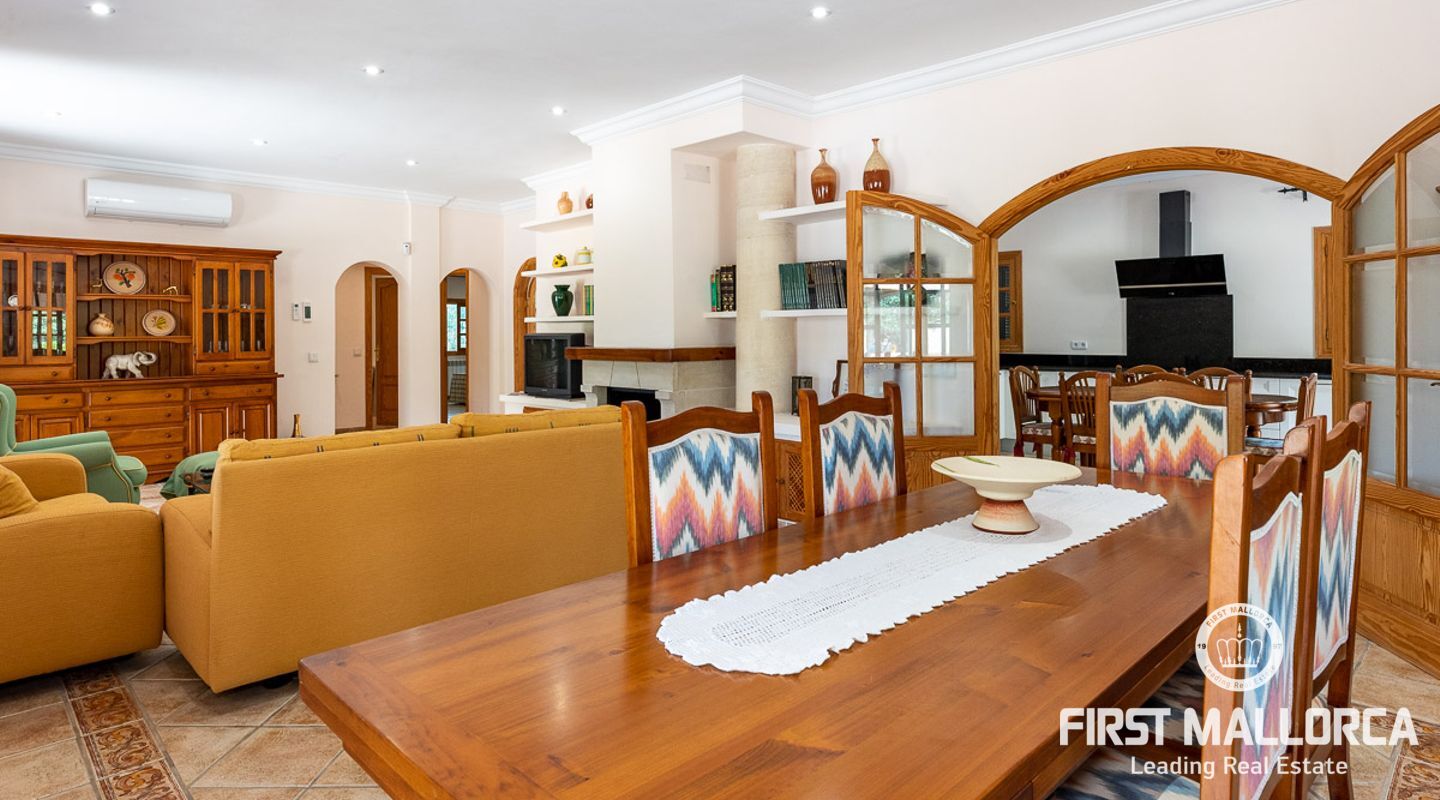 Dieses schöne Landgut ist auf einem Grundstück von 15000m2 mit einem großen gepflegten Garten, einem Ruhebereich mit Schwimmbad und Jacuzzi, einem Haupthaus und einem Gästehaus gebaut. Die Gesamtfläche des Grundstücks ist etwa 300m2. Das Haupthaus ist im mediterranen Stil erbaut und besteht aus einem geräumigen Wohn-Esszimmer mit Zugang zur überdachten Terrasse und zum Poolbereich, einer separaten voll ausgestatteten Küche, 3 Schlafzimmern und einem Badezimmer. Es gibt auch einen Keller, der als Weinkeller und/oder Lagerraum genutzt werden könnte. Das Gästehaus besteht aus einem Wohnzimmer mit Panoramafenstern, einer offenen Küche, einem Schlafzimmer und einem Bad mit Dusche. Der Außenbereich verfügt über einen gesalzenen Swimmingpool mit Selbstreinigungssystem und Jacuzzi, einen überdachten Parkplatz für zwei Autos und einen großen Obstgarten mit automatischem Bewässerungssystem. Das Haupthaus und das Gästehaus sind mit einer Öl-Zentralheizung und Klimaanlagen in allen Räumen ausgestattet. Es gibt Sonnenkollektoren, einen Brunnen und automatische Eingangstore. Das Haus befindet sich in einer ruhigen Wohngegend und bietet maximale Privatsphäre und eine privilegierte Nachbarschaft. Die internationale Schule "The Academy International School" befindet sich in der Nähe. Die Stadt Palma und die wichtigsten Einkaufs- und Freizeitzentren sind in 15 Minuten mit dem Auto zu erreichen.
