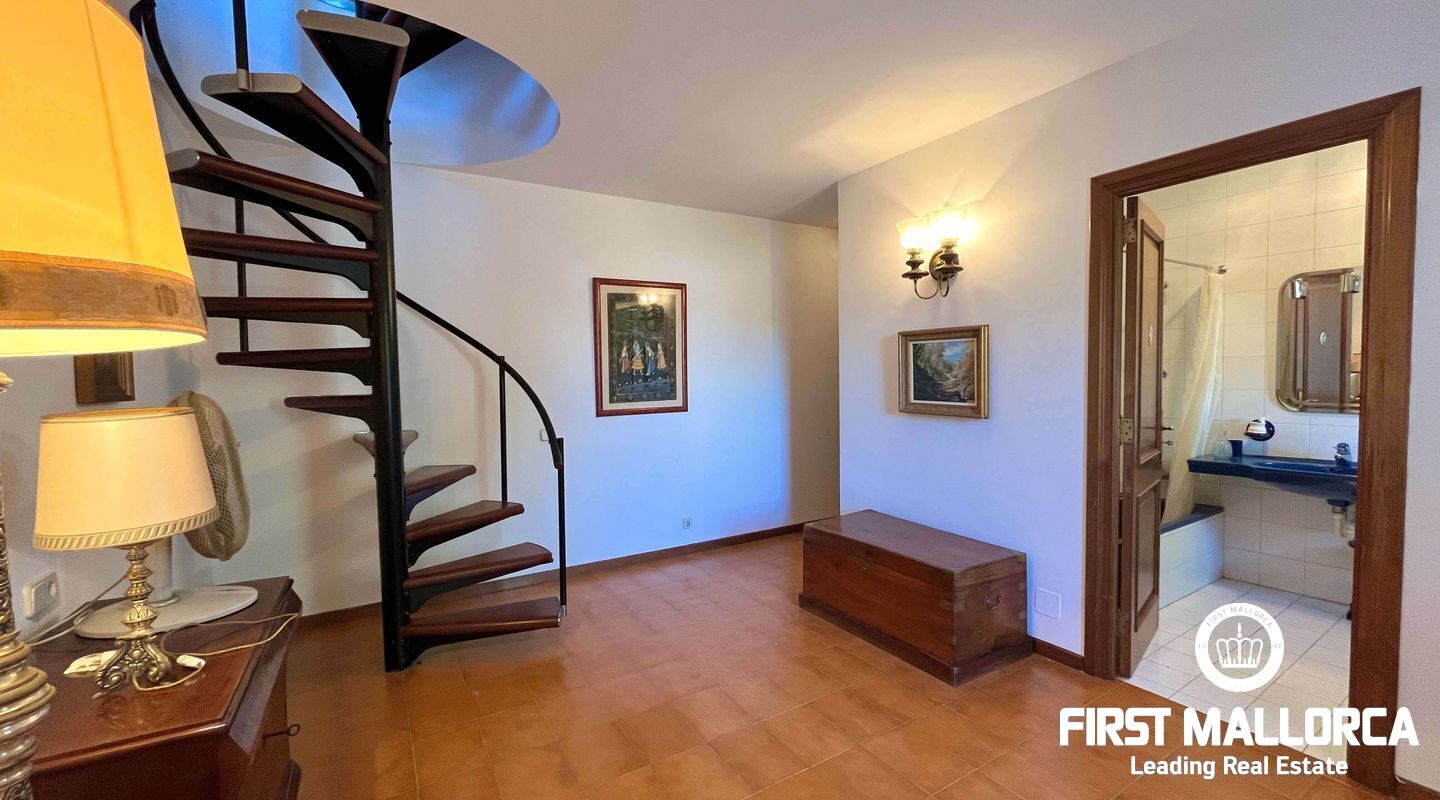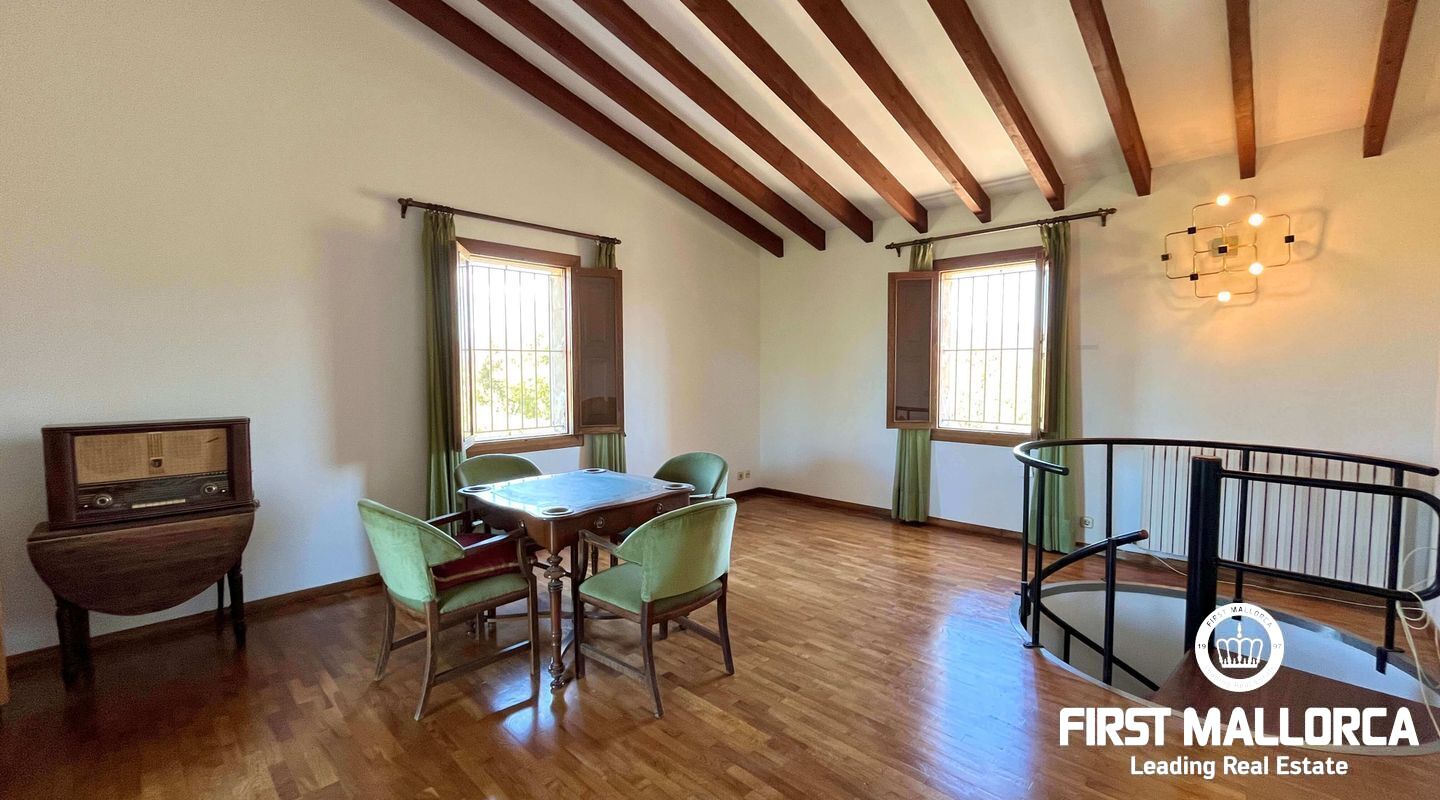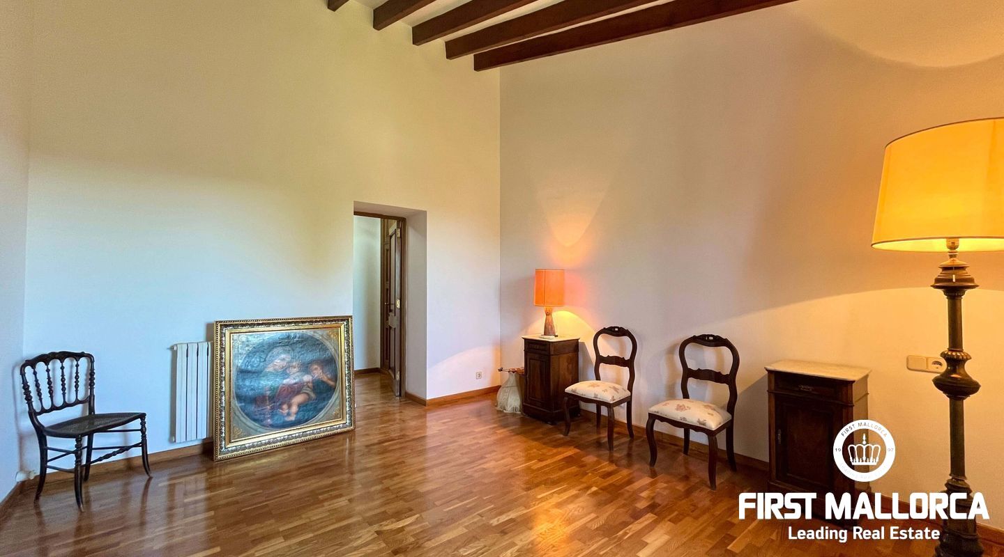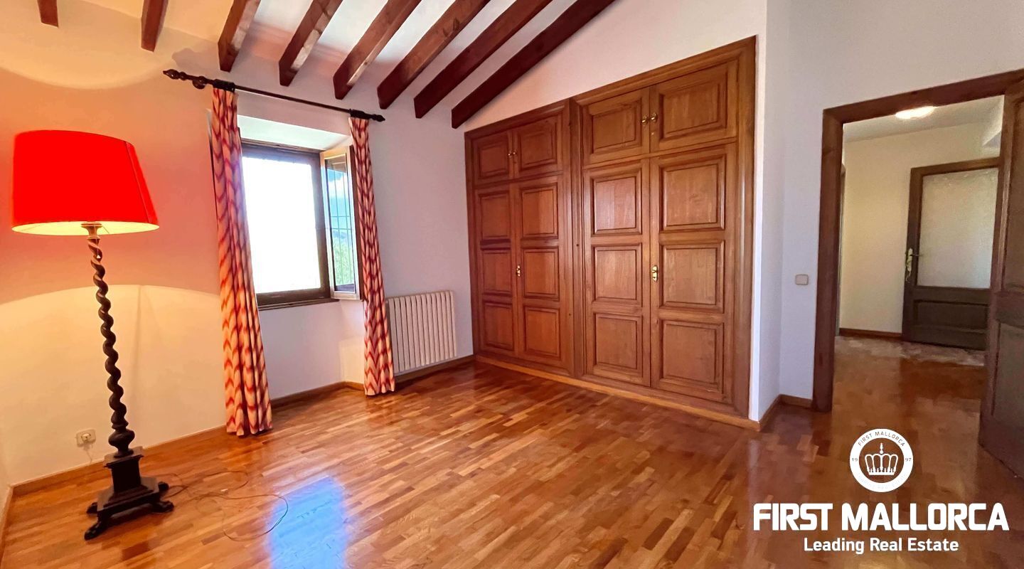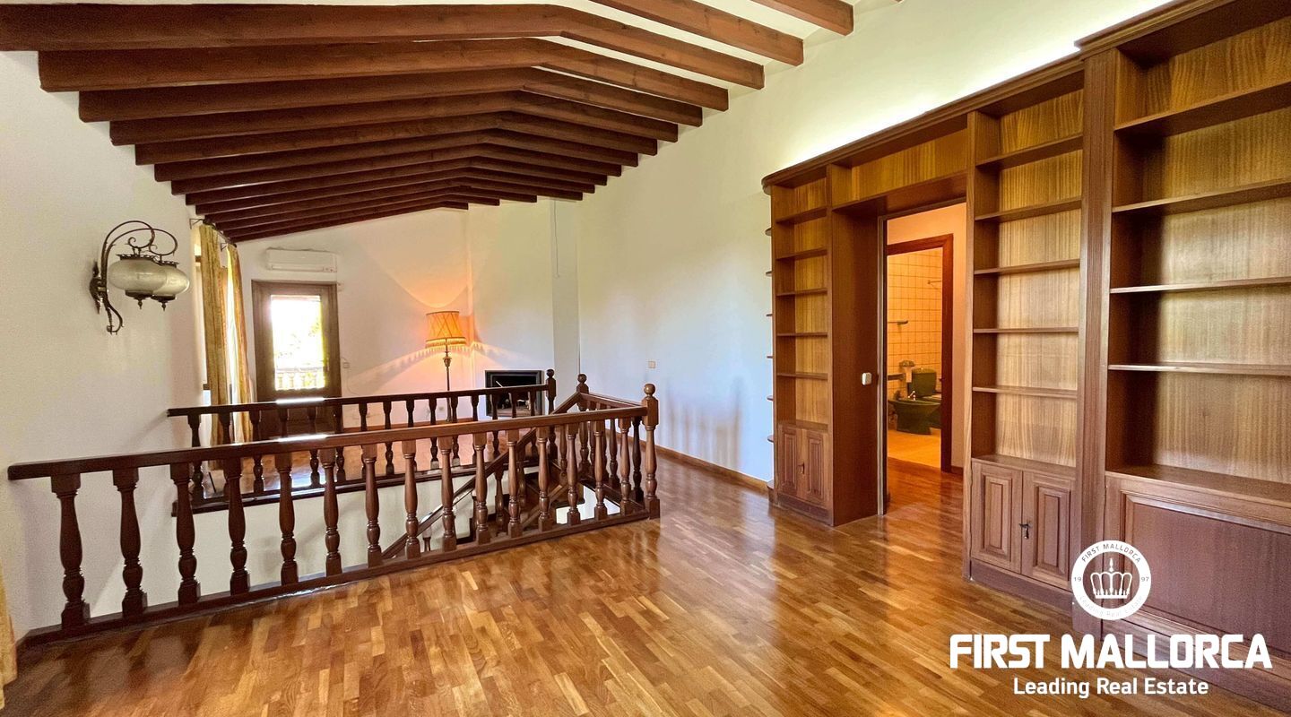 Der erste Stock beherbergt 3 weitere Schlafzimmer, von denen 2 ein Badezimmer teilen und das dritte ein en-suite Badezimmer hat. Alle Schlafzimmer sind mit Einbauschränken ausgestattet. Hohe Decken mit Holzbalken unterstreichen den traditionellen mallorquinischen Charme.