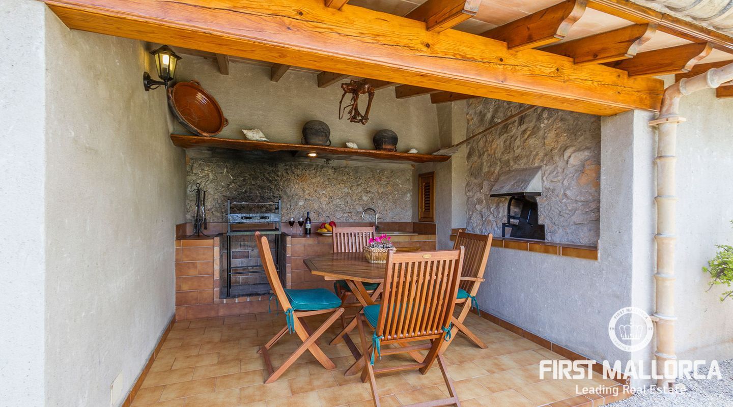 Es gibt einen gemauerten Grillplatz mit Esstisch, ideal für Mahlzeiten im Freien. Dieser Bereich hat auch ein Duschbad. Die Villa hat auch eine große überdachte Terrasse am Eingang.