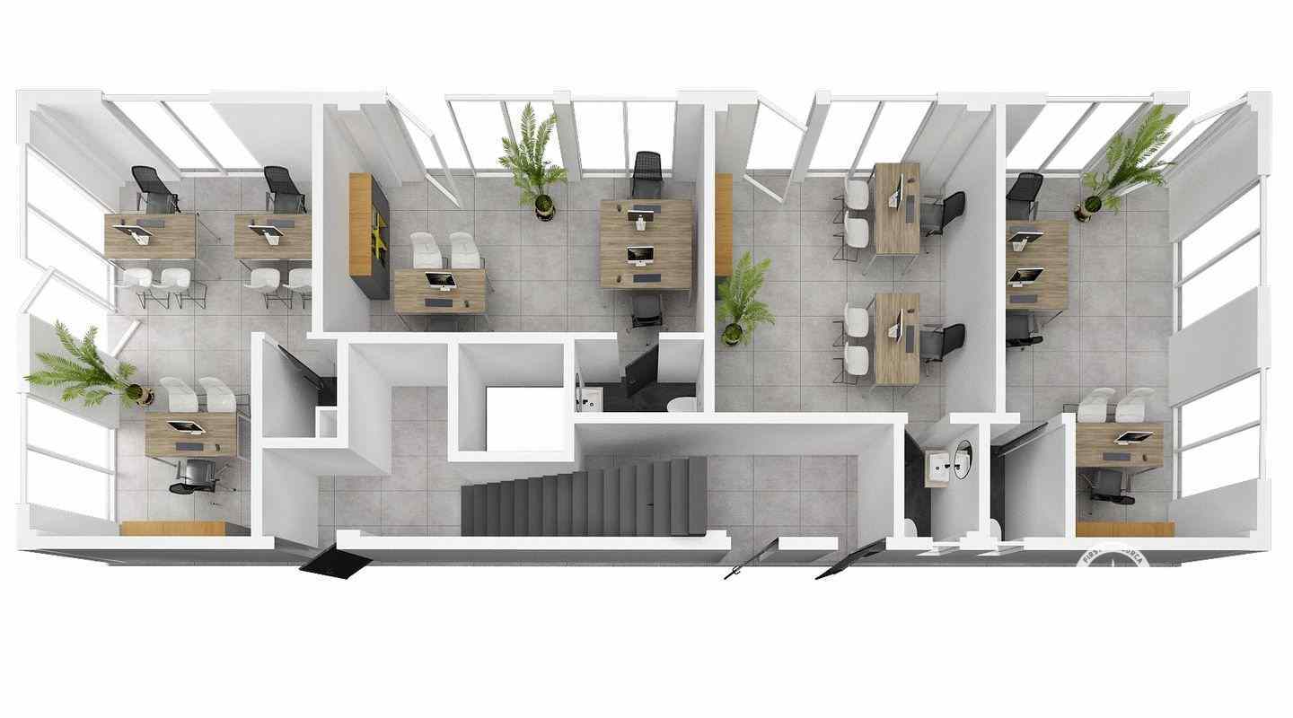 In diesem 2021 errichtet Gebäude gibt es im Erdgeschoss insgesamt vier Büroeinheiten mit einer Größe zwischen 20 m2 und 25 m2. Jede Büroeinheit verfügt über eine Gästetoilette. Das Gebäude verfügt über vier Etagen und beherbergt neben den Büros im Erdgeschnoss noch vier Wohnungen, davon ein Penthouse mit großer Dachterrasse. Die Wohnungen sind zwischen 69 m2 und 127 m2 groß, verfügen alle über einen Balkon bzw. Dachterrasse, Klimaanlage warm/kalt und Küche. Der Strand von Arenal sowie der Yachthafen, diverse Geschäfte des täglichen Bedarfs und eine Vielzahl von Bars/Restaurants sind fußläufig zu erreichen.