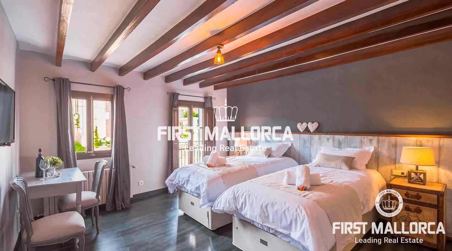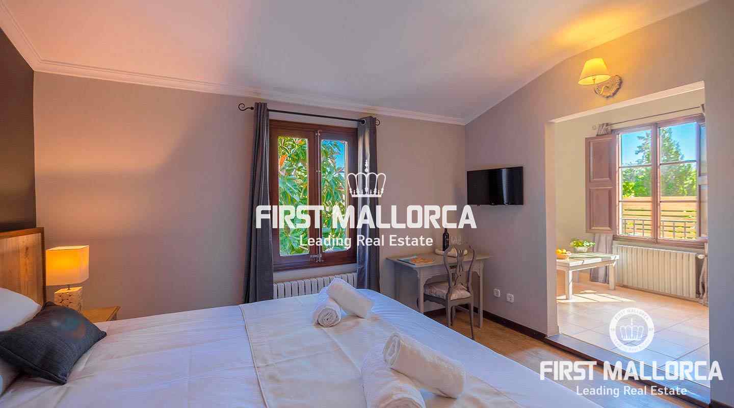 Die aktuelle Raumaufteilung umfasst sieben Schlafzimmer, davon fünf Gästesuites. Zum Anwesen gehört außerdem ein voll ausgestattetes separates Apartment, ideal für die Eigentümer. Der Außenbereich ist eine grüne Oase inmitten der Stadt: ein üppiger mediterraner Garten mit Swimmingpool und privilegiertem Blick auf Castell d'Alaró. Ausgestattet mit allen modernen Annehmlichkeiten (Klimaanlage, Kamine und Fahrradgarage) ist es die perfekte Investition – sowohl für Kapitalanleger als auch für alle, die ein luxuriöses Zuhause in der Serra de Tramuntana suchen.