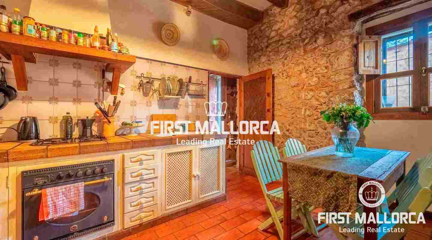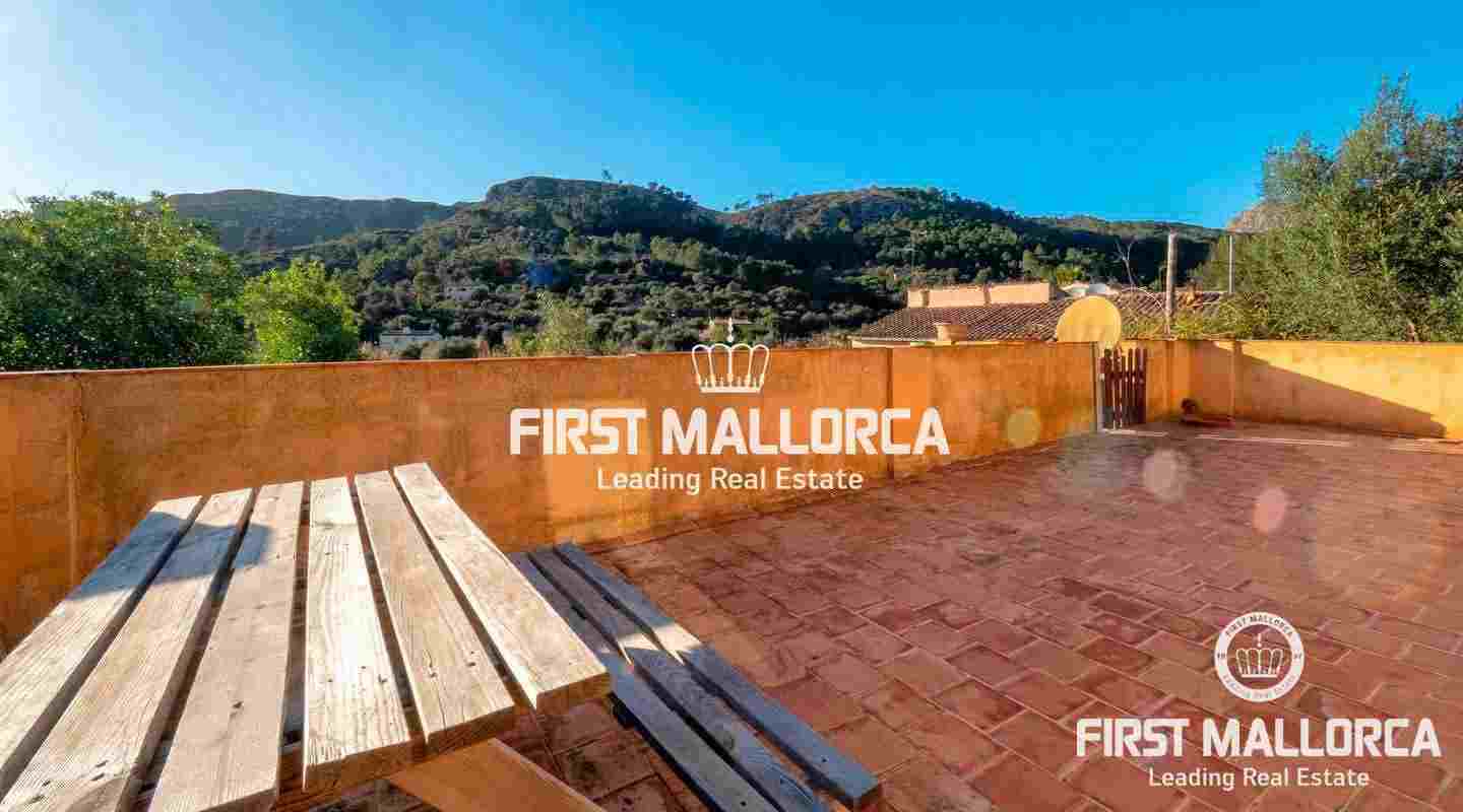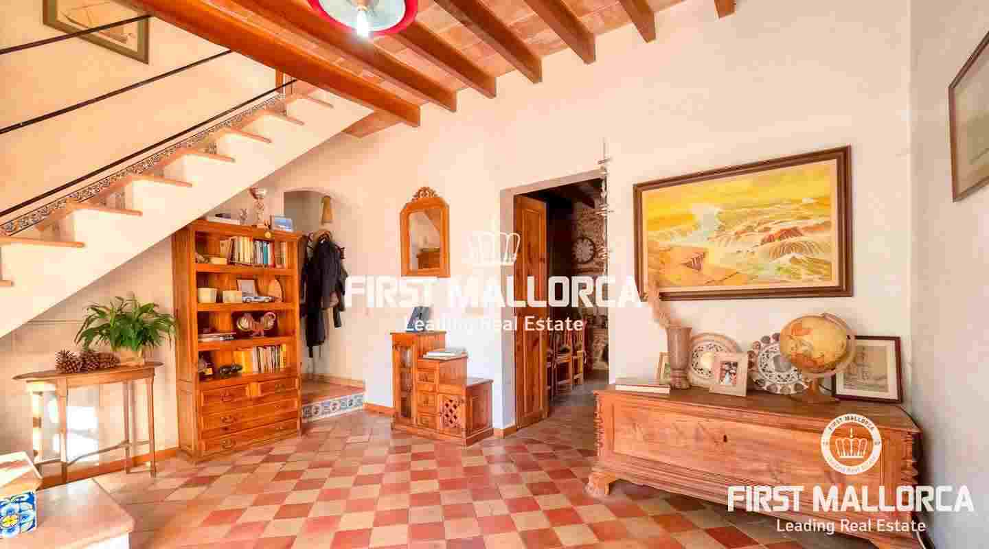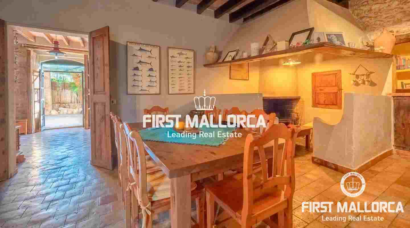 Im Erdgeschoss verfügt die Immobilie über ein Esszimmer mit einem alten Kamin, eine Küche, eine Speisekammer, ein Wohnzimmer ebenfalls mit Kamin, ein kleines Schlafzimmer und ein Gäste-WC. Im Obergeschoss liegen ein weiteres Wohnzimmer, 5 Schlafzimmer, 2 Bäder und eine großzügige Terrasse, welche einen herrlichen Blick auf das Tramuntana-Gebirge genießt.