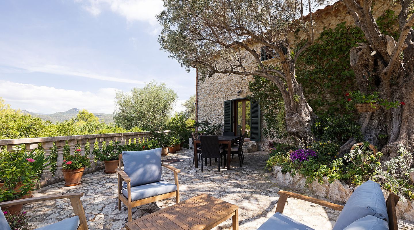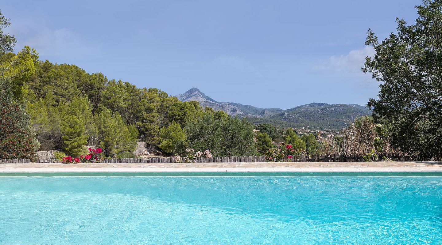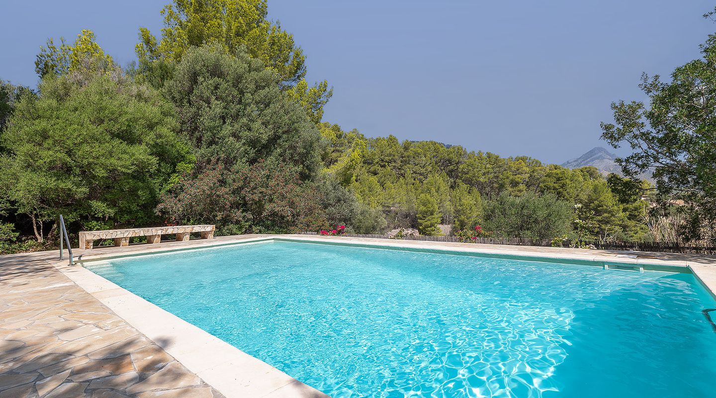 Der große Außenbereich mit Pool, Terrassen und einem Garten mit Oliven- und Mandelbäumen lädt zum Entspannen und Genießen des mediterranen Klimas das ganze Jahr über ein.
