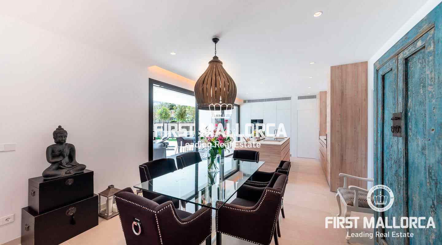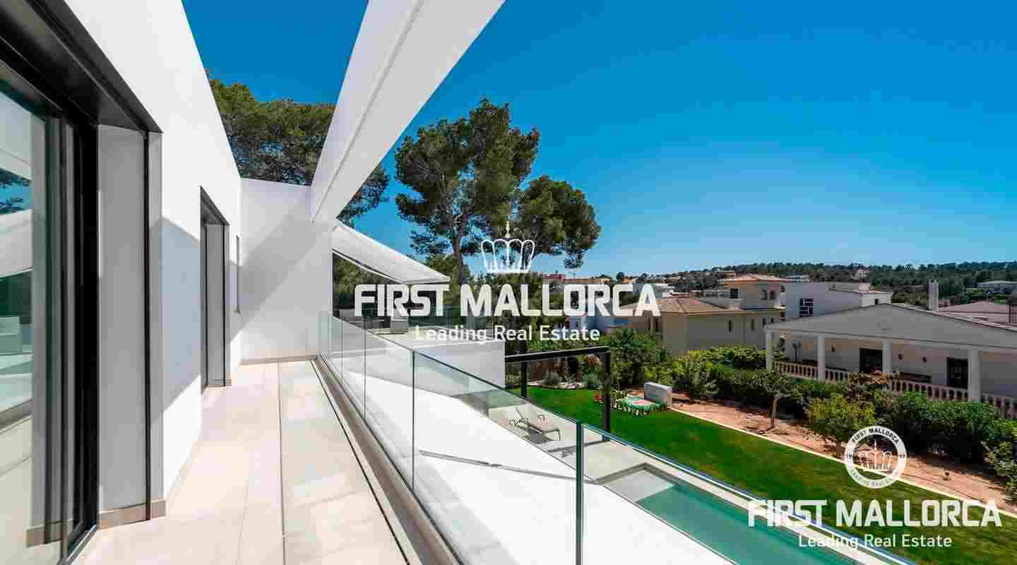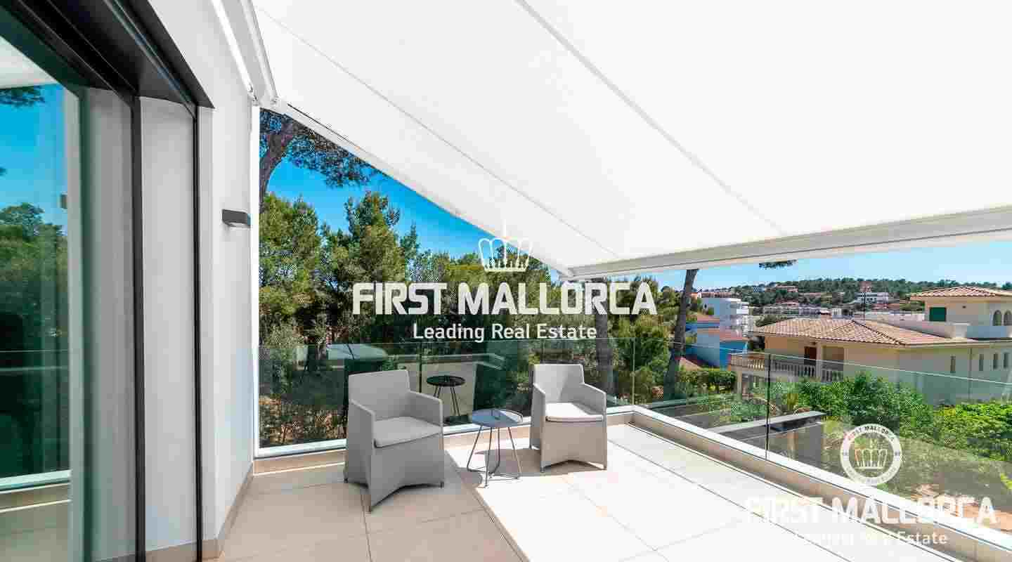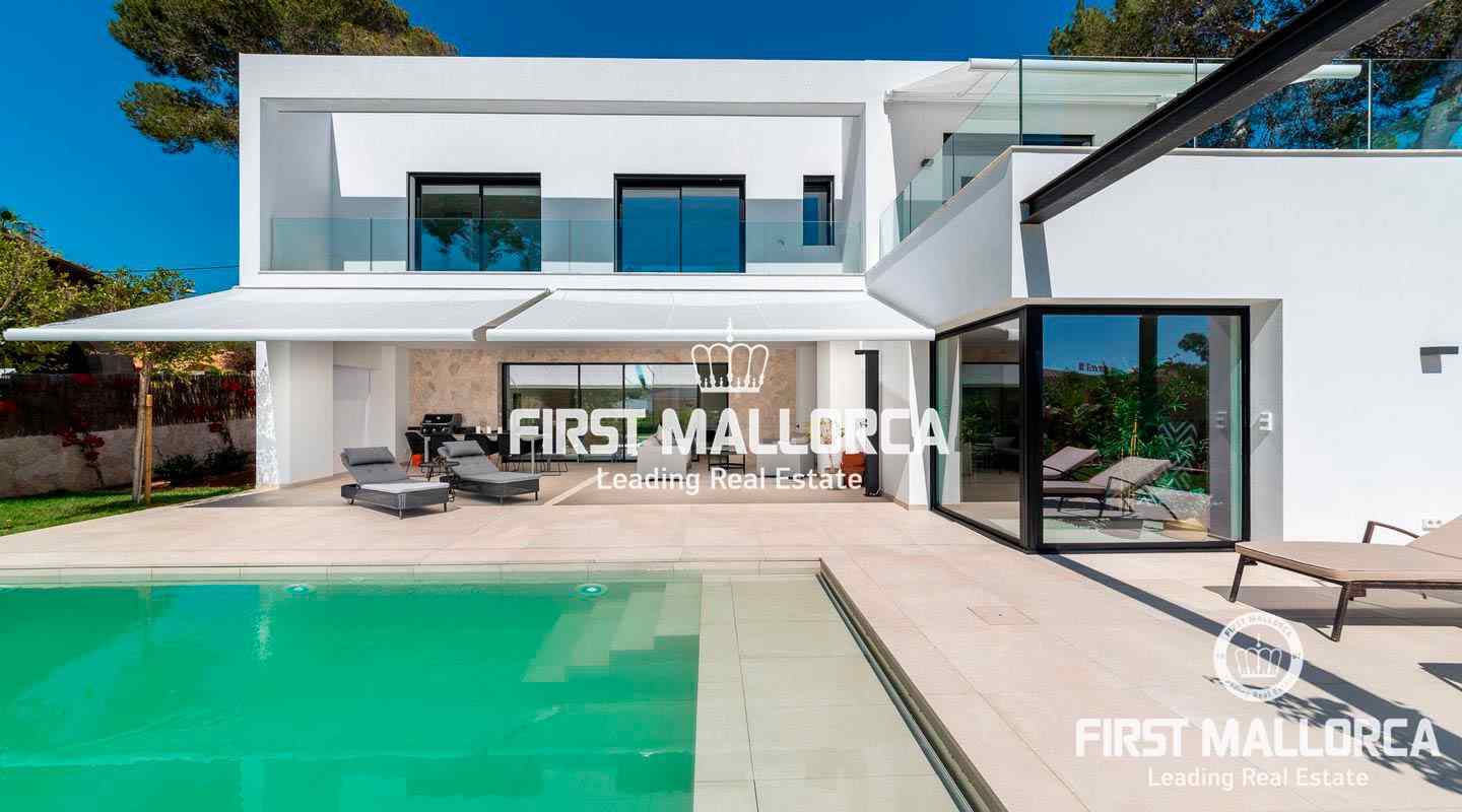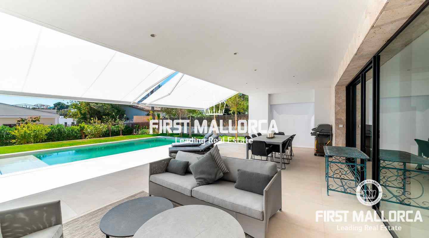 Diese hochwertige Villa wurde vor kurzem fertiggestellt und liegt auf einem flachen Grundstück mit Rasenflächen, umgeben von Lavendelbüschen und Obstbäumen in einem beliebten Wohngebiet von Palmanova. Das Anwesen wurde so geplant, dass das mediterrane Licht optimal genutzt wird und bietet dank der großzügigen Terrasse rund um den Poolbereich die Möglichkeit, Innen- und Außenleben zu kombinieren. Das Erdgeschoss verfügt über ein geräumiges, offenes Wohn-Esszimmer mit einer modernen, voll ausgestatteten Küche mit direktem Zugang auf die teilweise überdachte Terrasse. Außerdem gibt es auf dieser Etage ein Gästezimmer und ein Badezimmer. In der ersten Etage befindet sich die geräumige Master-Suite mit Bad en suite sowie ein Gästeschlafzimmer und ein Badezimmer. Zusätzlich gibt es in der ersten Etage einen zweiten Wohnbereich, der auch leicht in ein viertes Schlafzimmer umgewandelt werden kann. Palmanova ist bekannt für seine drei Sandstrände, eine hervorragende Auswahl an Restaurants und Cafés an der attraktiven Strandpromenade und seine Nähe zu Palma, nur etwa 10 Minuten mit dem Auto entfernt.