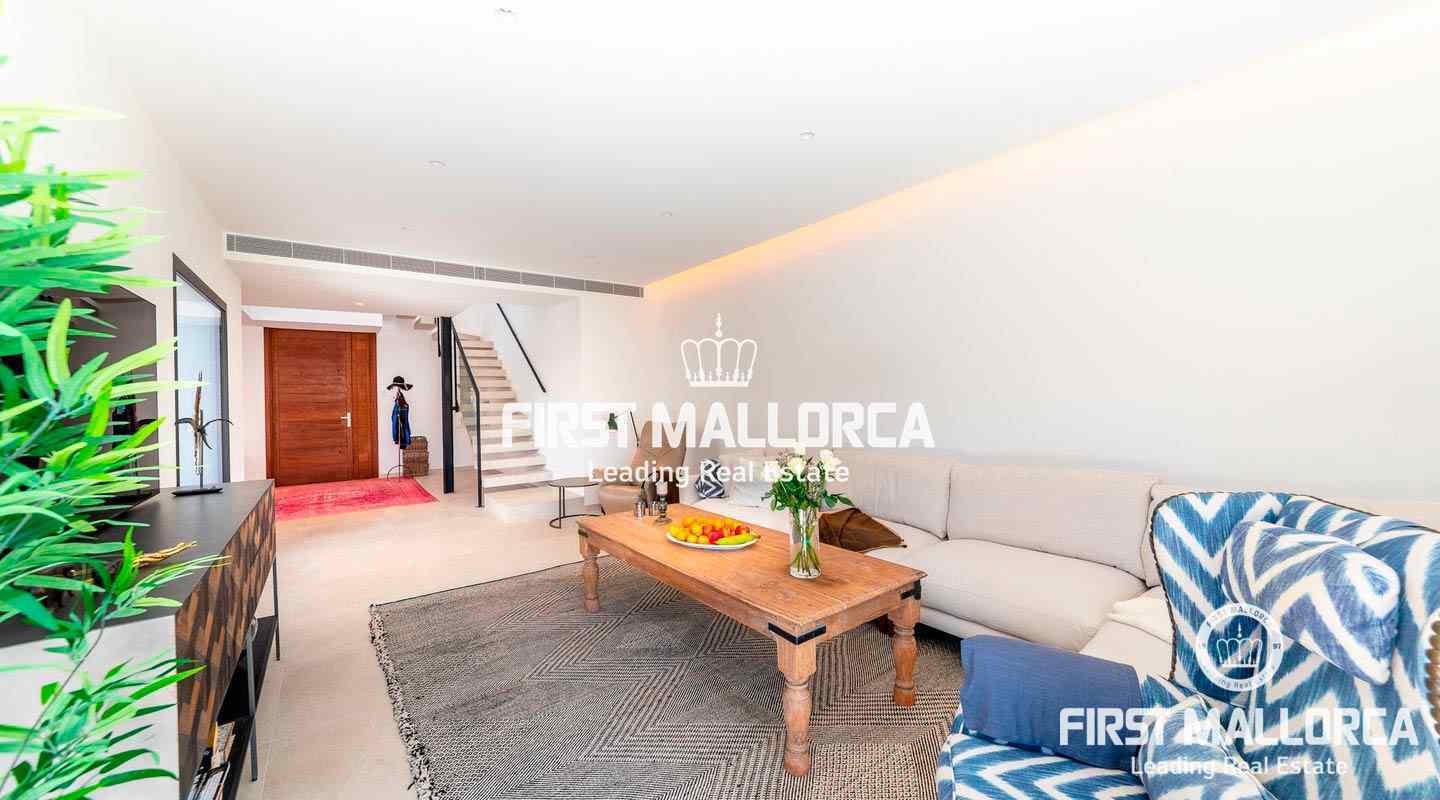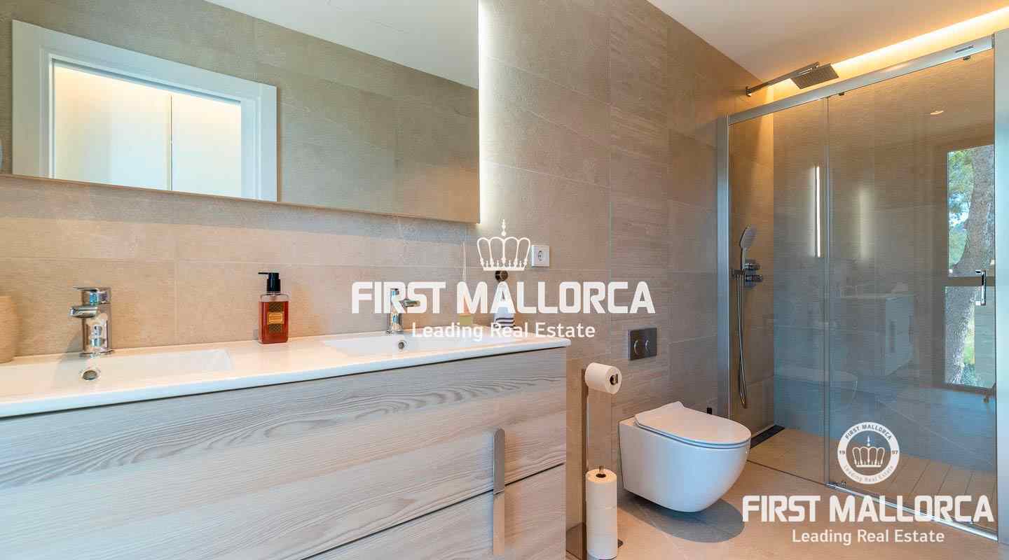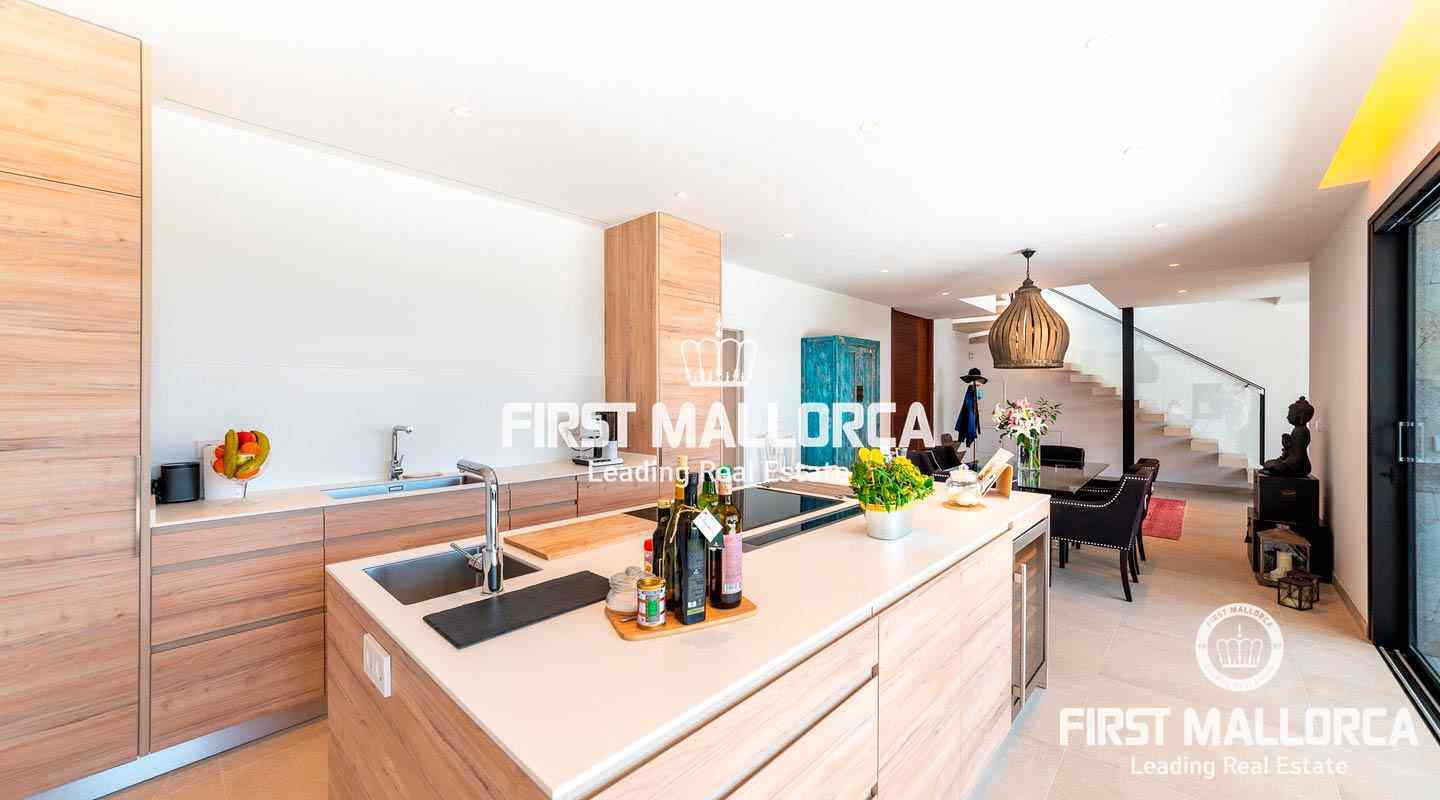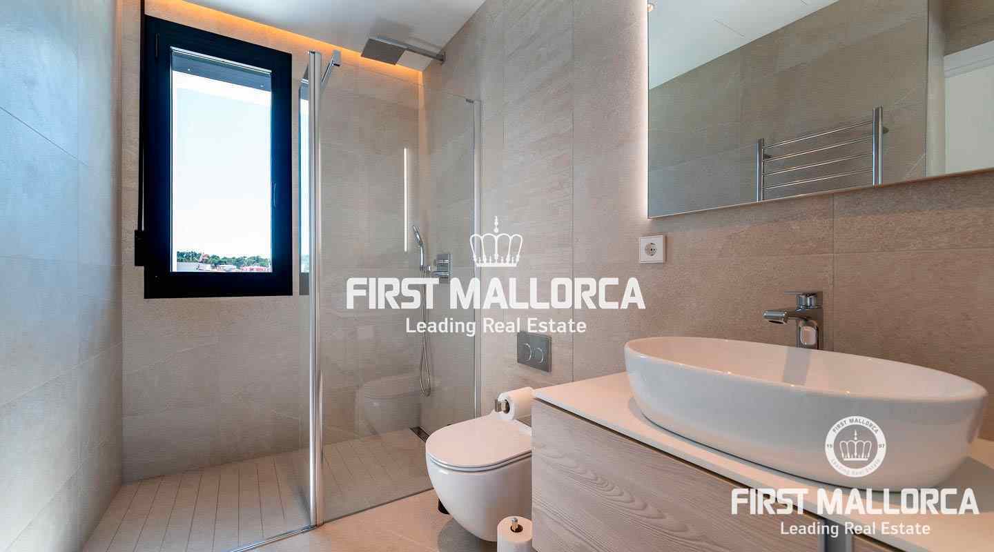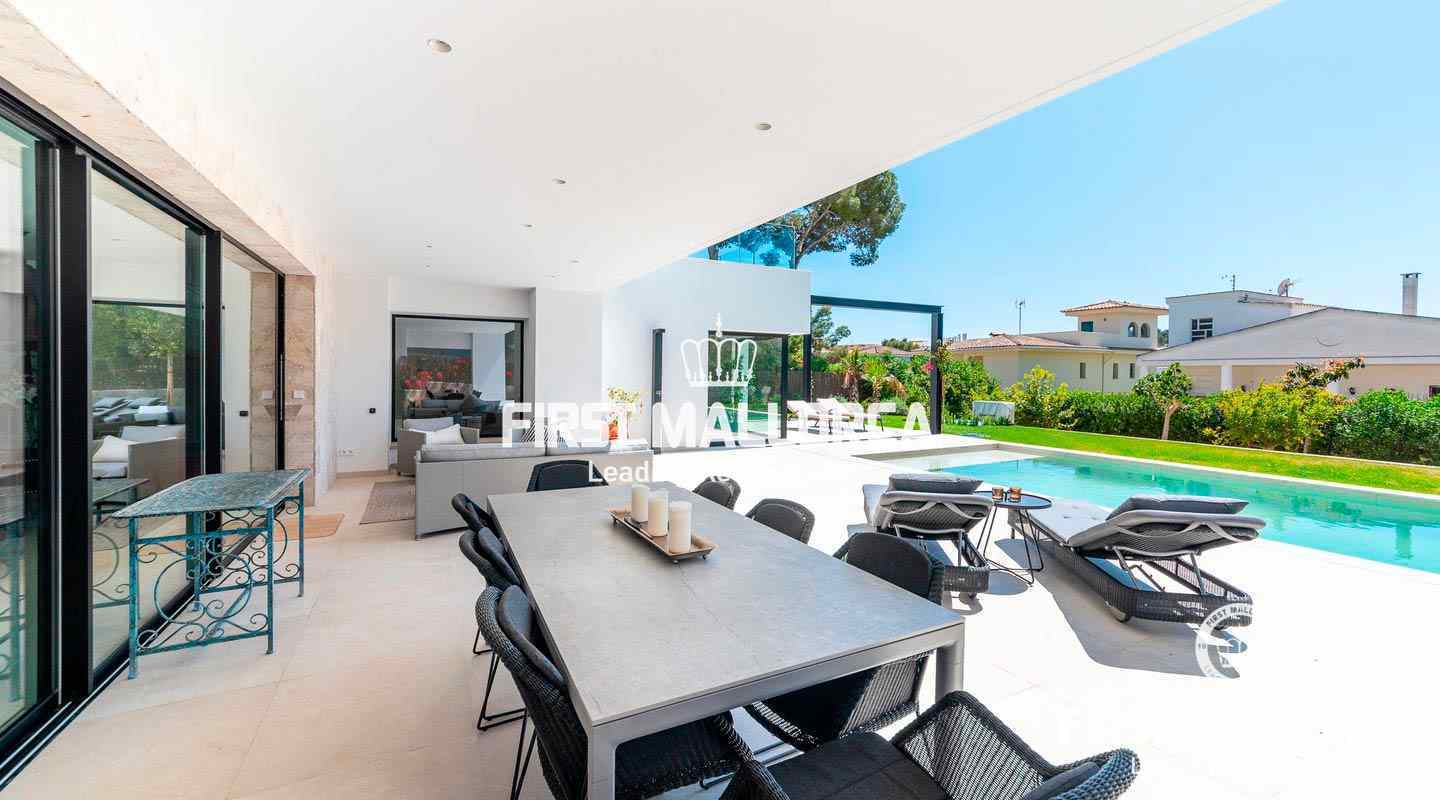 Diese hochwertige Villa wurde vor kurzem fertiggestellt und liegt auf einem flachen Grundstück mit Rasenflächen, umgeben von Lavendelbüschen und Obstbäumen in einem beliebten Wohngebiet von Palmanova. Das Anwesen wurde so geplant, dass das mediterrane Licht optimal genutzt wird und bietet dank der großzügigen Terrasse rund um den Poolbereich die Möglichkeit, Innen- und Außenleben zu kombinieren. Das Erdgeschoss verfügt über ein geräumiges, offenes Wohn-Esszimmer mit einer modernen, voll ausgestatteten Küche mit direktem Zugang auf die teilweise überdachte Terrasse. Außerdem gibt es auf dieser Etage ein Gästezimmer und ein Badezimmer. In der ersten Etage befindet sich die geräumige Master-Suite mit Bad en suite sowie ein Gästeschlafzimmer und ein Badezimmer. Zusätzlich gibt es in der ersten Etage einen zweiten Wohnbereich, der auch leicht in ein viertes Schlafzimmer umgewandelt werden kann. Palmanova ist bekannt für seine drei Sandstrände, eine hervorragende Auswahl an Restaurants und Cafés an der attraktiven Strandpromenade und seine Nähe zu Palma, nur etwa 10 Minuten mit dem Auto entfernt.