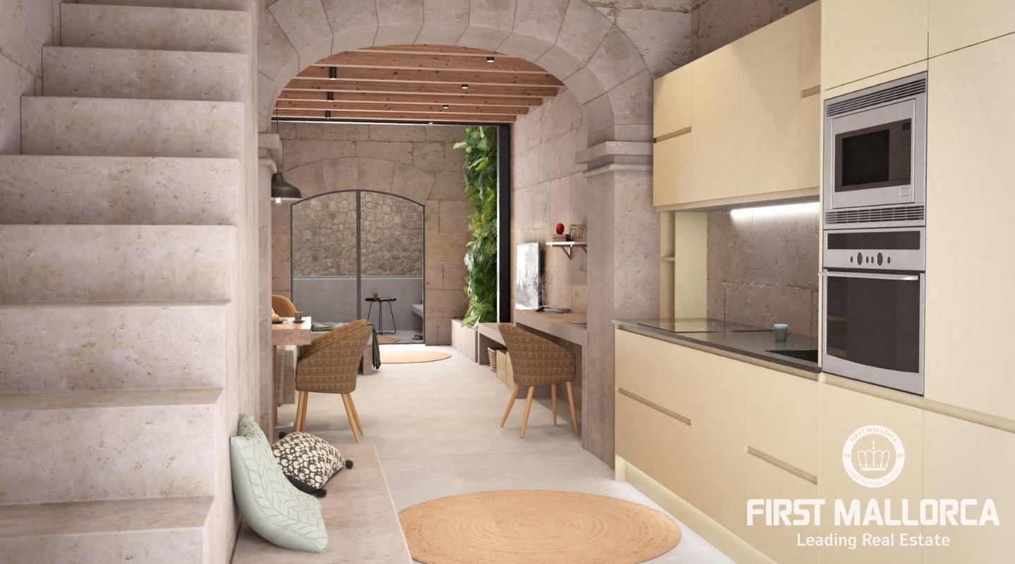 Charmantes Haus zu verkaufen, das für Januar/Februar 2023 neu renoviert wird. Dieses Haus befindet sich im Zentrum von Sa Pobla in einer sehr guten Lage. Das Haus besteht aus zwei Etagen, im Erdgeschoss gibt es Küche und Wohnzimmer mit WC unter der Treppe, einer kleinen Terrasse und Schwimmbad. Im ersten Stock gibt es zwei große Schlafzimmer mit einem voll ausgestatteten Badezimmer. Es gibt auch eine sehr schöne Dachterrasse. Die Materialien, die für die Renovierung dieser Immobilie verwendet wurden, sind von bester Qualität: Fußbodenheizung, Klimaanlage, Sandstein-Treppe, alte Sandstein-Mauern, polierter Betonboden, restaurierte Holzbalken.