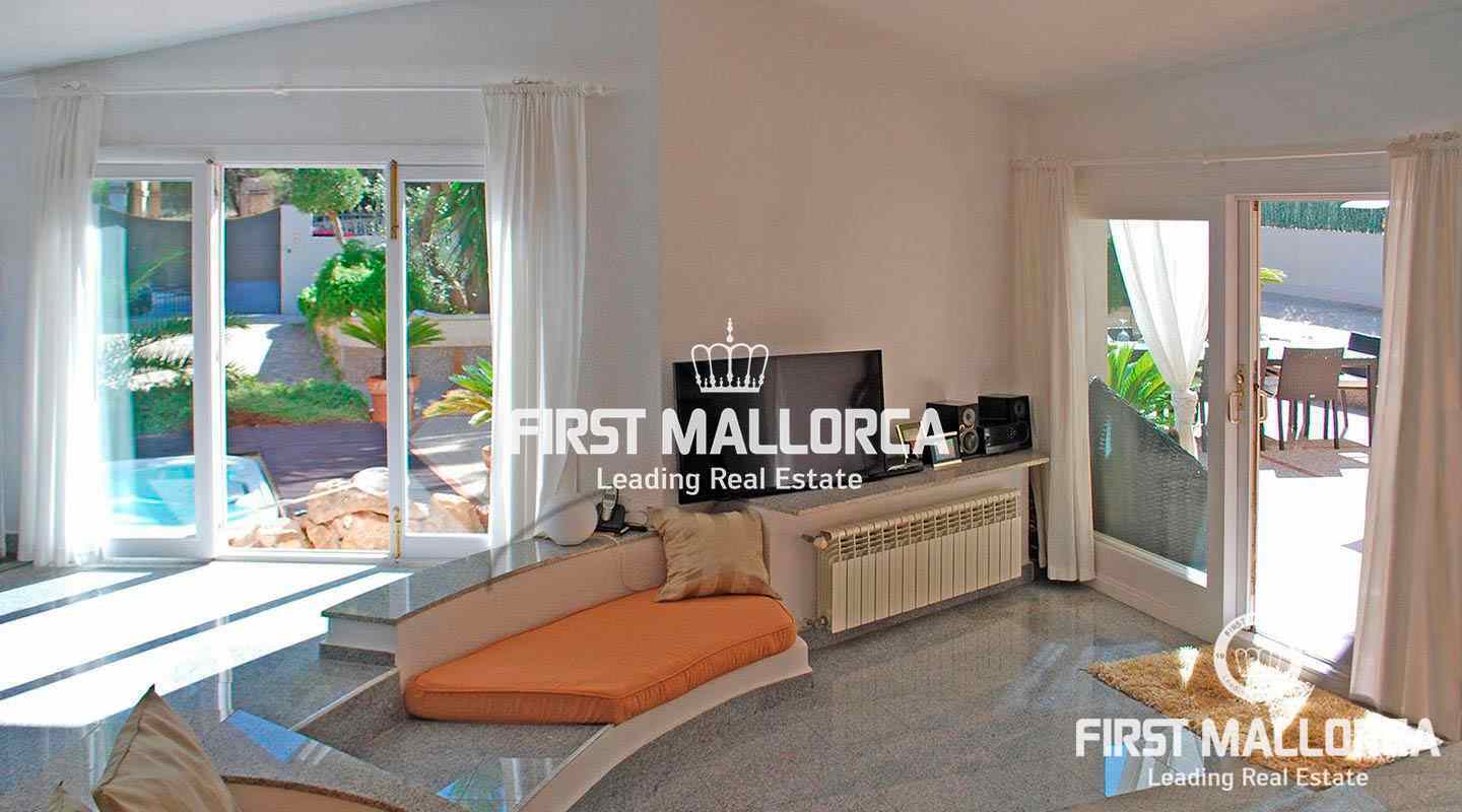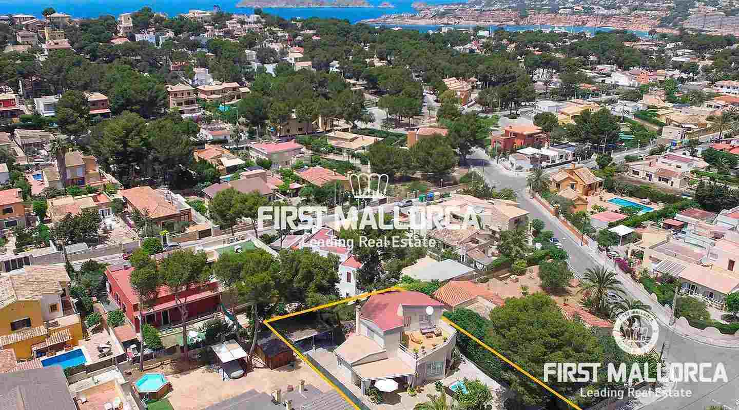 Dieses Einfamilienhaus mit außergewöhnlicher Architektur genießt einen schönen Blick und eine ruhige Lage in der Nähe des beliebten Yachthafens Port Adriano im Südwesten von Mallorca.