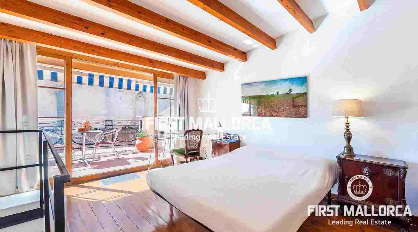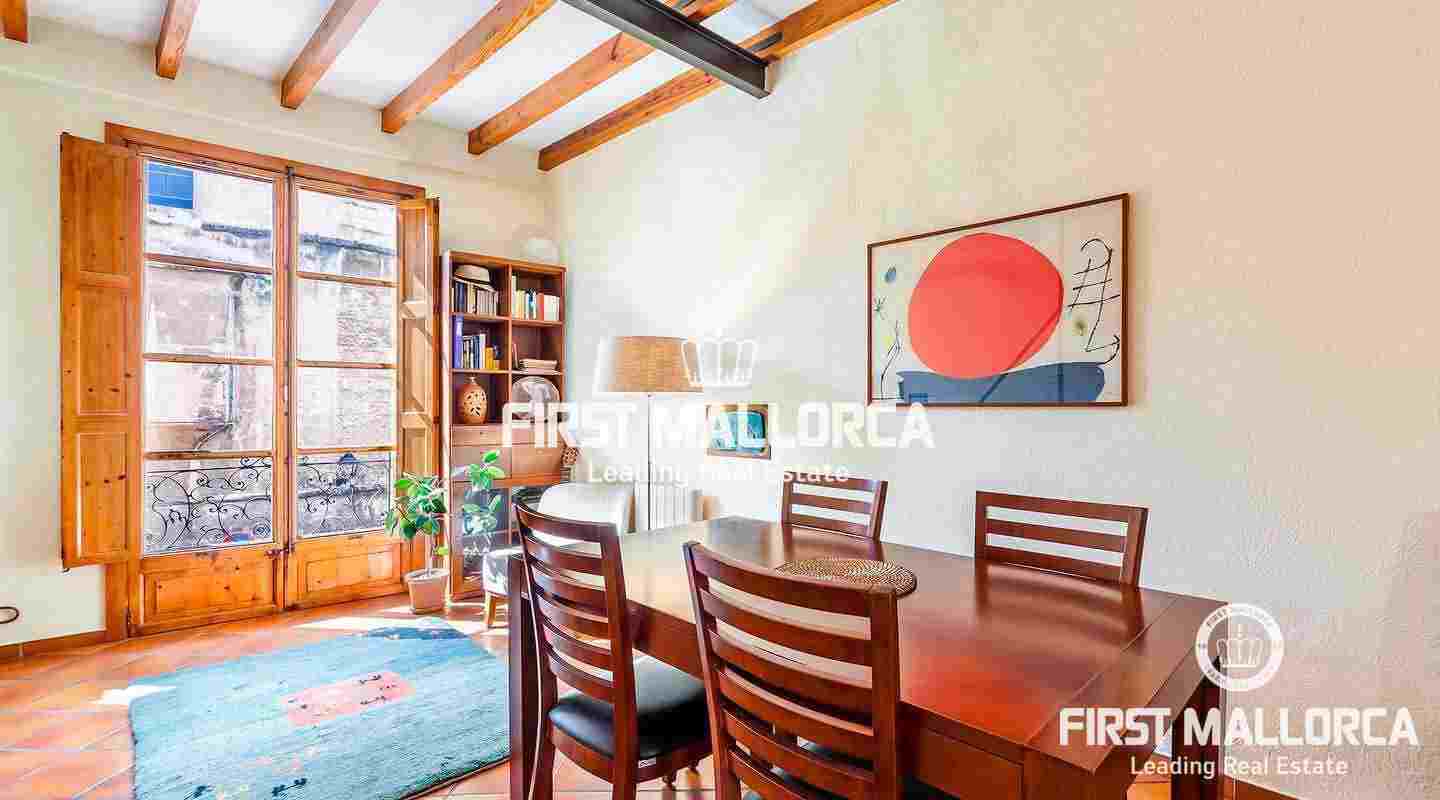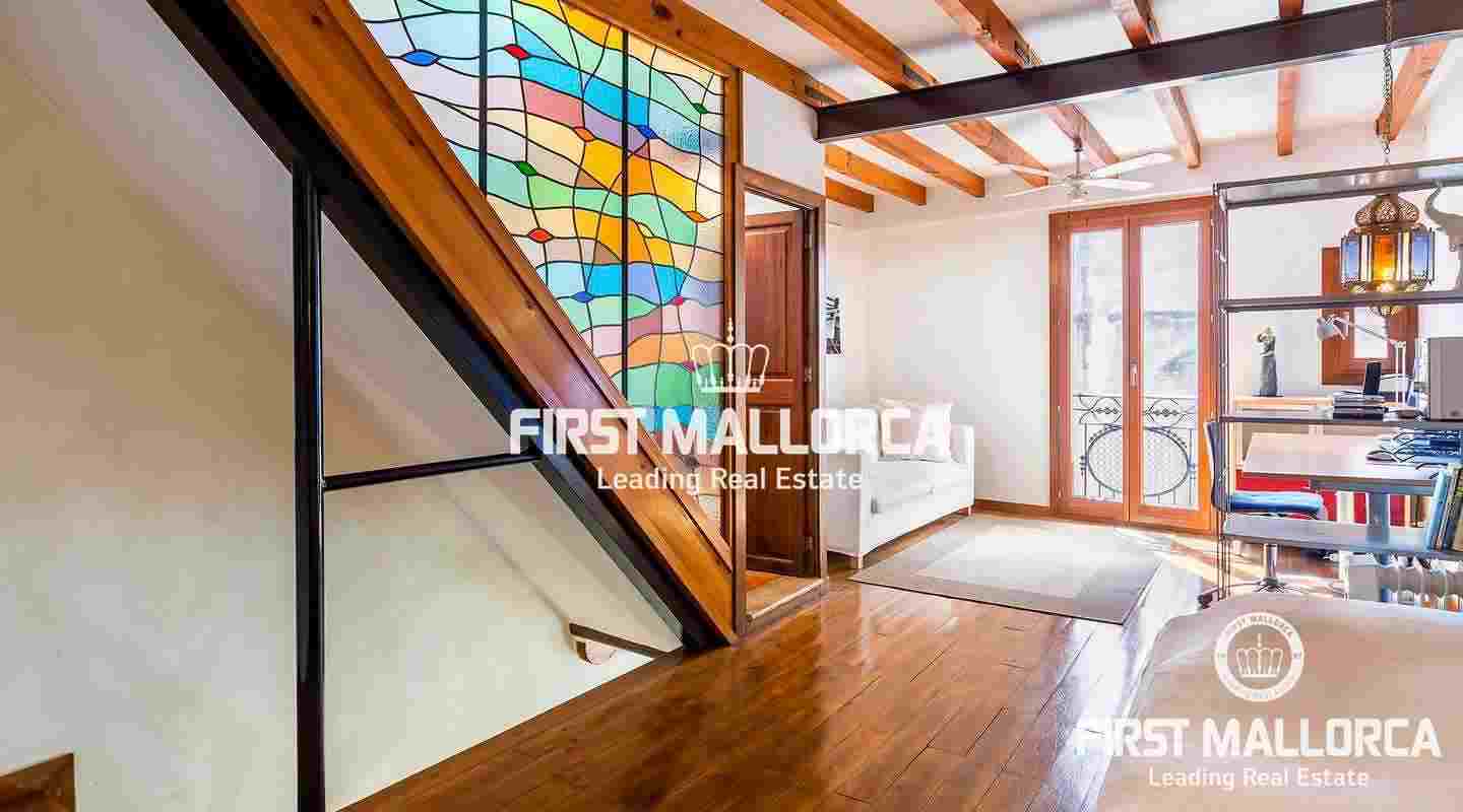 Über einen separaten Eingang können die darüber liegenden 3 Wohnetagen erreicht werden. Diese sind möbliert und wurden mit viel Liebe zum Detail ausgestattet. Die vielen authentischen Elemente wie klassisch schöne Holzböden, antike Möbelstücke oder verzierte Balkongeländer verleihen der Immobilie einen besonderen Charakter. Außerdem verfügt diese Immobilie über eine moderne Küche, eine offene Treppe und ein Dachgeschoss mit Terrasse, welche einen tollen Blick auf die Kathedrale, Santa Creu und die Altstadtdächer Palmas bietet.