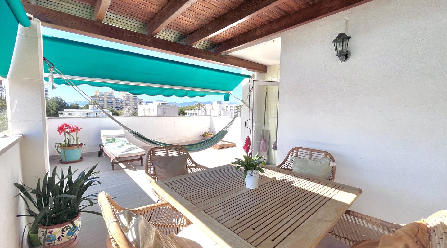Dieses helle Penthouse befindet sich in der Wohngegend von Las Maravillas, nur 5 Minuten zu Fuß von der Playa de Palma entfernt. Die Wohnung wird zur Kurzzeitmiete angeboten und ist ab dem 1. Juni 2024 verfügbar. Die Mietdauer beträgt zwischen 3 und 6 Monaten. Für die 3 Monate der Hochsaison beträgt der Mietpreis 2200 €/Monat und 1 Monat Kaution. Für einen Zeitraum von 4 bis 6 Monaten, ist der Mietpreis 2000 €/Monat und 2 Monate Kaution. Die Wohnung hat ein Wohnzimmer mit Kamin, eine separate Küche mit Waschküche, 2 Schlafzimmer, 1 Badezimmer und drei Terrassen. Die Wohnung wird mit einem Parkplatz vermietet, der im Mietpreis enthalten ist. Weitere Merkmale sind: Klimaanlage warm/kalt im Wohnzimmer, Doppelverglasung, Gebäude mit Aufzug, 3 Terrassen mit reichlich Platz im Freien zum Entspannen und Genießen des Sommers und des guten Wetters auf Mallorca. Diese Wohnung ist ideal für ein Paar oder eine kleine Familie ohne Haustiere, die eine Saison auf Mallorca verbringen und die Nähe zum Strand genießen wollen und gleichzeitig in einer Gegend mit allen Dienstleistungen in der Nähe wie Restaurants, Bars, Banken, Apotheken und den kulturellen Sehenswürdigkeiten Mallorcas leben wollen. Zögern Sie nicht, das Team von First Mallorca zu kontaktieren, um einen Besichtigungstermin zu vereinbaren!