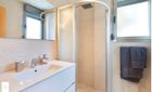 Sie bietet drei Doppelschlafzimmer mit Einbauschränken und zwei moderne Badezimmer. Die voll ausgestattete Küche vereint Funktionalität und Stil, während der helle Wohn- und Essbereich ideal zum Entspannen oder Empfangen von Gästen ist.