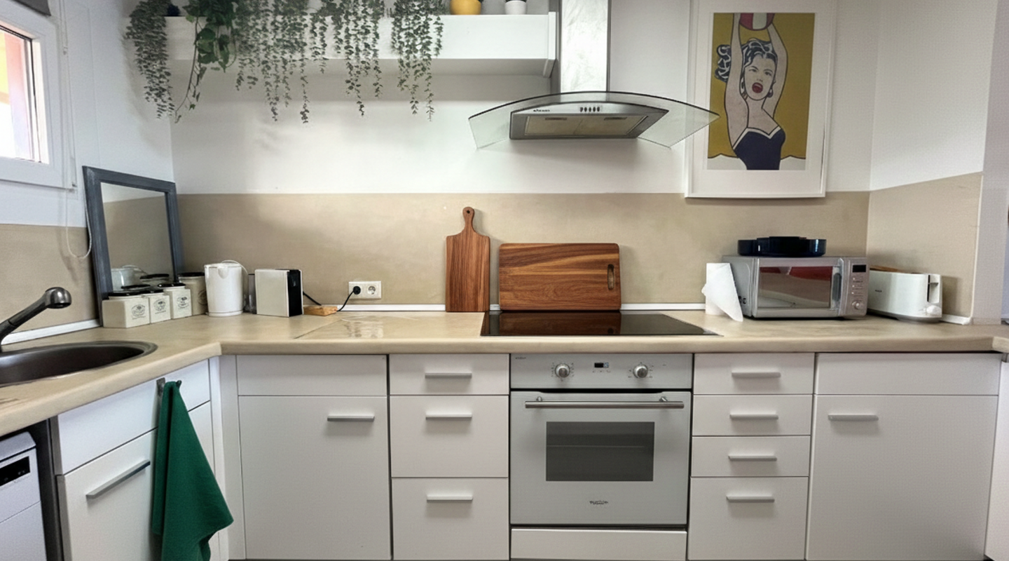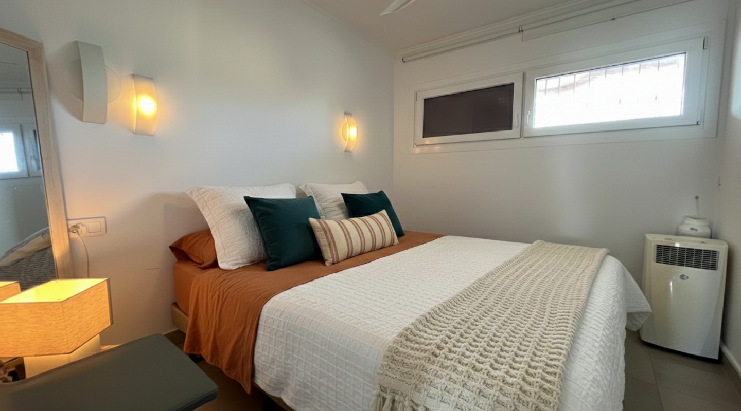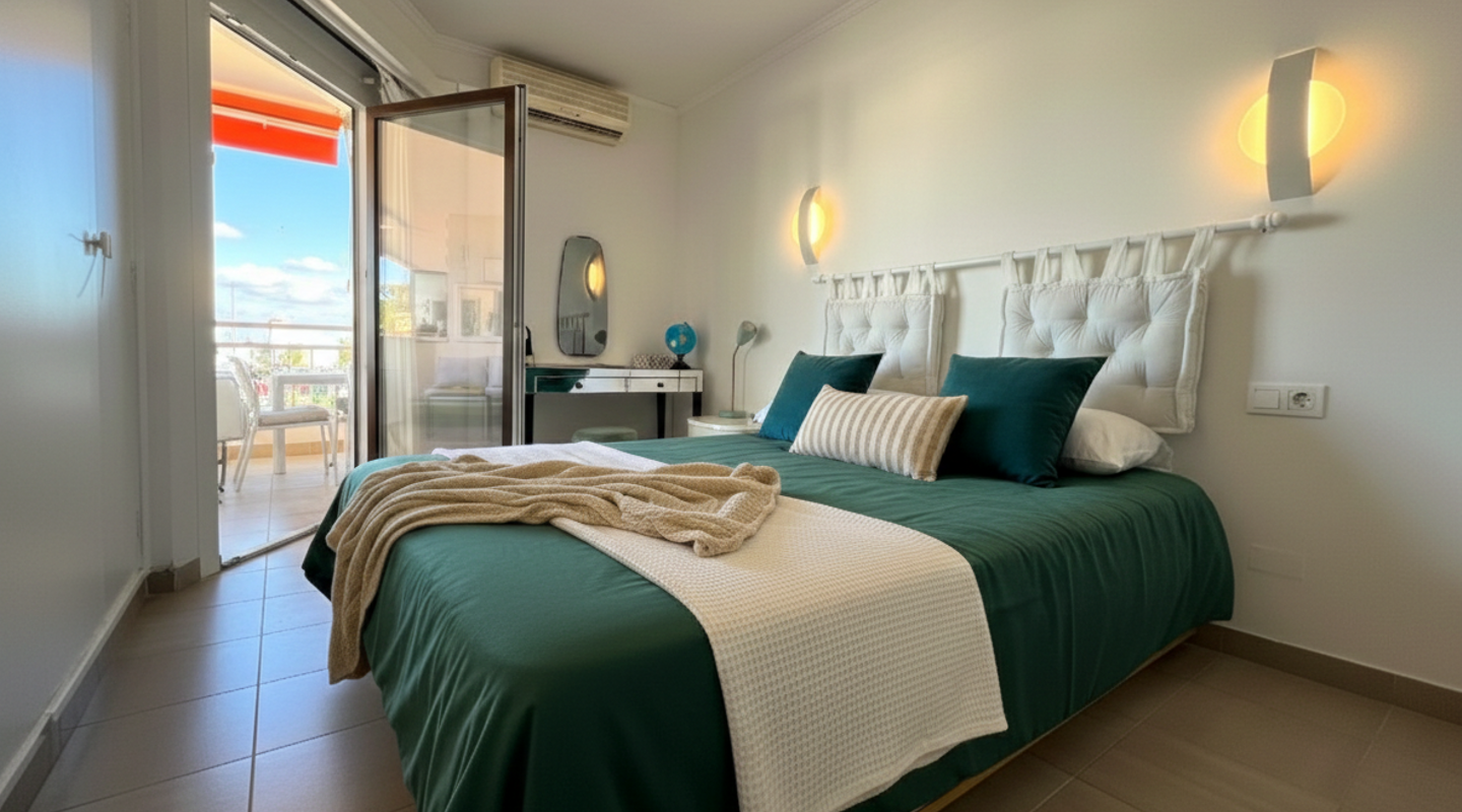 Das Apartment besticht durch seine Helligkeit und eine großzügige Terrasse mit Panoramablick auf das Meer – ideal für unvergessliche Sonnenaufgänge oder Abendessen im Freien. Es verfügt über zwei gemütliche Schlafzimmer, zwei renovierte Badezimmer und eine moderne, voll ausgestattete offene Küche.