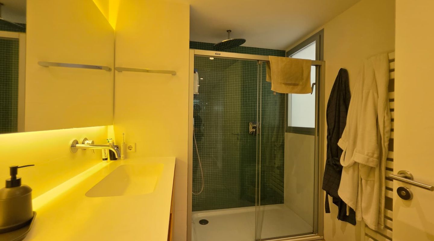 Die Wohnung verfügt über vier geräumige Schlafzimmer, die flexibel genutzt werden können – ob als Familienzimmer, Büro, Gästezimmer oder kreativer Bereich. Drei Schlafzimmer haben direkten Zugang zum Balkon, wodurch die Räume lichtdurchflutet sind und eine ständige Verbindung zum Außenbereich entsteht. Das Hauptschlafzimmer bietet ein eigenes Badezimmer mit exklusiver Ausstattung und eleganter Gestaltung.