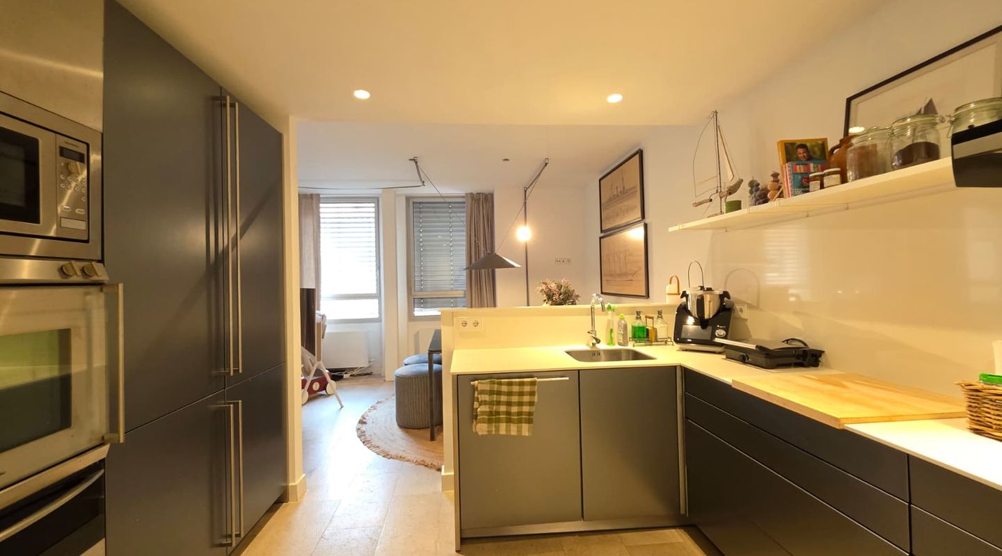 Insgesamt gibt es drei Badezimmer, alle modernisiert und mit hochwertigen Armaturen versehen. Die offene Küche ist vollständig ausgestattet und fügt sich harmonisch in das großzügige Wohnzimmer ein. Dieses Wohnzimmer wird zum Herzstück der Wohnung, ideal für Familienaktivitäten, gesellige Abende oder entspannte Momente im Alltag.