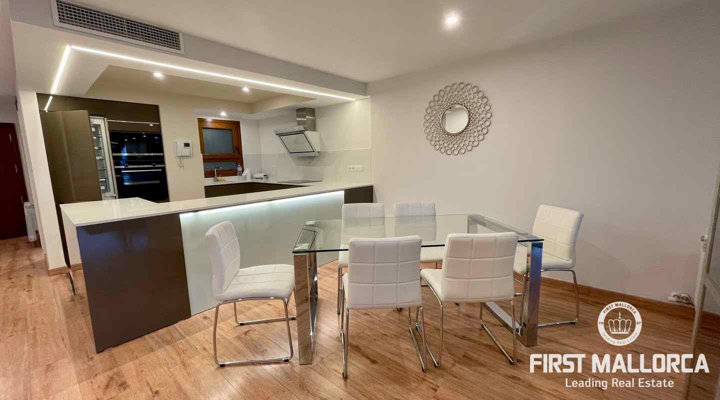 Moderne Wohnung mit offenem Meer- und Hafenblick aus allen Räumen. Beim Betreten der Wohnung werden Sie direkt von einem atemberaubenden Meerblick empfangen. Die Küche ist mit luxuriösen Markengeräten für maximalen Kochkomfort ausgestattet, und der Essbereich bietet ebenfalls Meerblick, ebenso wie das Wohnzimmer, das Zugang zur großen Terrasse mit Meerblick hat. Beide Schlafzimmer verfügen über Meerblick und Einbauschränke, während das Hauptschlafzimmer über ein en-suite-Badezimmer mit Doppelwaschbecken für Sie und Ihn verfügt. Die Wohnung ist mit Heizkörpern für die kälteren Monate und einer integrierten Klimaanlage ausgestattet. Der Wohnbereich hat hochwertige Holzböden, die Küche und die Bäder sind gefliest. Die Wohnung bietet viel Stauraum und ist mit luxuriösen Geräten wie einer Video-Türsprechanlage, einem Weinkühler, einem Geschirrspüler und einer Bosch-Waschmaschine im Hauswirtschaftsraum ausgestattet. Die große Terrasse ist ideal, um unvergessliche Momente mit Familie und Freunden zu verbringen und bietet einen der schönsten Ausblicke auf der Insel.
