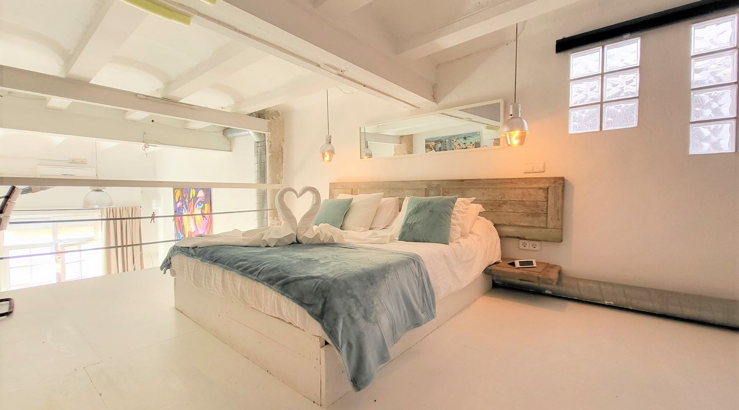 Dieses wunderschöne Loft im Herzen von Palma besticht durch seine außergewöhnliche Einrichtung, die in einem eleganten und modernen Stil gestaltet ist und eine warme und zugleich raffinierte Atmosphäre schafft. Jedes Detail wurde sorgfältig ausgewählt, um ein einzigartiges Erlebnis zu bieten – ideal für alle, die Komfort, Design und Charakter in einem Kurzaufenthalt suchen.