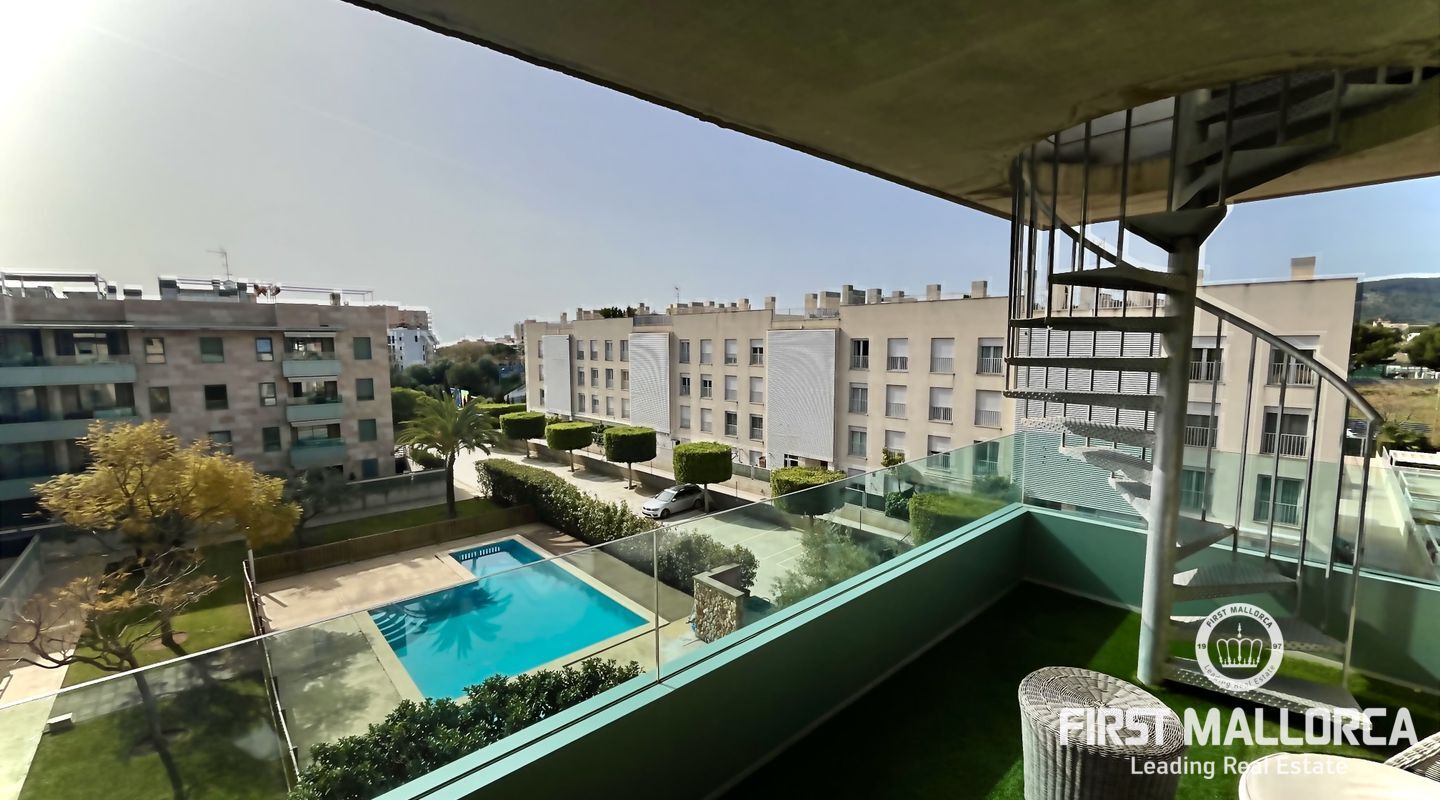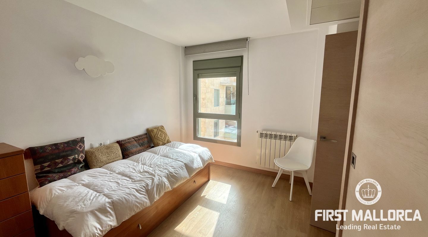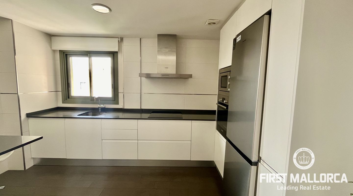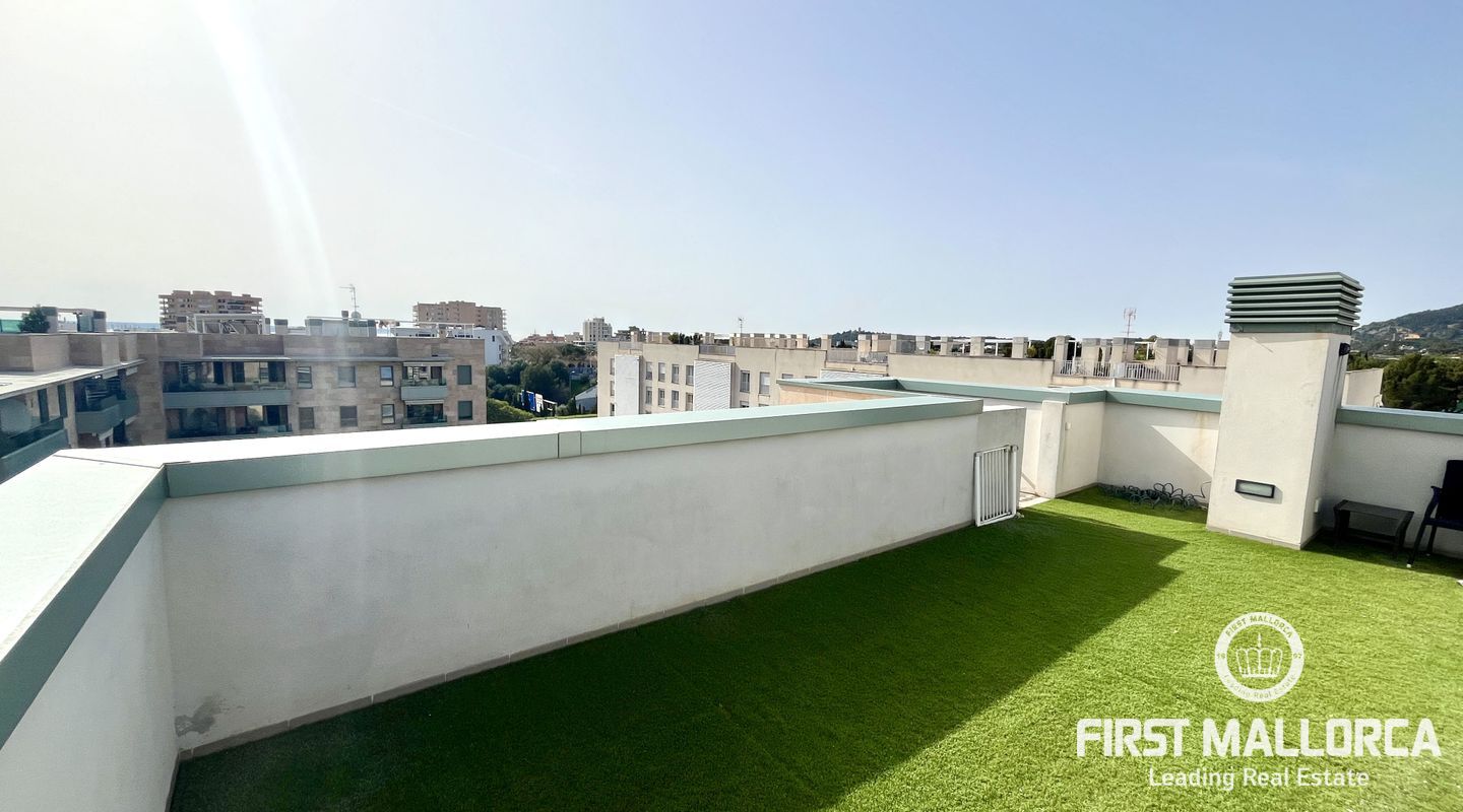 Die Gesamtfläche der Wohnung beträgt 90 Quadratmeter und umfasst zwei geräumige Schlafzimmer, ein Badezimmer mit Dusche, eine voll ausgestattete Küche und ein gemütliches Wohnzimmer mit Zugang zu einem geräumigen Balkon. Es ist erwähnenswert, dass Sie über eine Wendeltreppe auf das Dach gelangen können, um die mallorquinische Sonne auf einer geräumigen privaten Terrasse zu genießen.